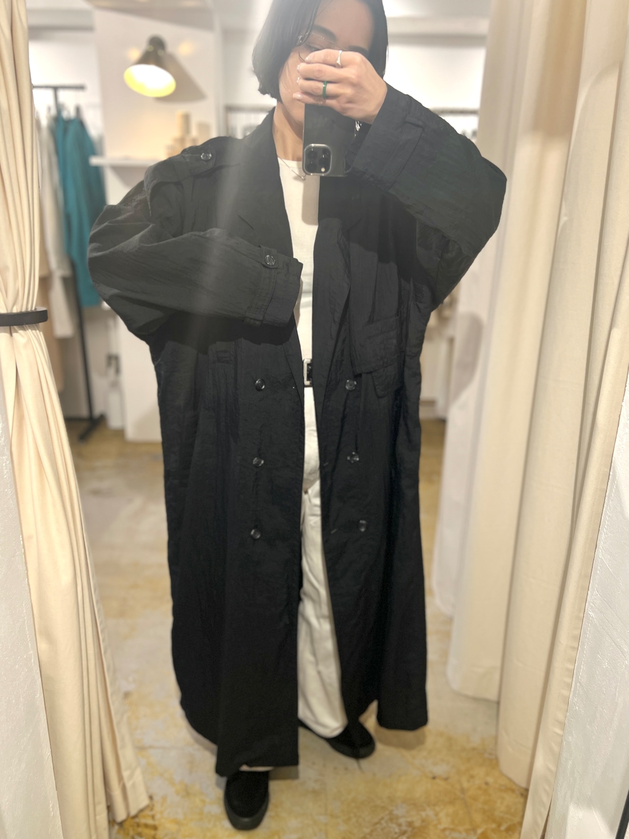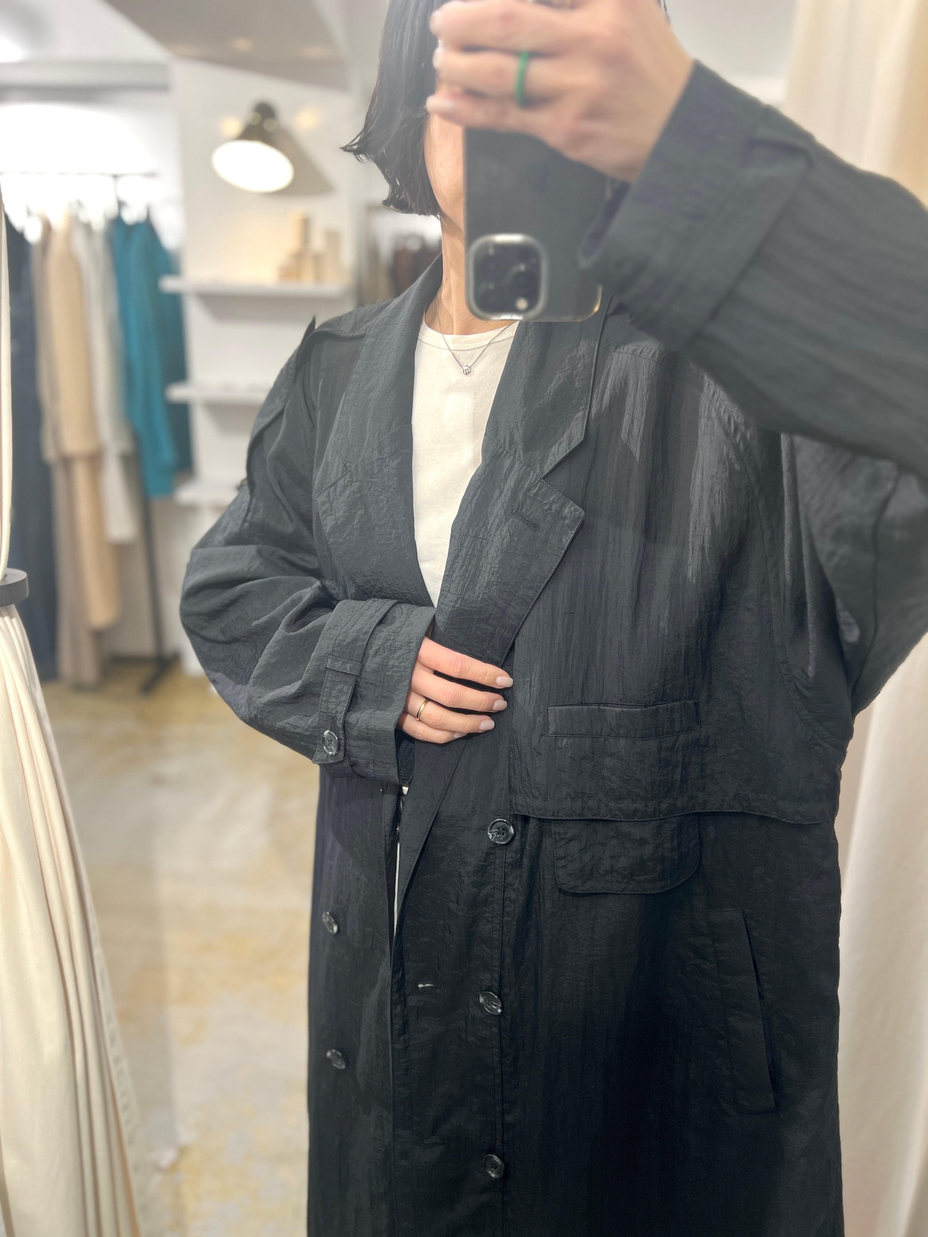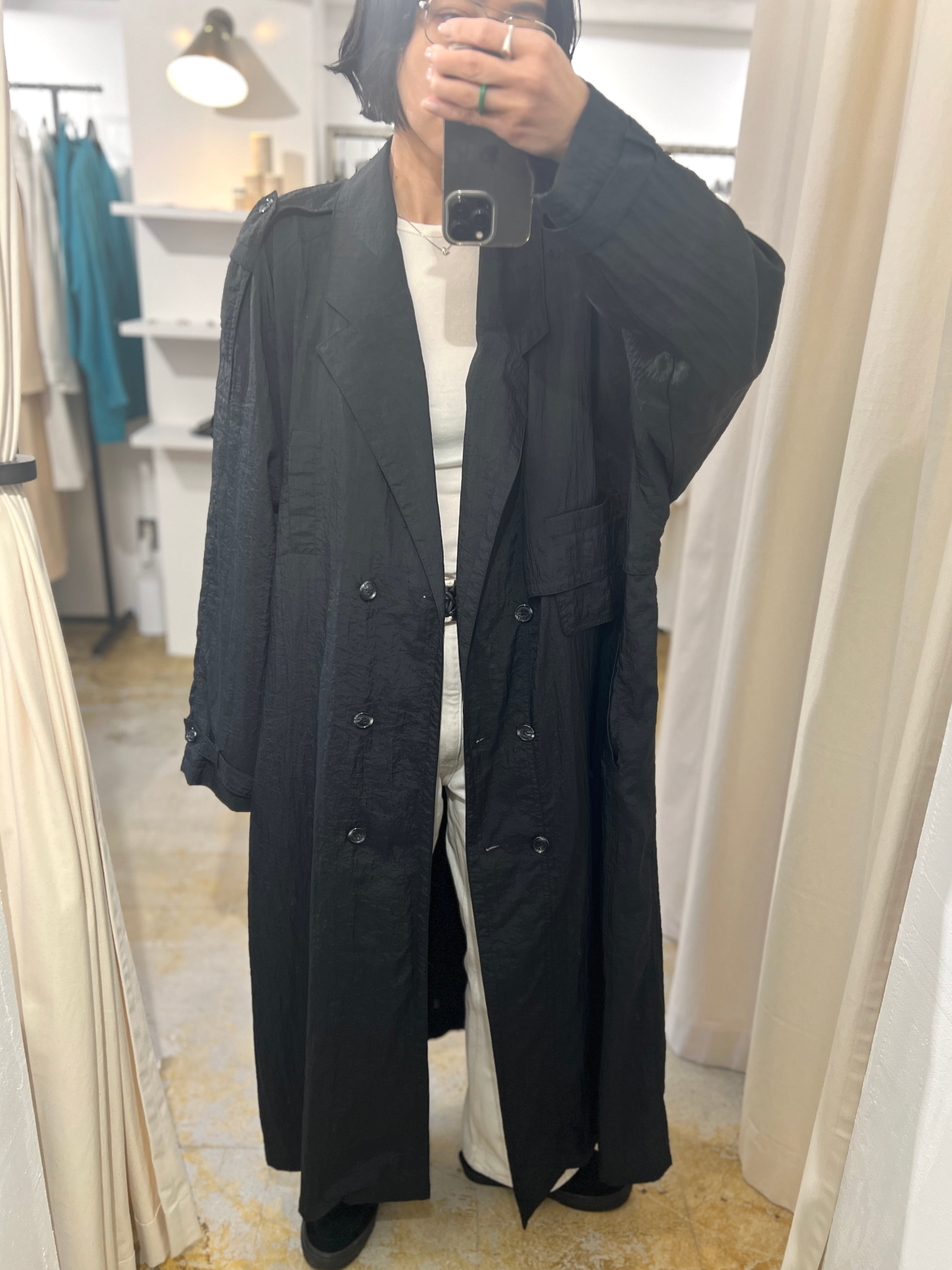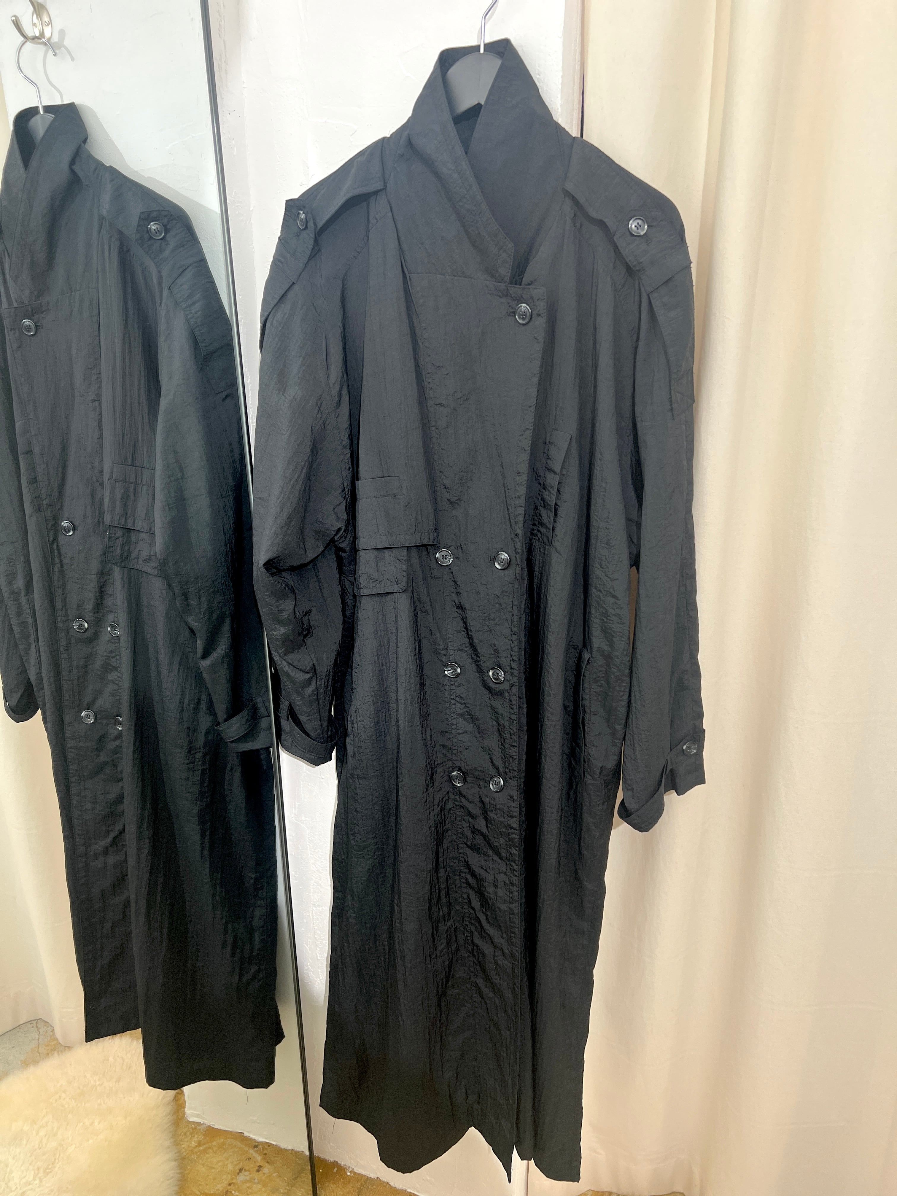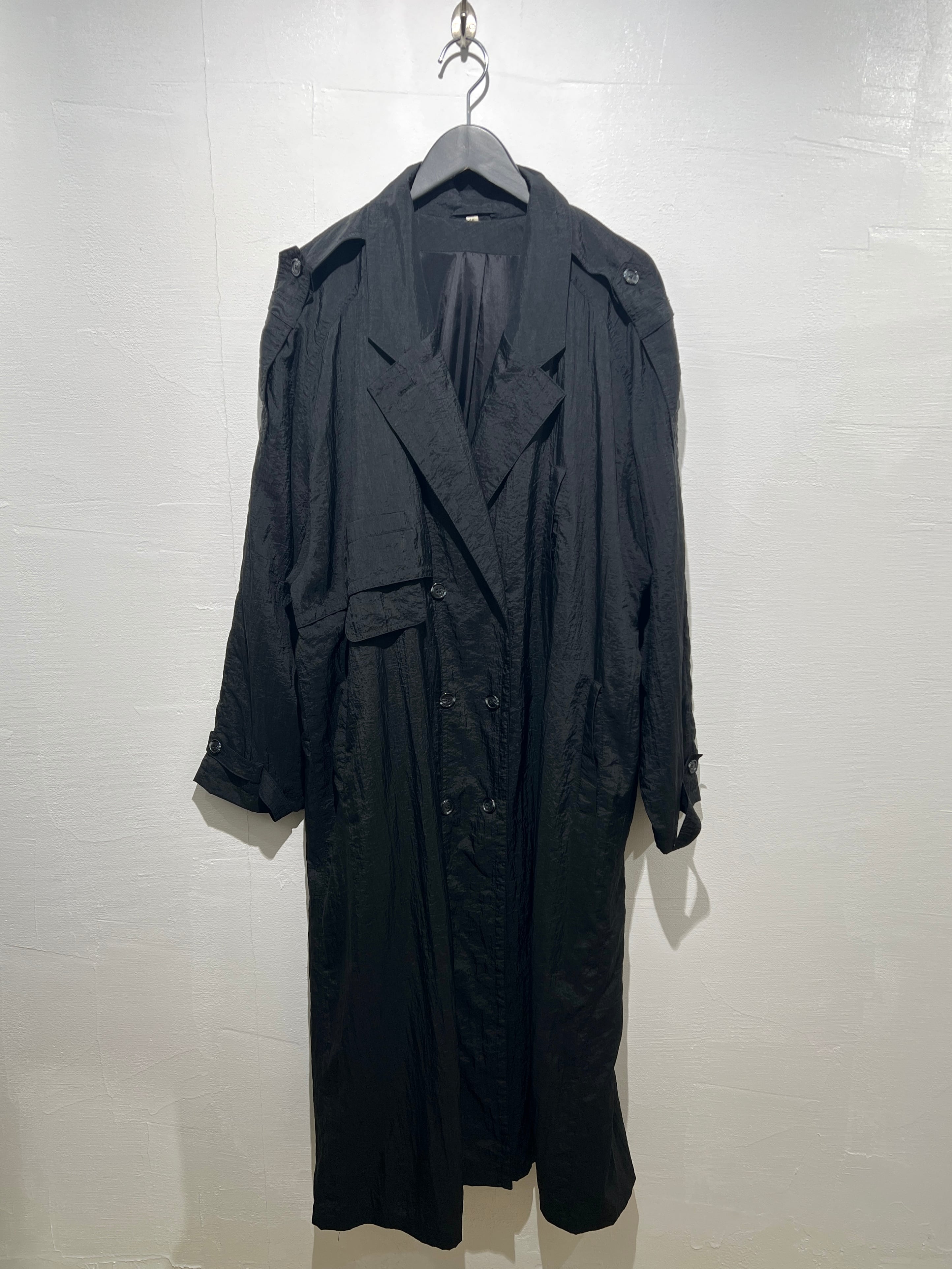 薄手でとても軽い80年代頃のナイロン素材のロングトレンチコート。