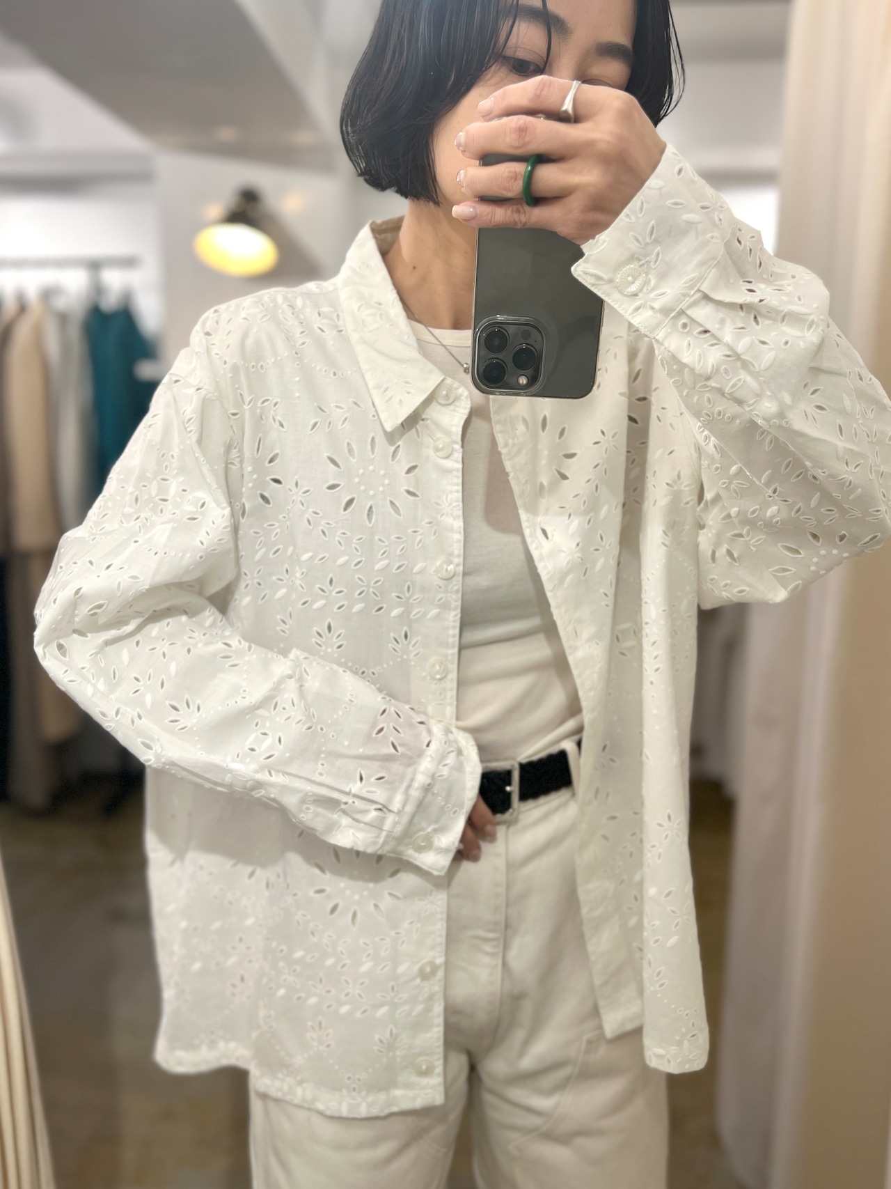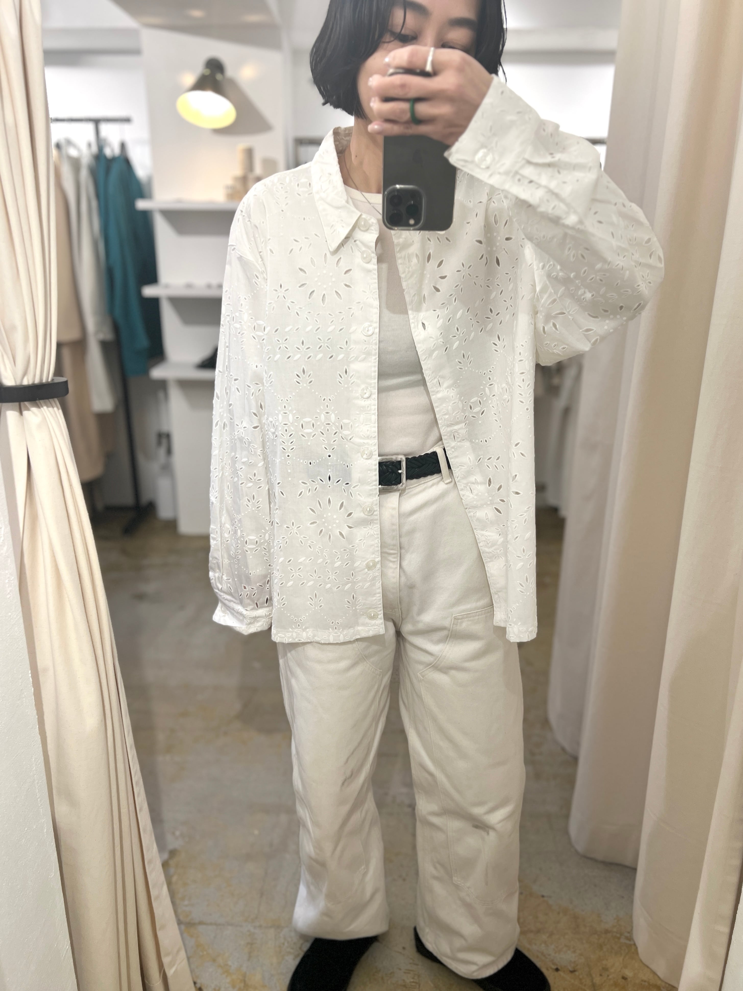 甘すぎないデザインのカットワークレースが素敵なコットンシャツ。