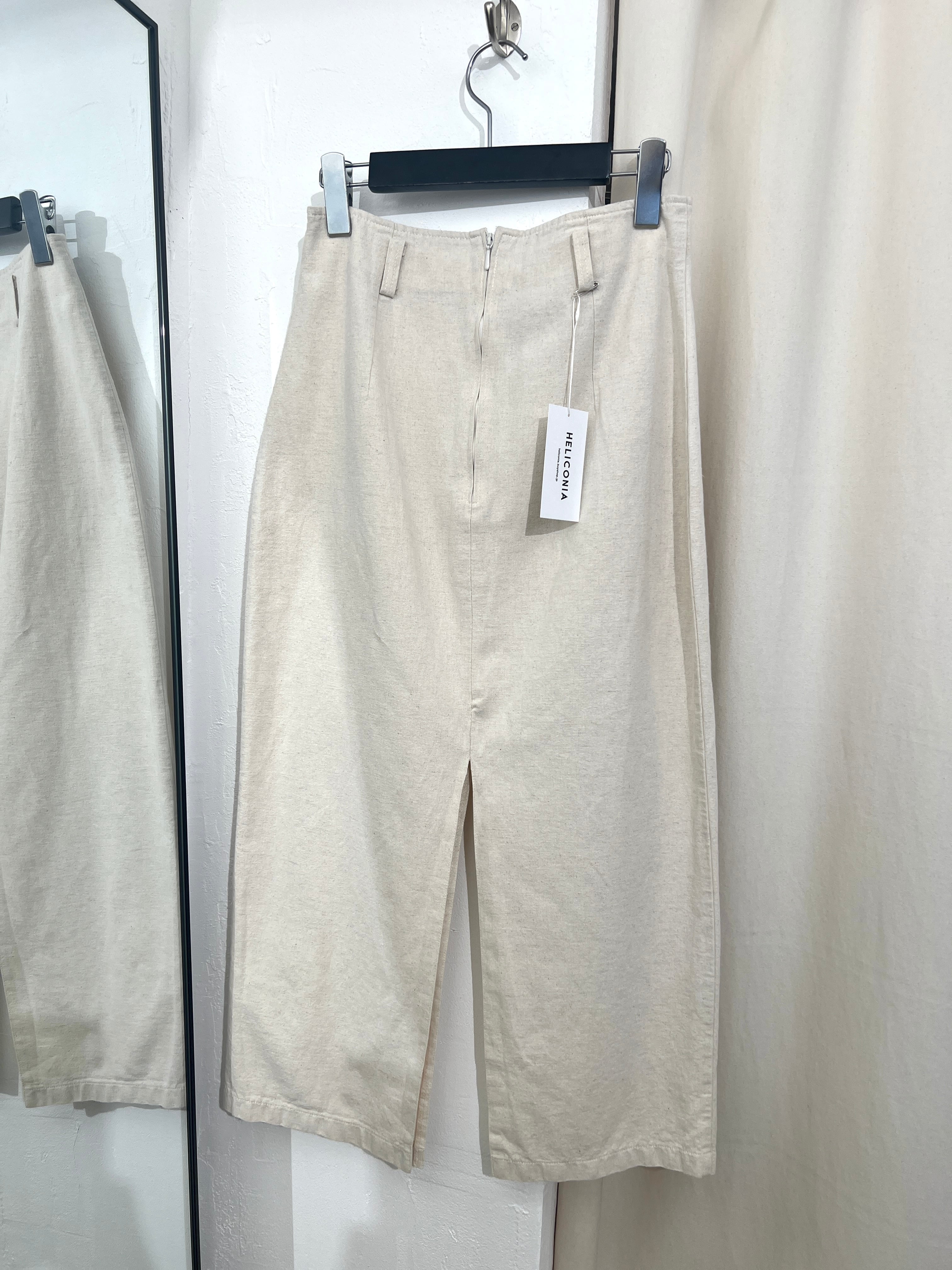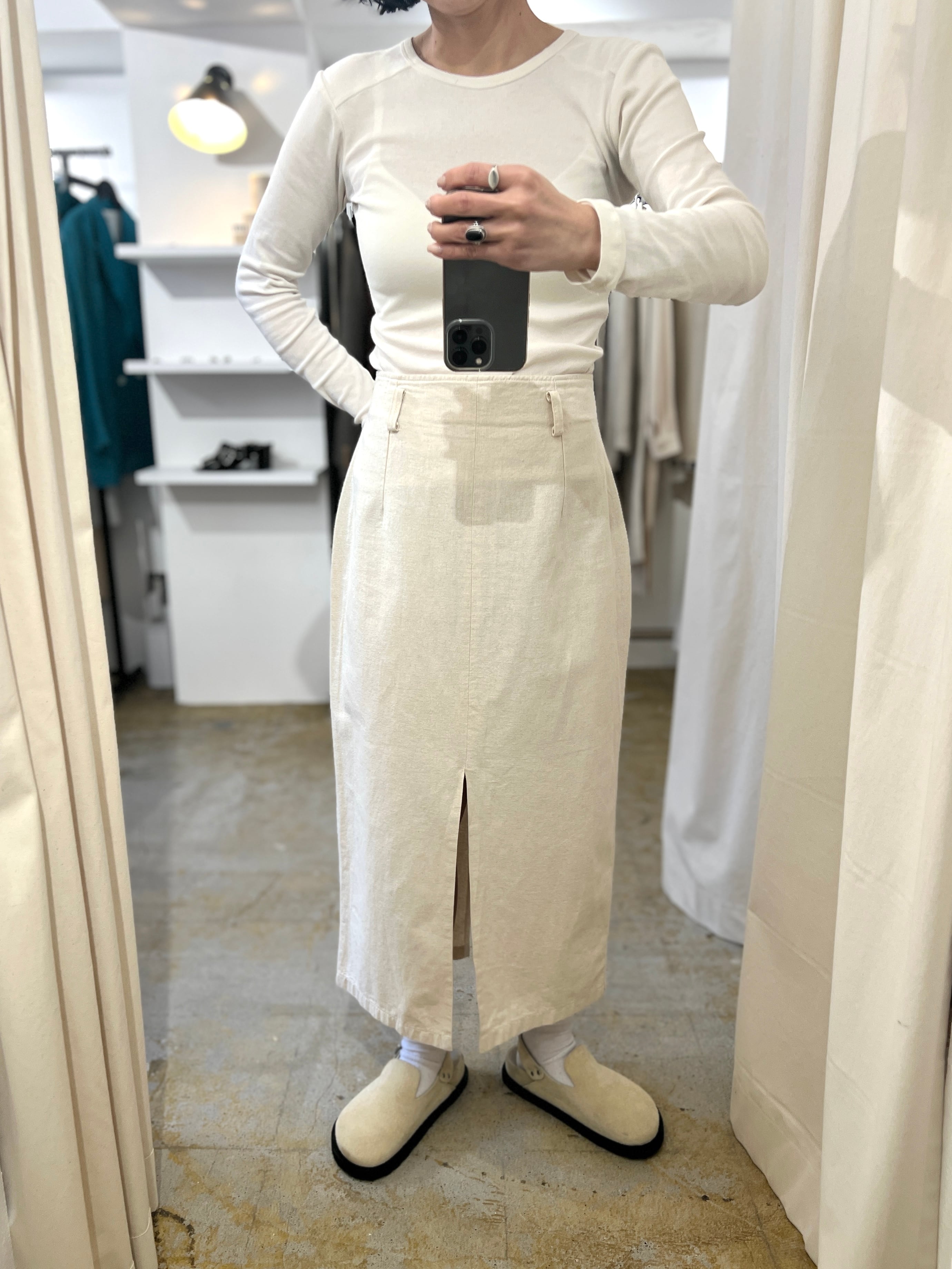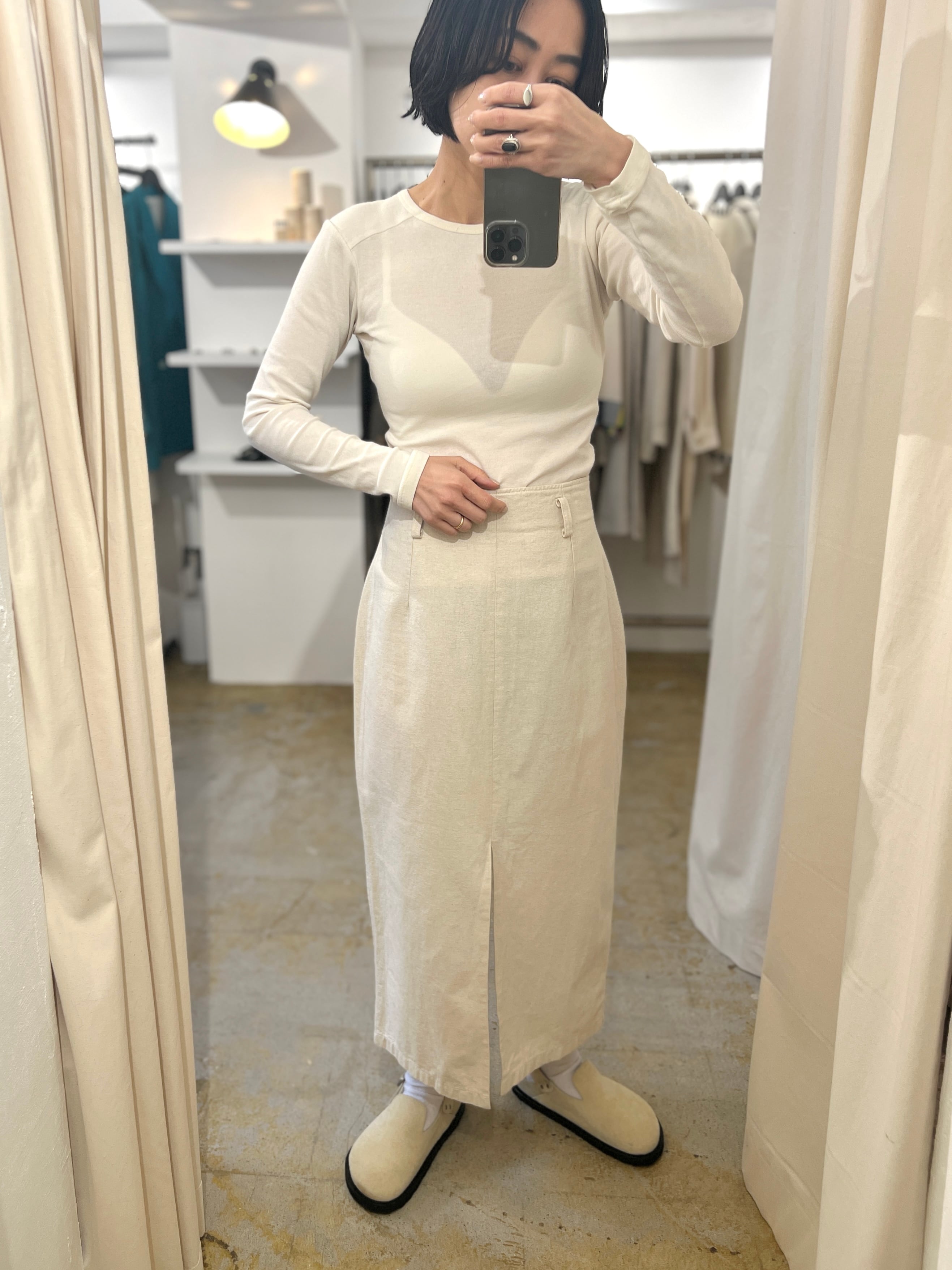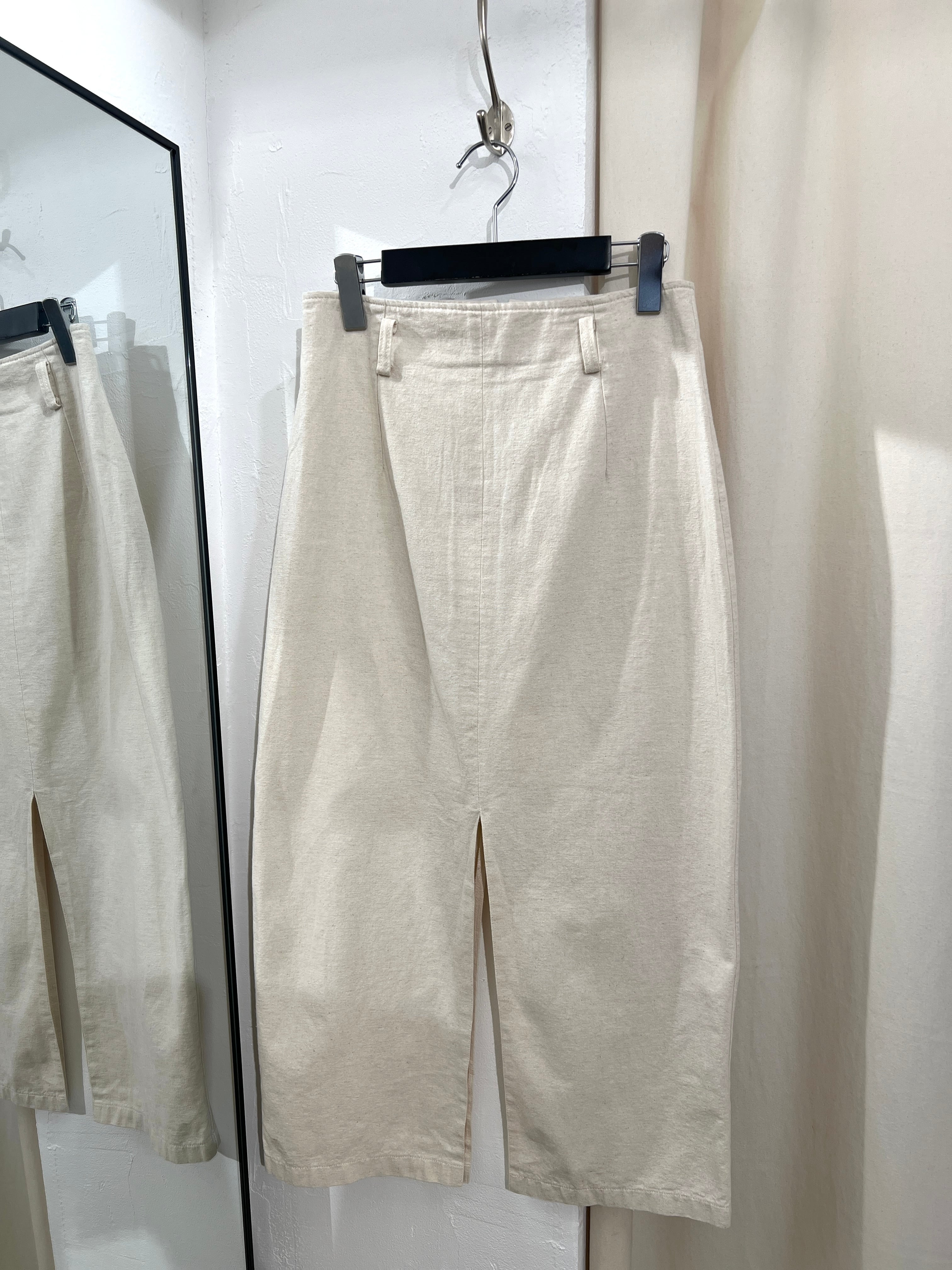 ウエストとスリットのデザインが可愛いユーロヴィンテージのコットンリネンスカートです。