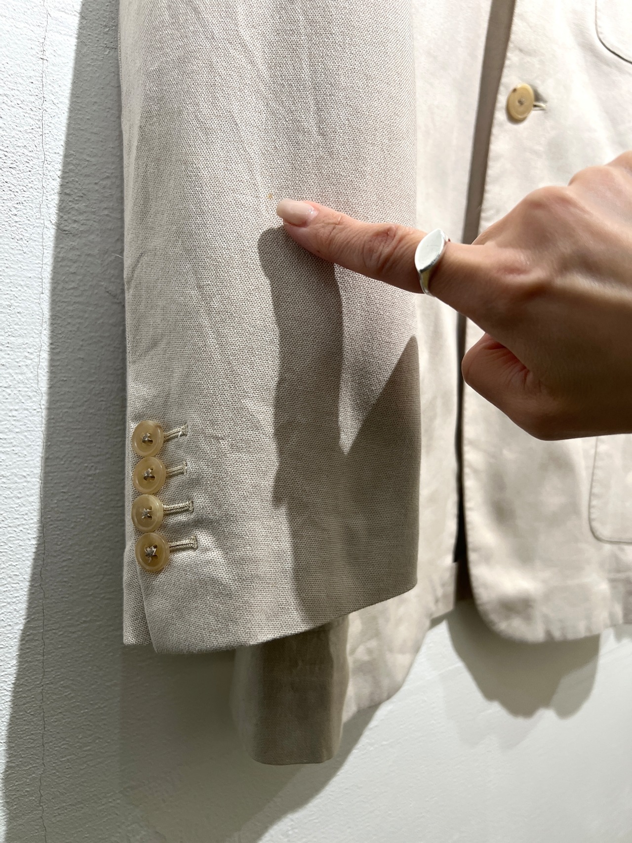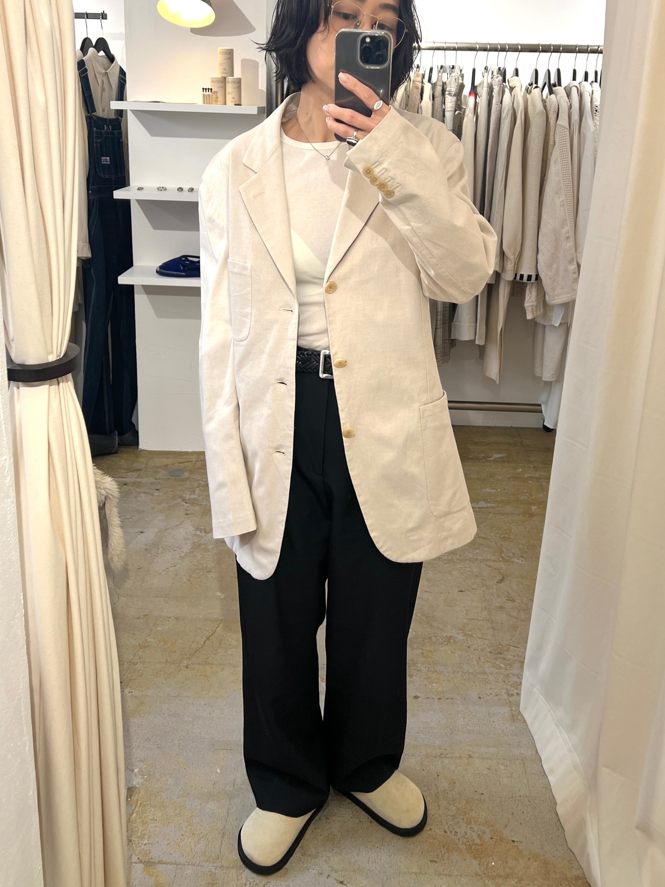 クラシックな3つボタンスタイルのHERMESテーラードジャケット。