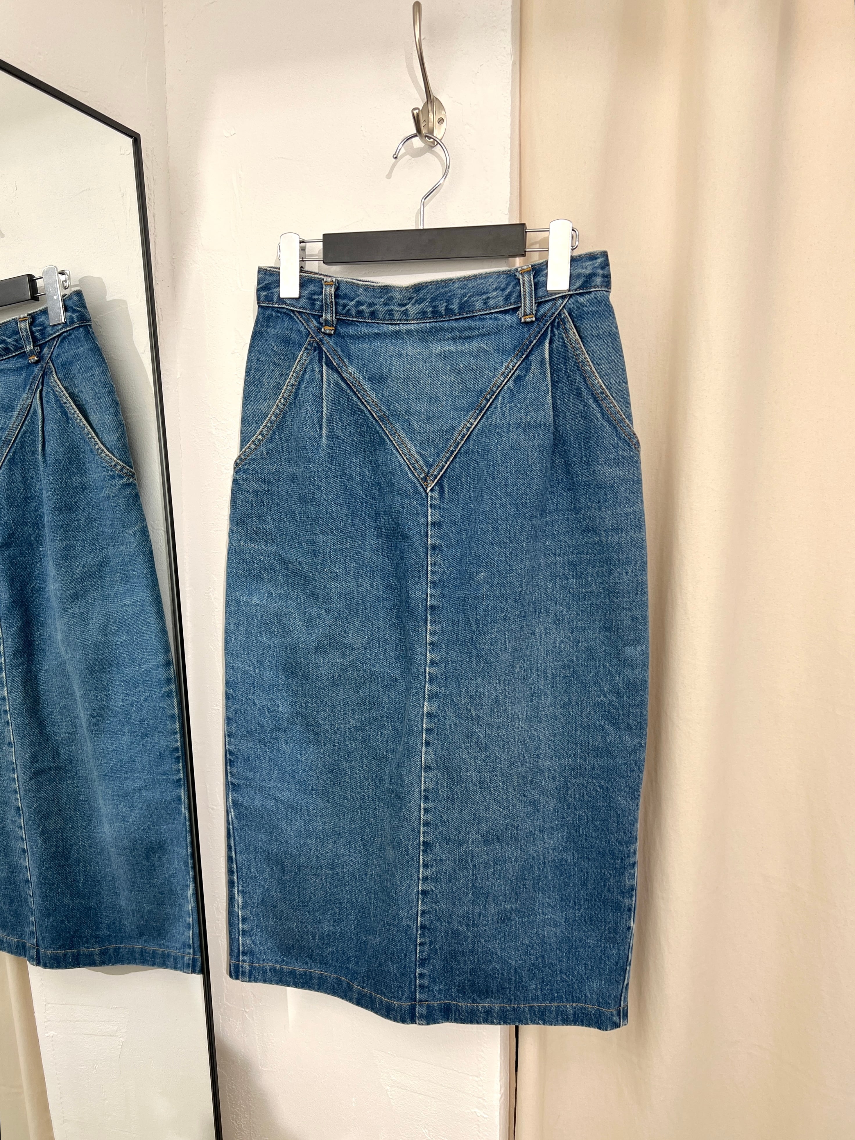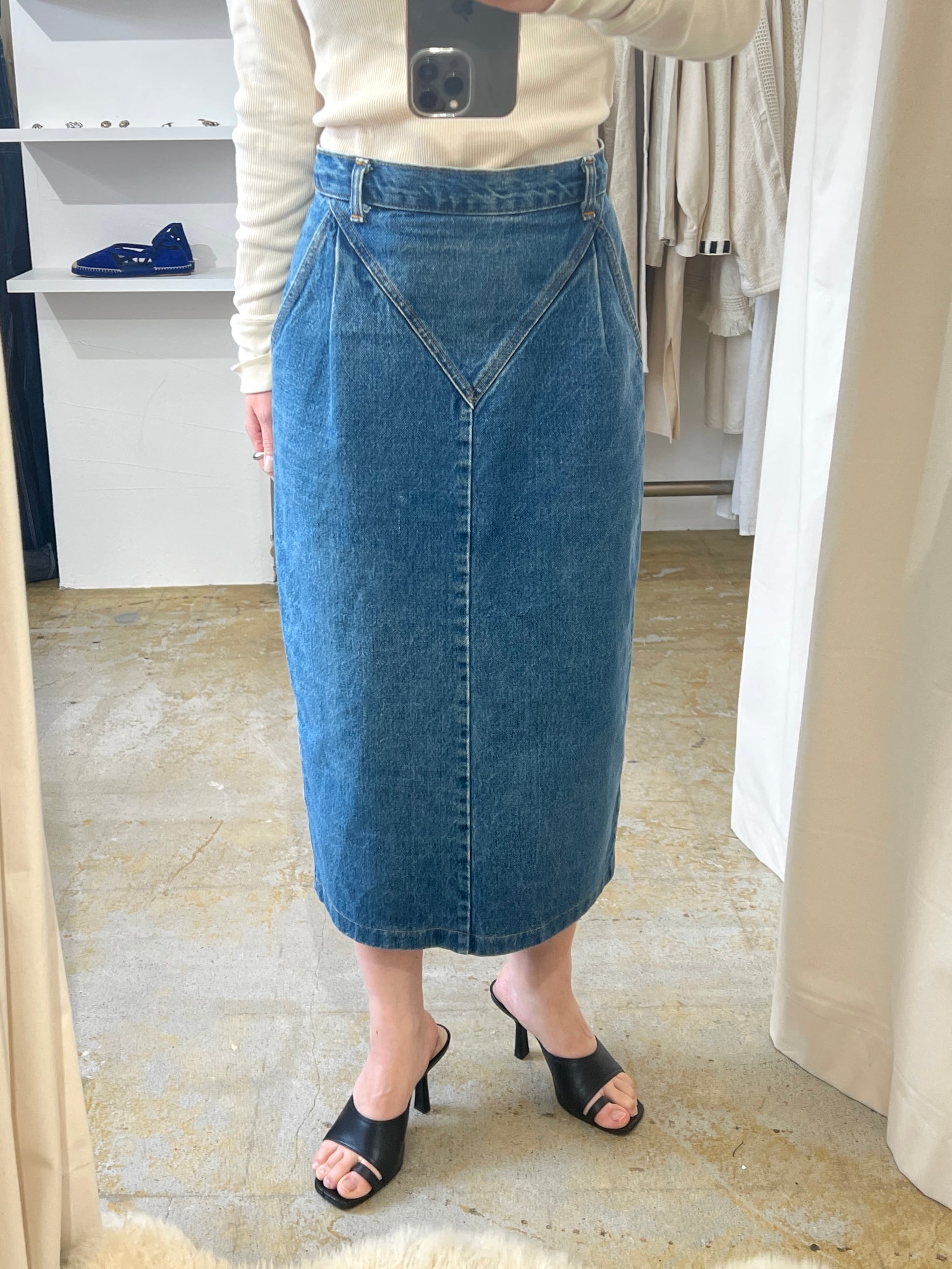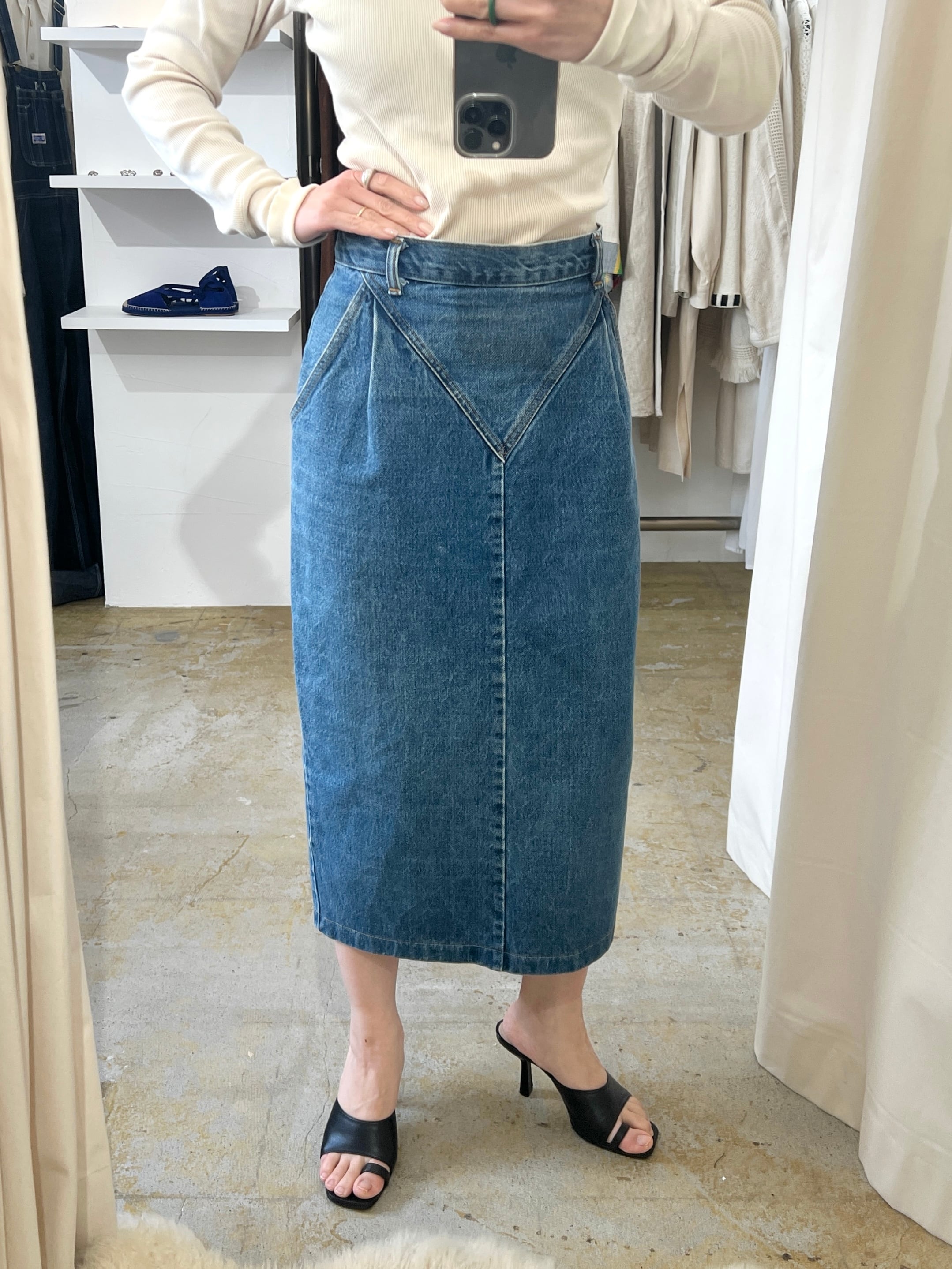 エッジさのあるウエストデザインが印象的な90年代のデニムスカート。