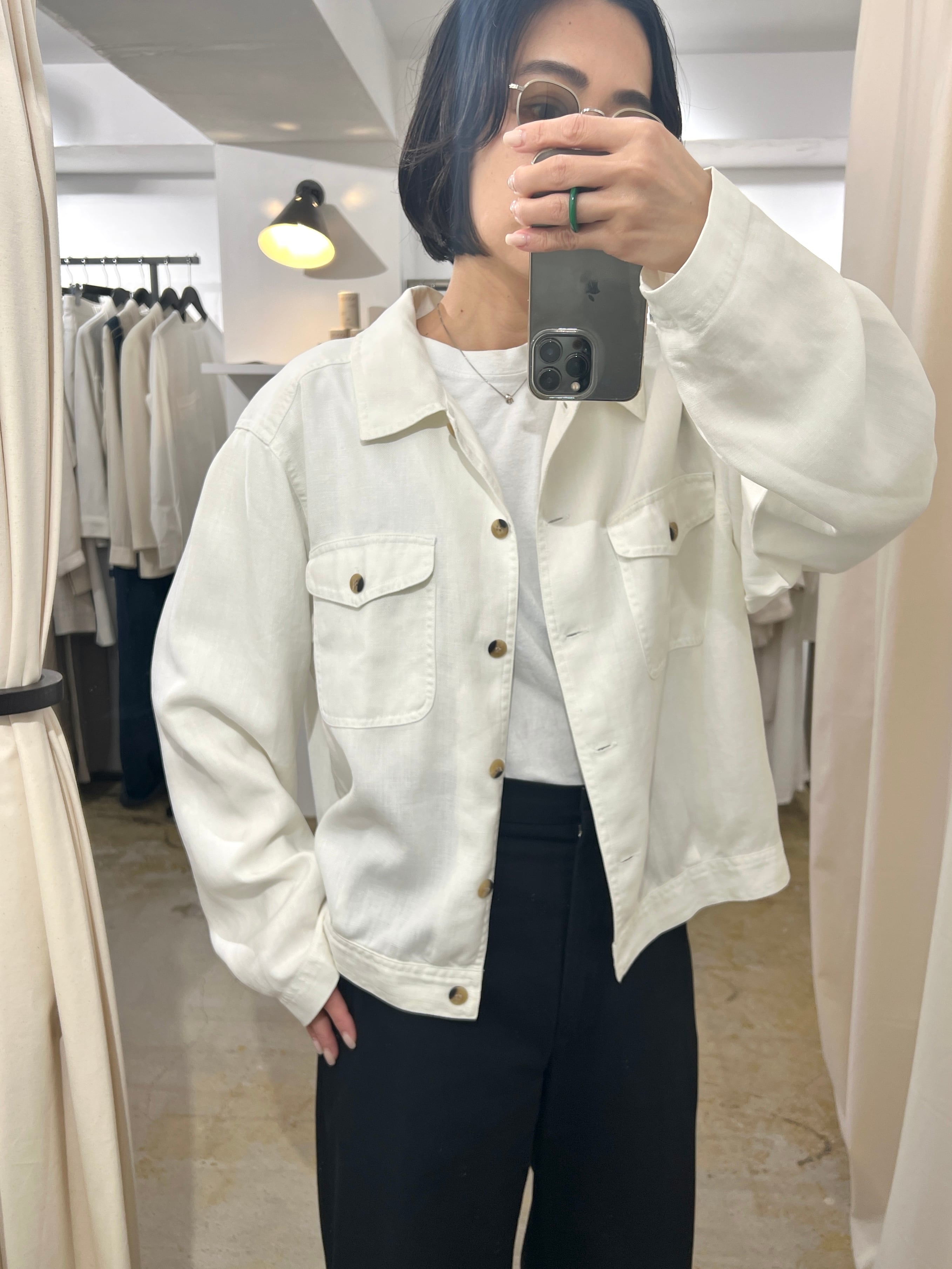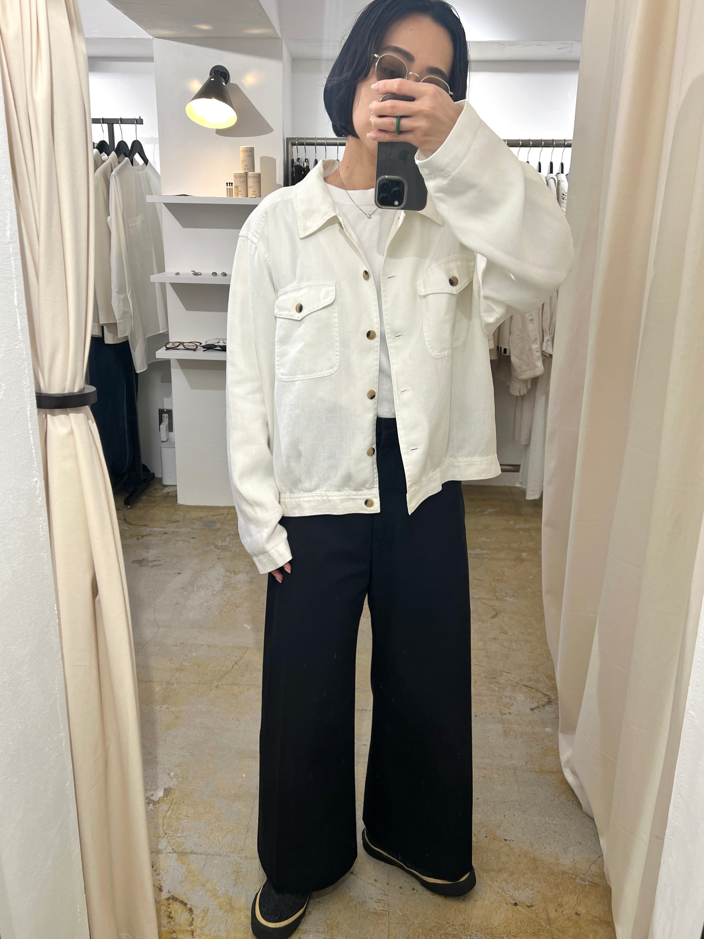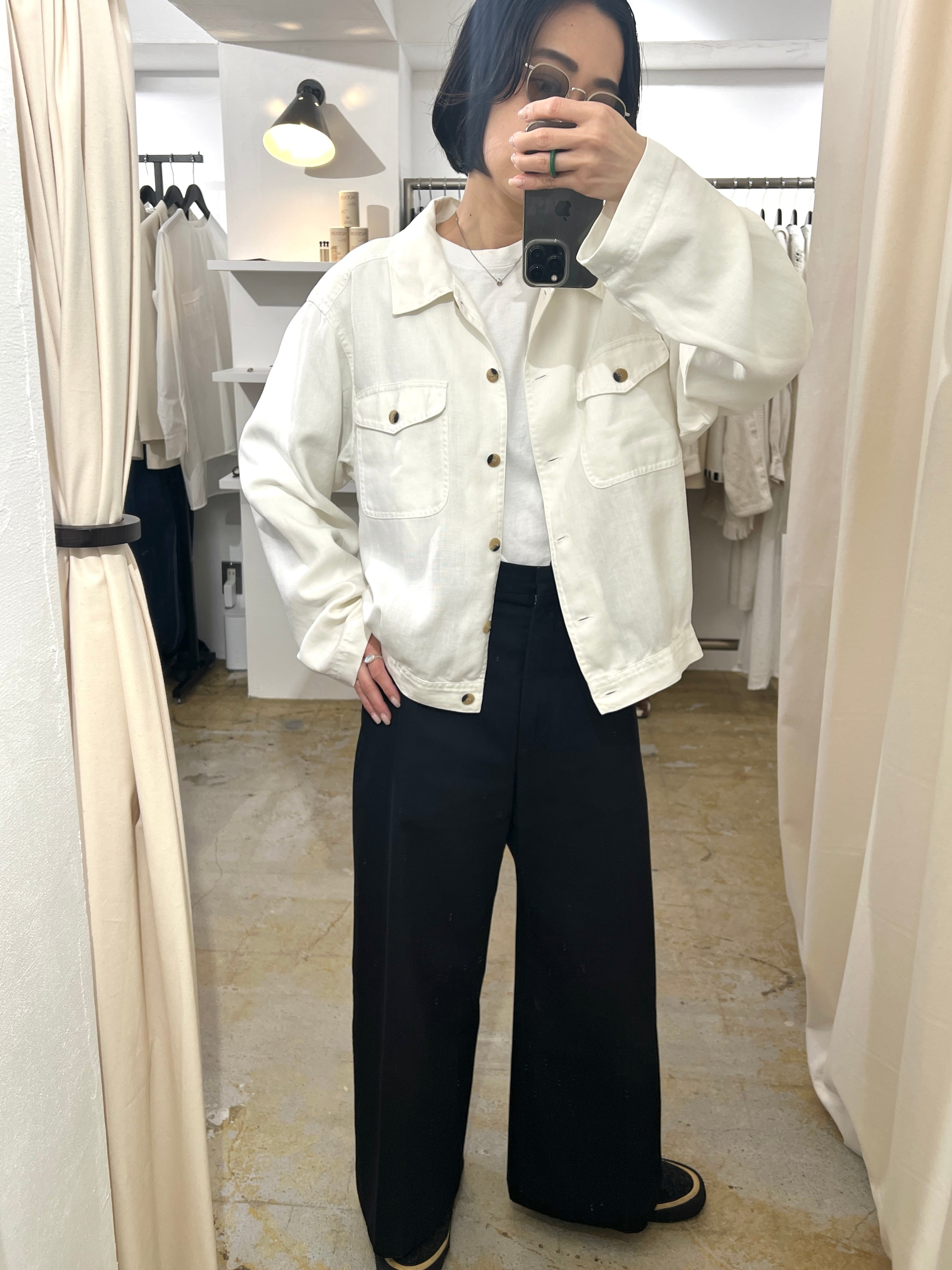 ゆったりサイズで羽織やすくリネン素材ならではの雰囲気が素敵です。