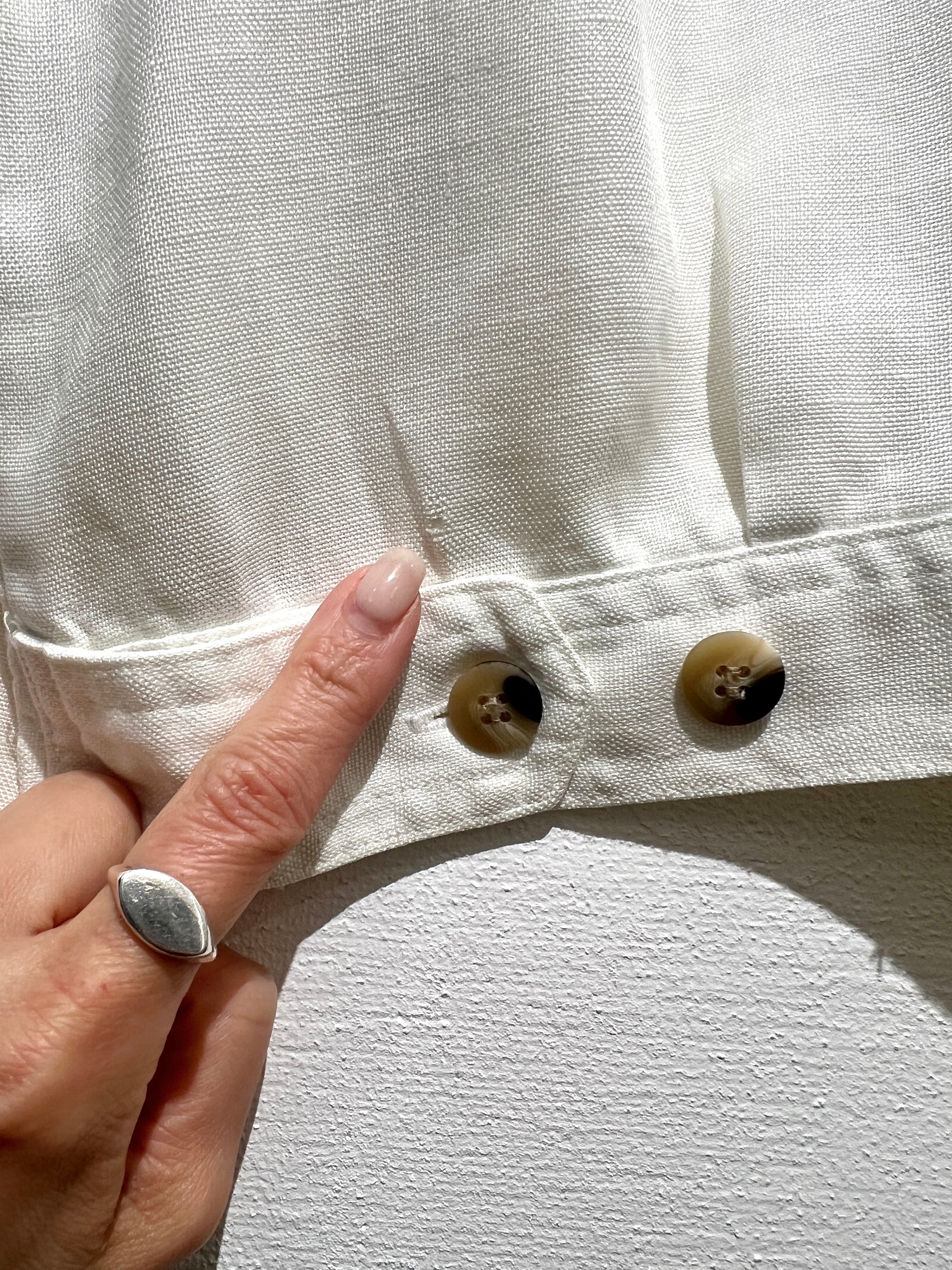 Condition:Vintage 後ろ左裾ボタンの上に傷による補修のリペアがあります(画像8)。他、カラーも白ですが汚れなどなく綺麗な状態かと思います。