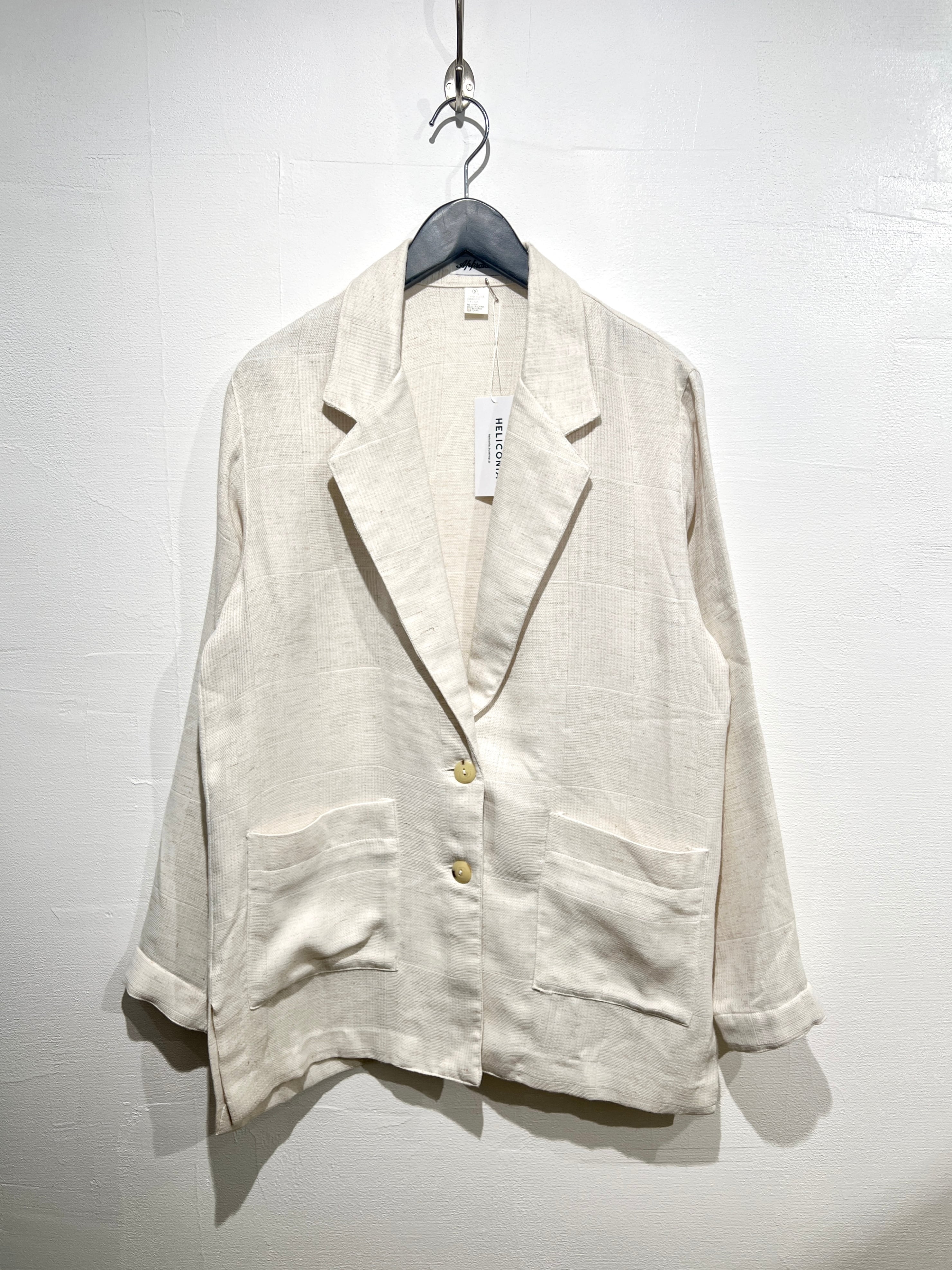 よく見るとチェックに織られたテキスタイルが素敵な90年代のリネンジャケット。