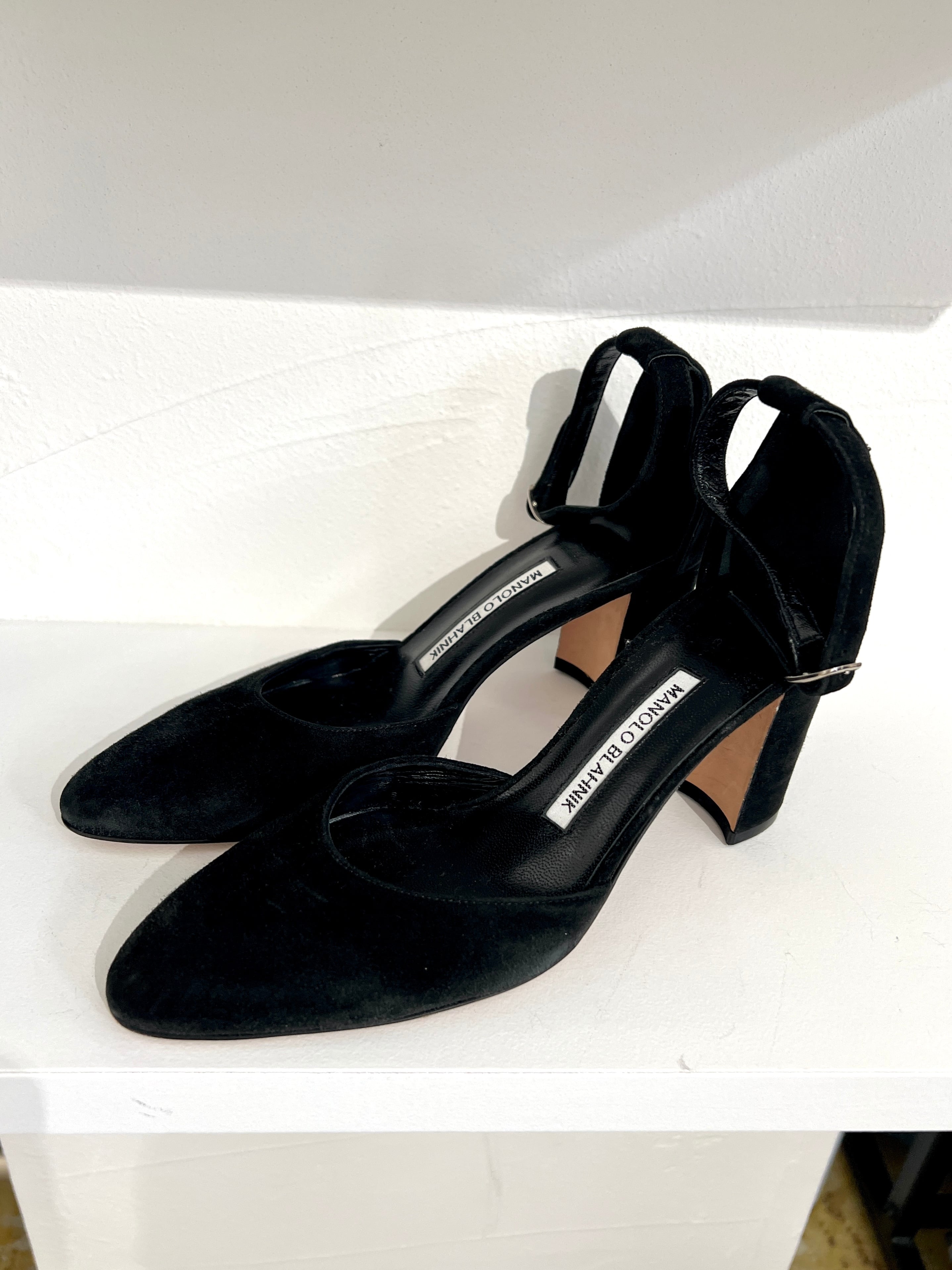 MANOLO BLAHNIK suede ankle strap pumps
