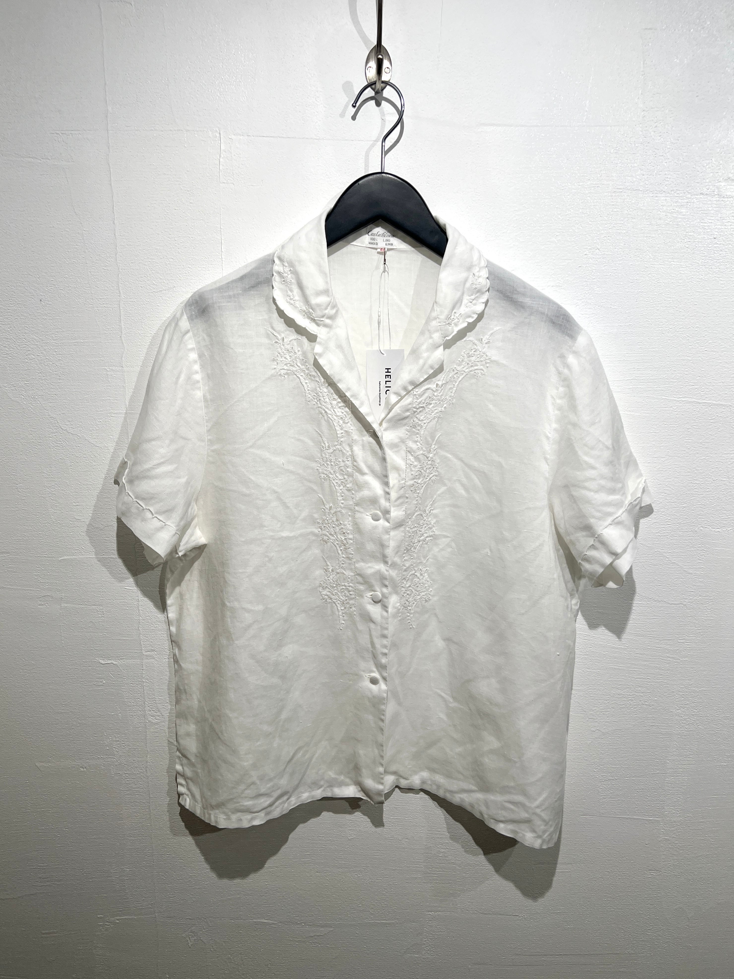 繊細なハンドクラフトによる刺繍やカットワークレースが素敵なリネンブラウス。