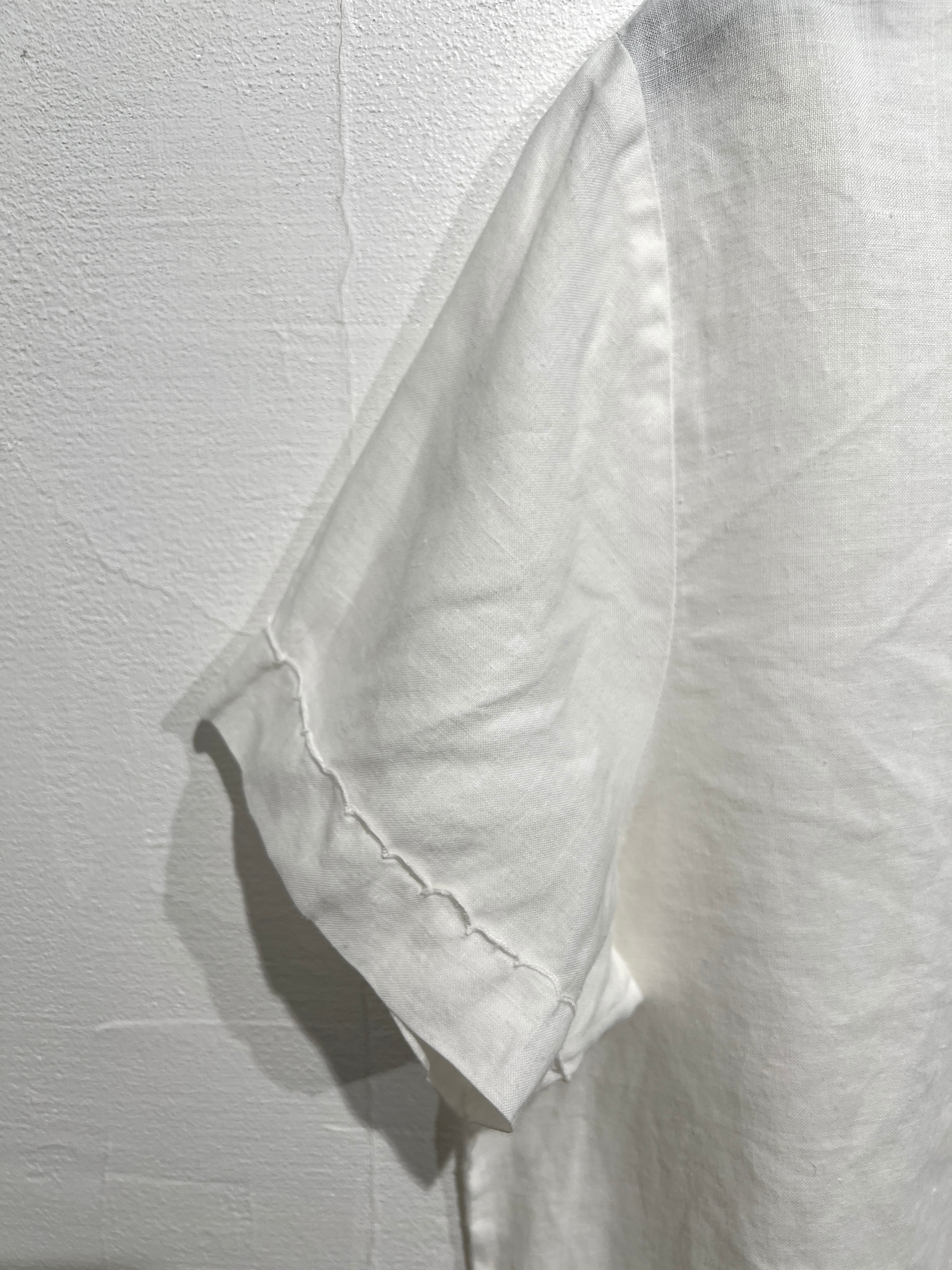 こちらはゆったりめサイズ感で、オープンカラーにボックスシルエットのシンプルな形は飽きがこず長い年月楽しめるデザインかと思います。