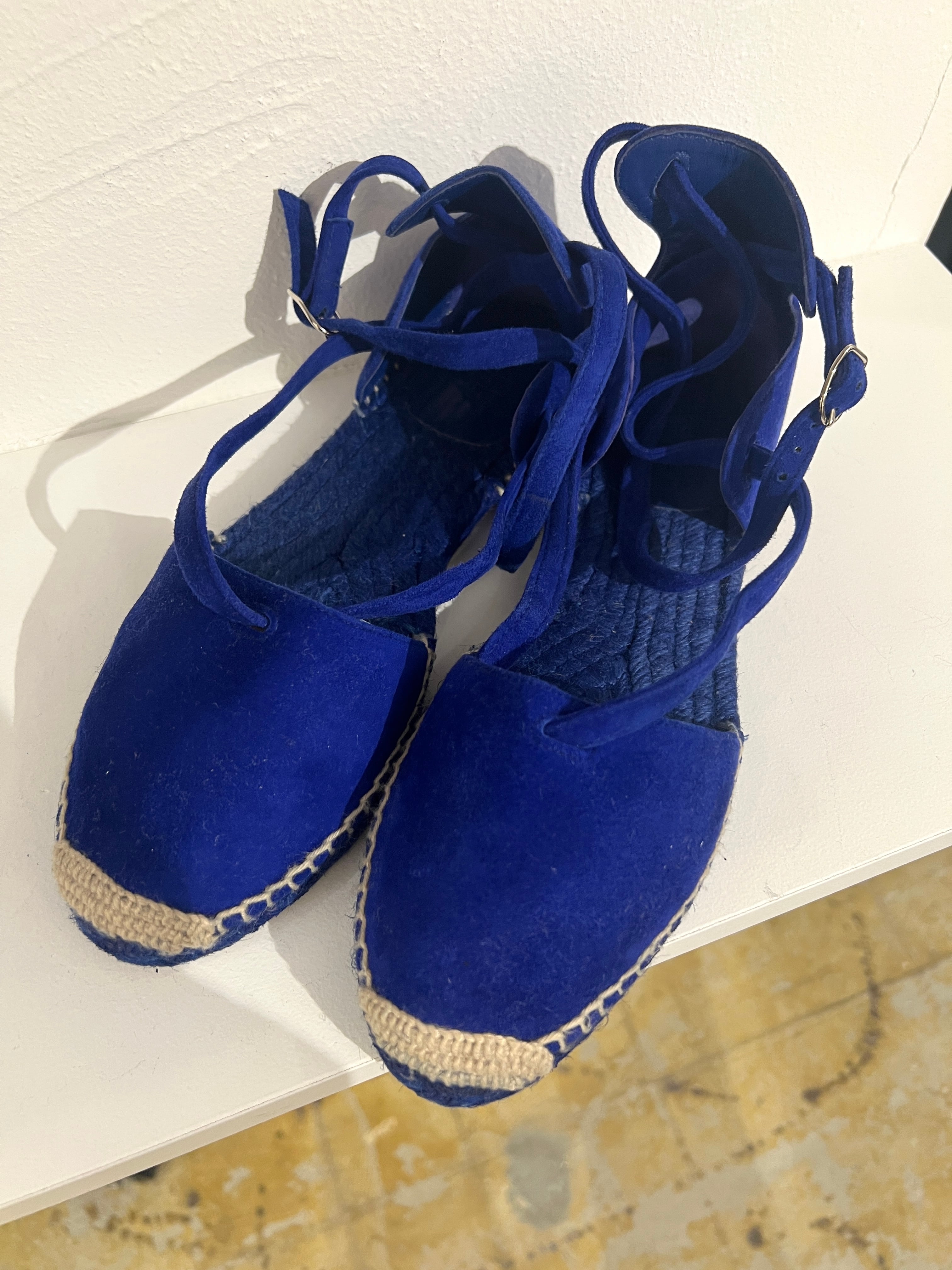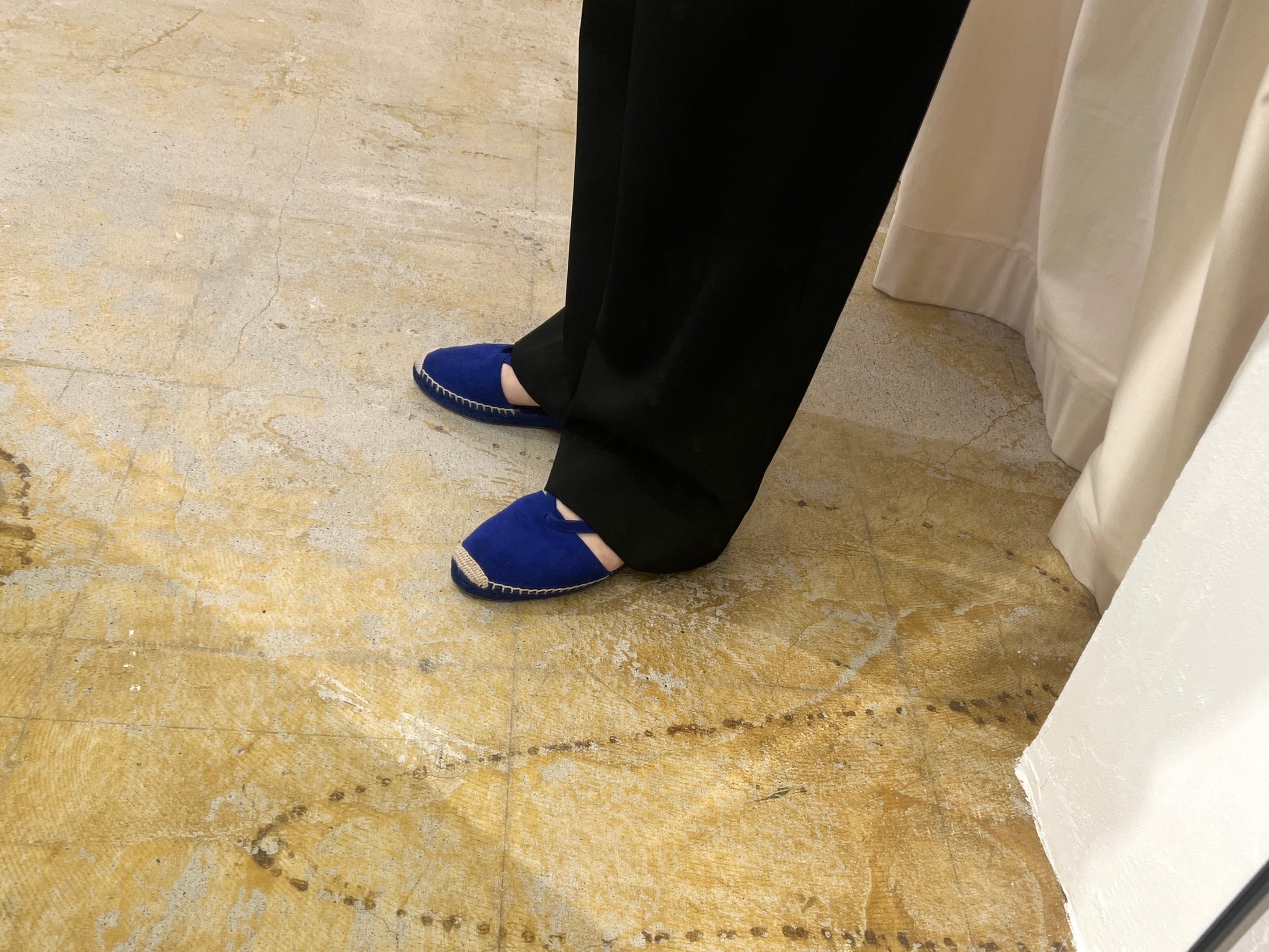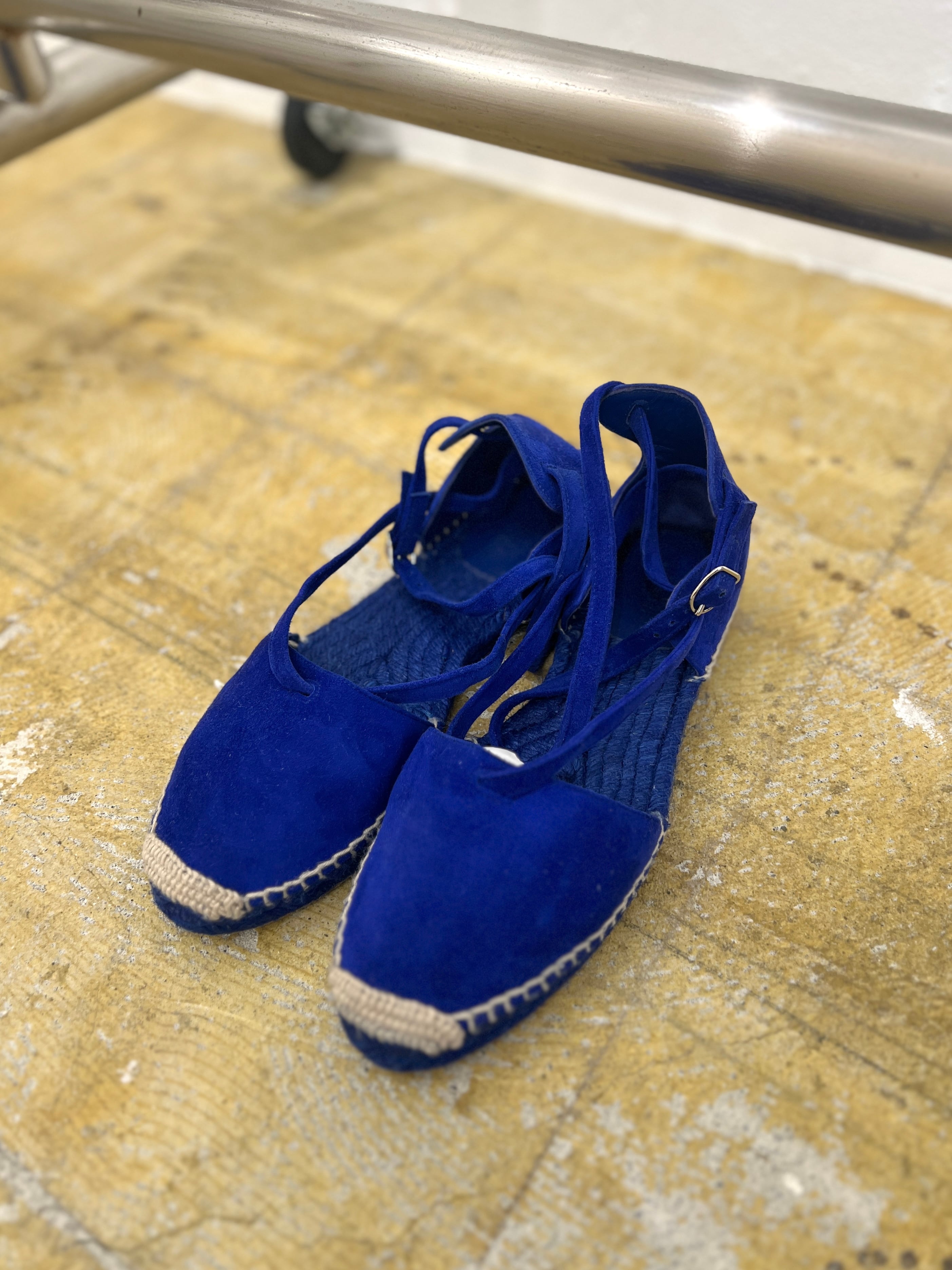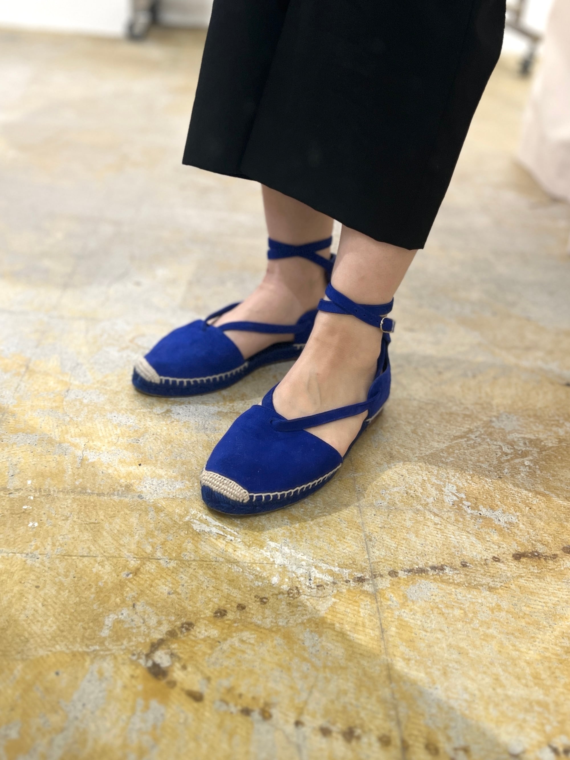 真っ青なブルースエードが目を引くHERMEのエスパドリーユ。