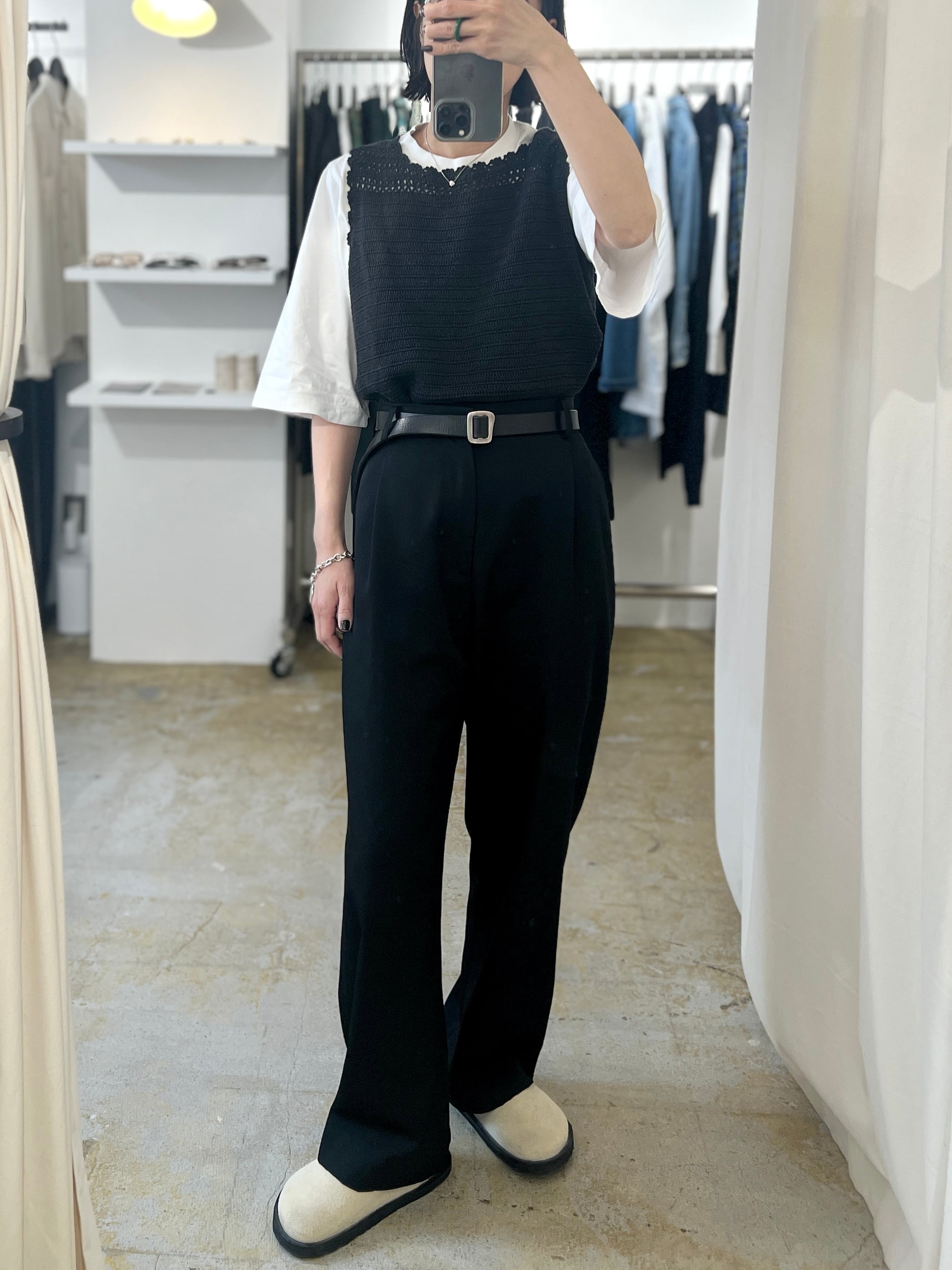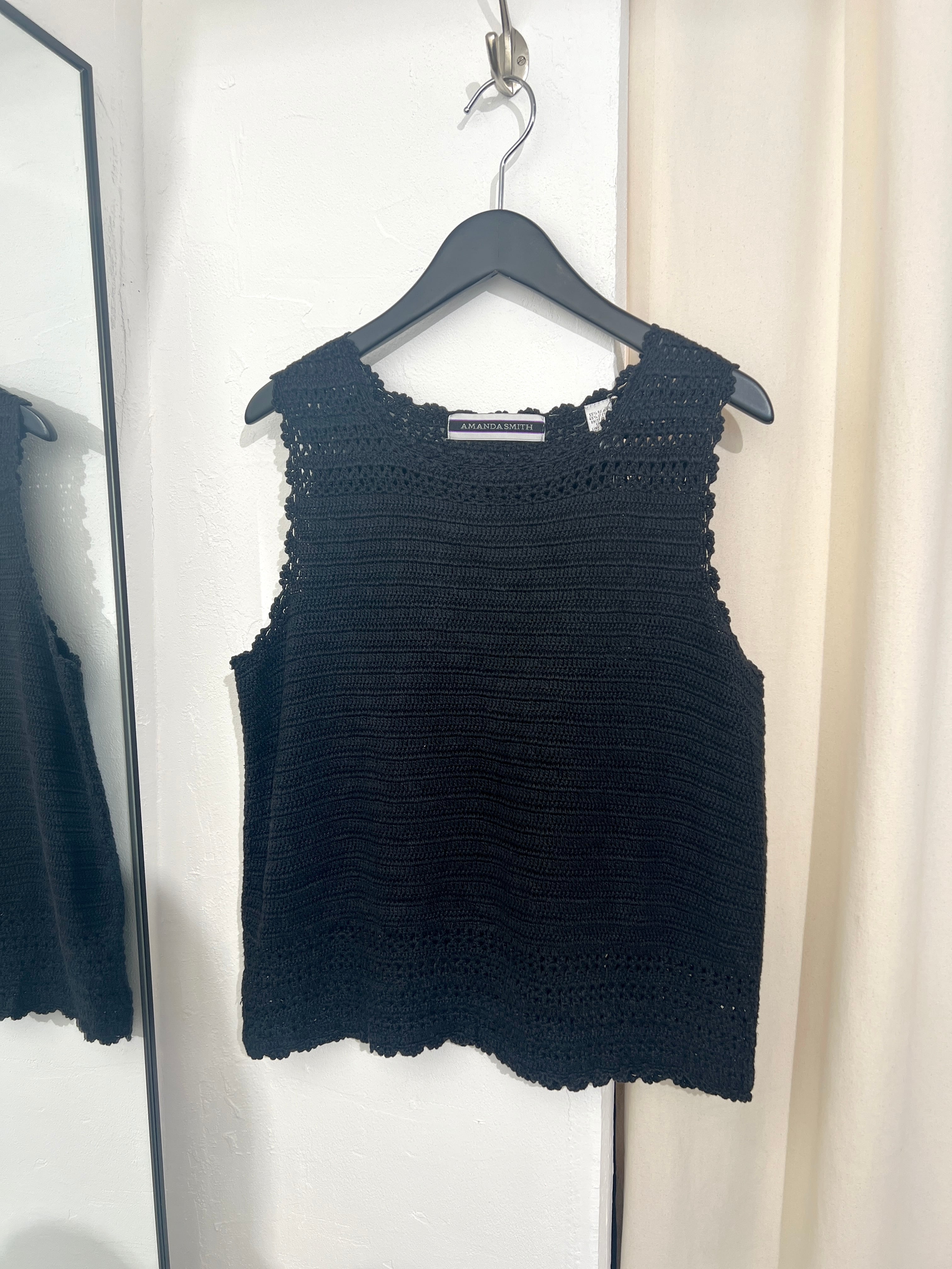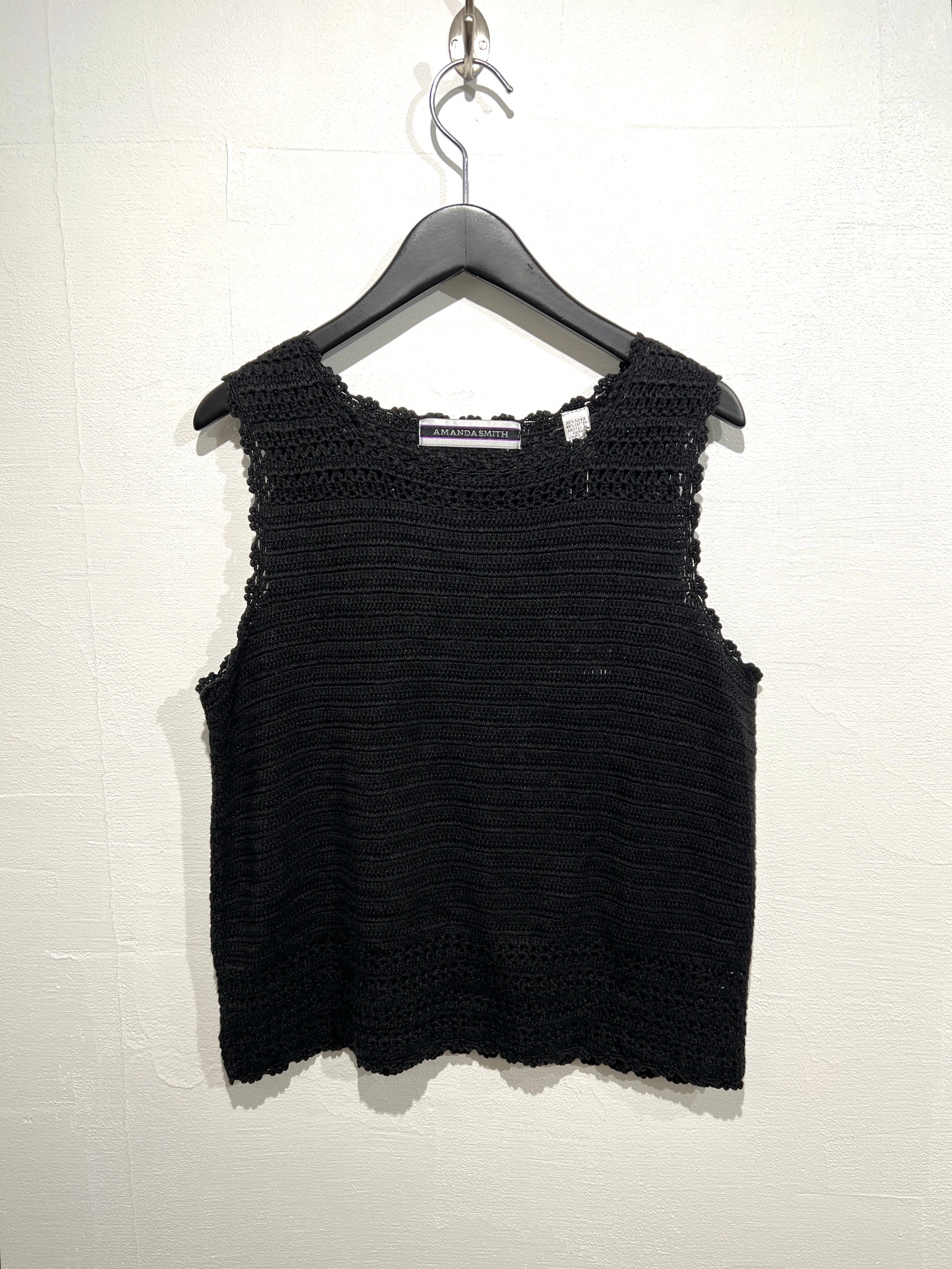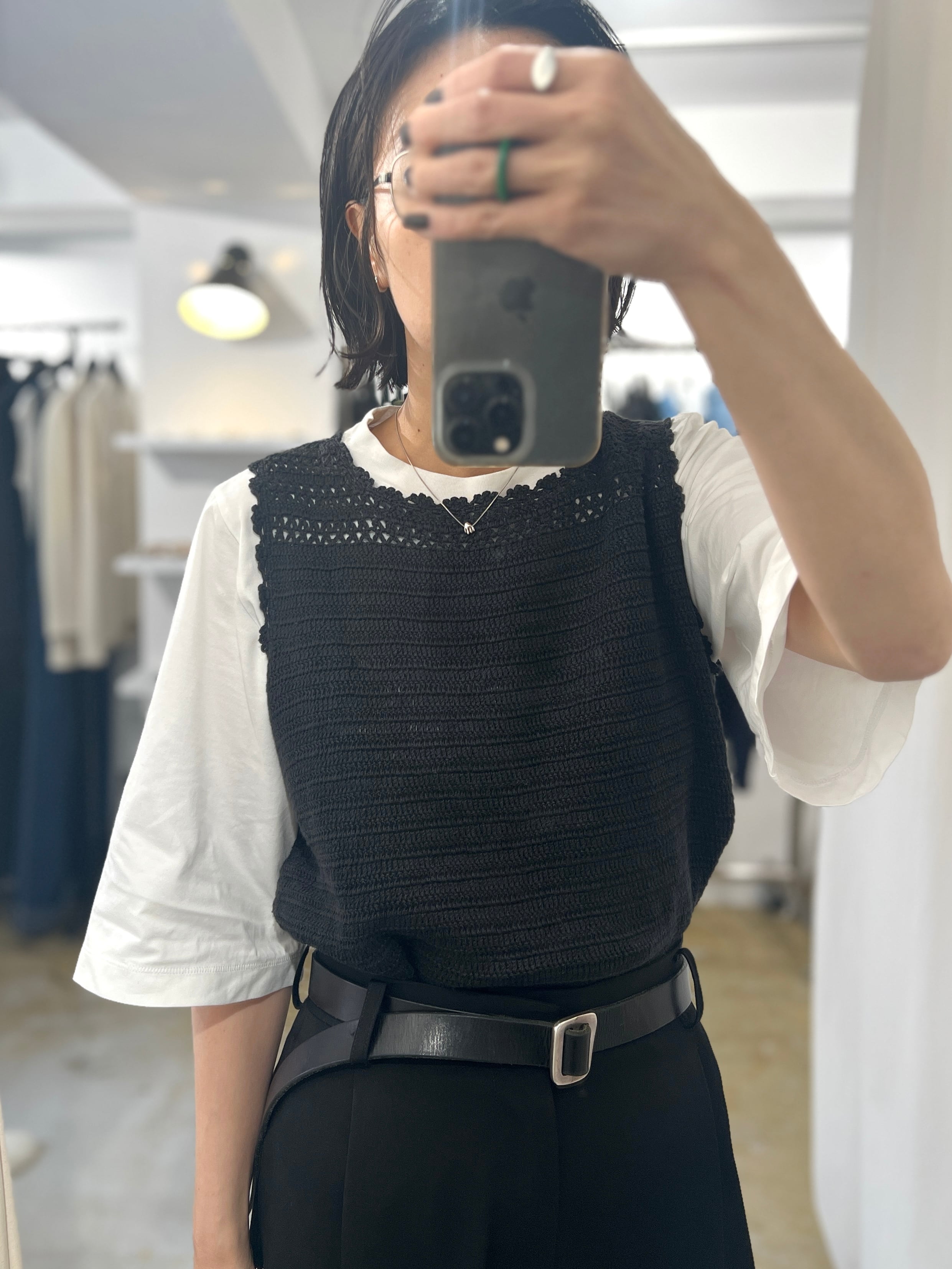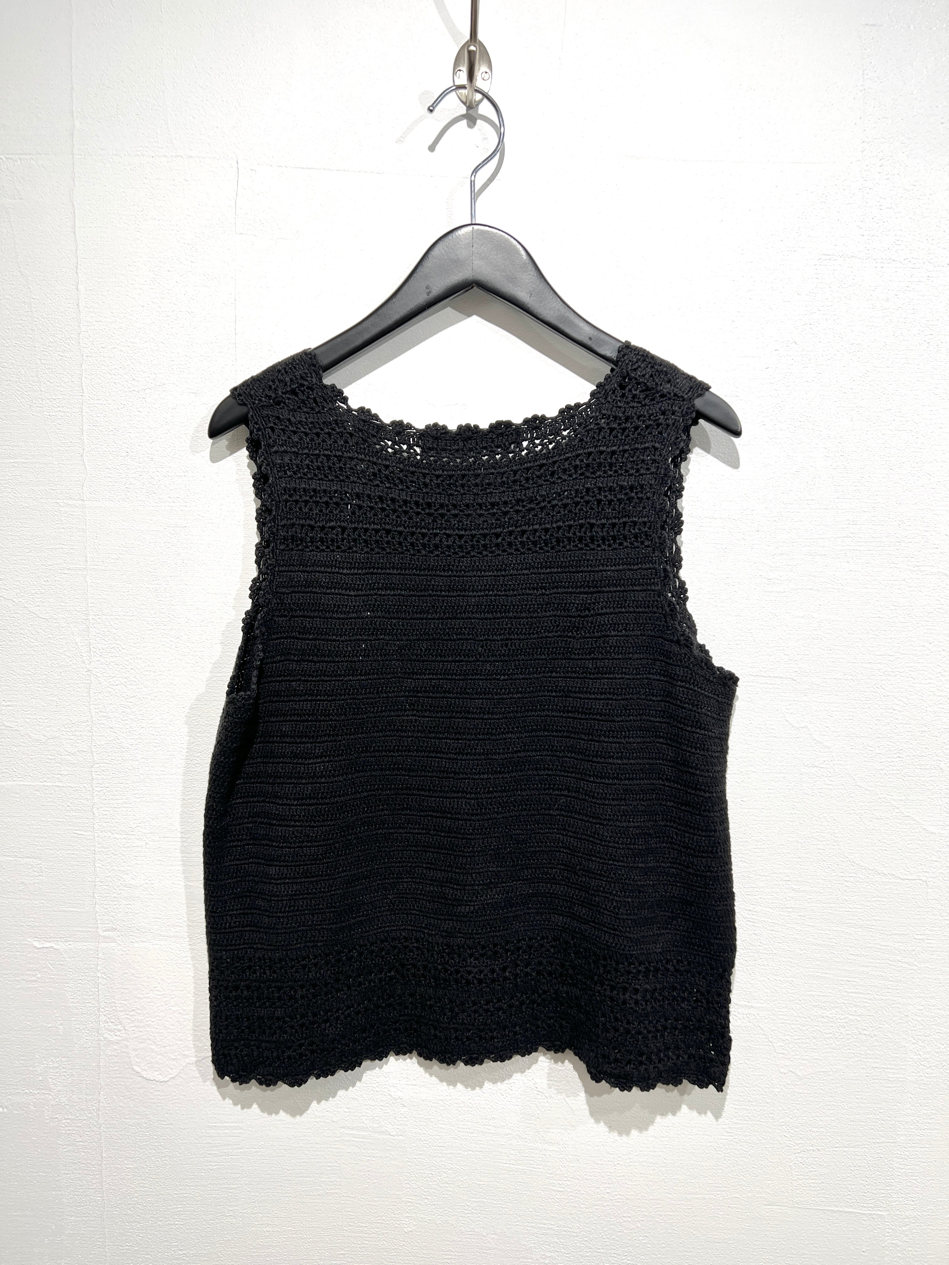 トップと裾が透けのあるクロシェット編みになったコットンラミーのノースリーブトップス。