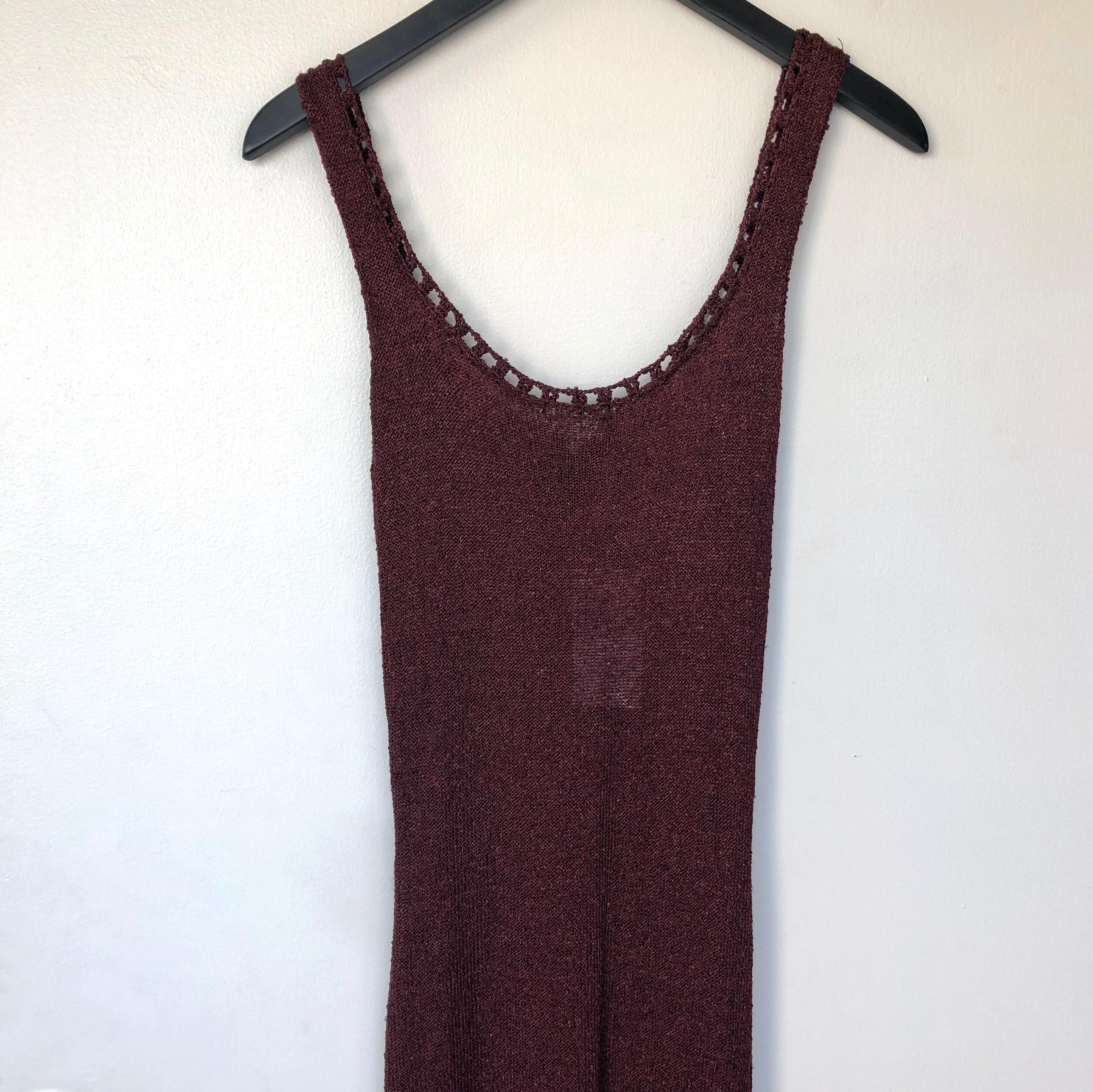 細かなディティールが美しいブラウンカラーの70'sサマーニットドレス。