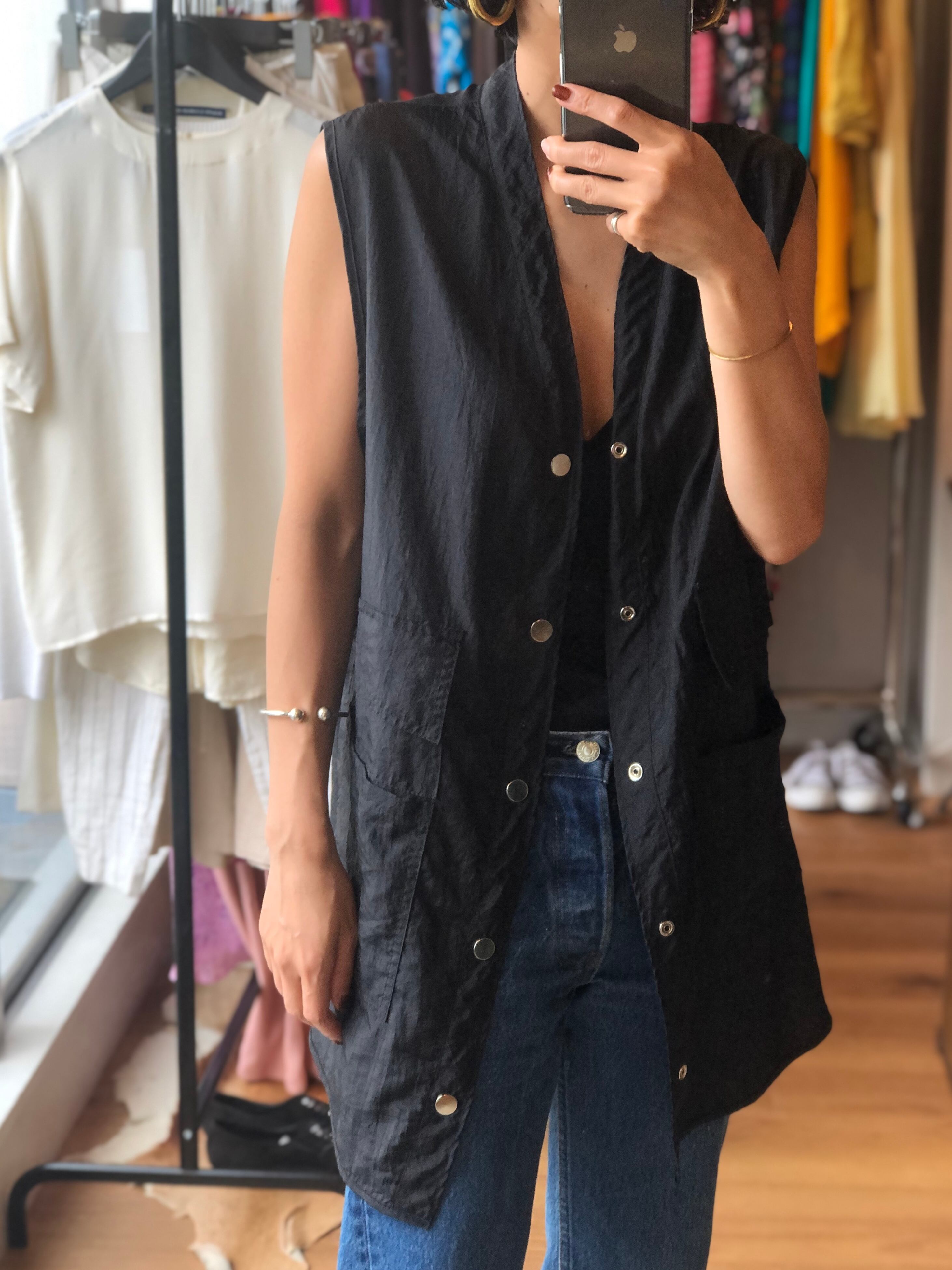 ワークとスポーティーなテイストを楽しめるナイロン素材のロングベスト。