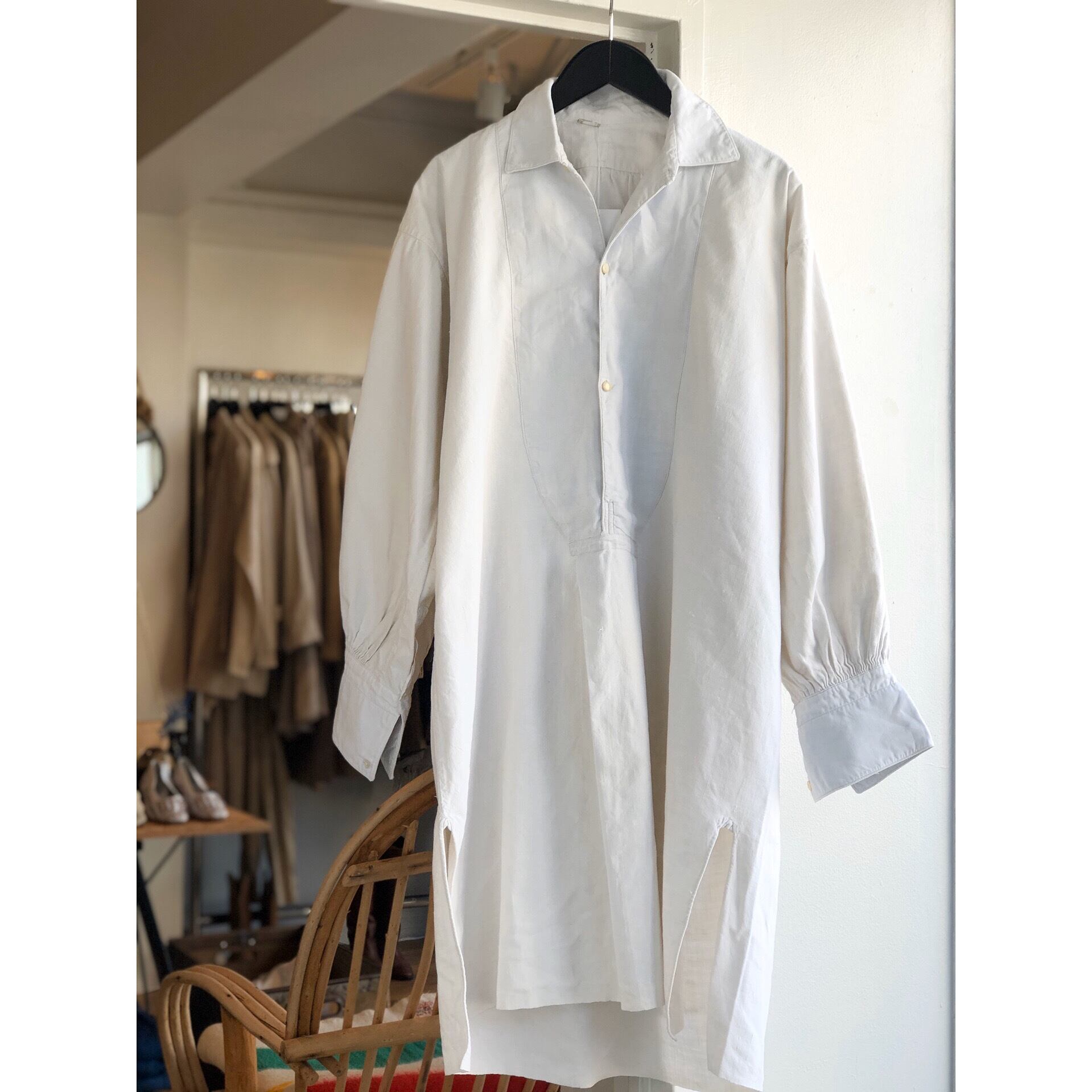 張りのあるしっかりとしたフレンチリネンのシャツドレス。