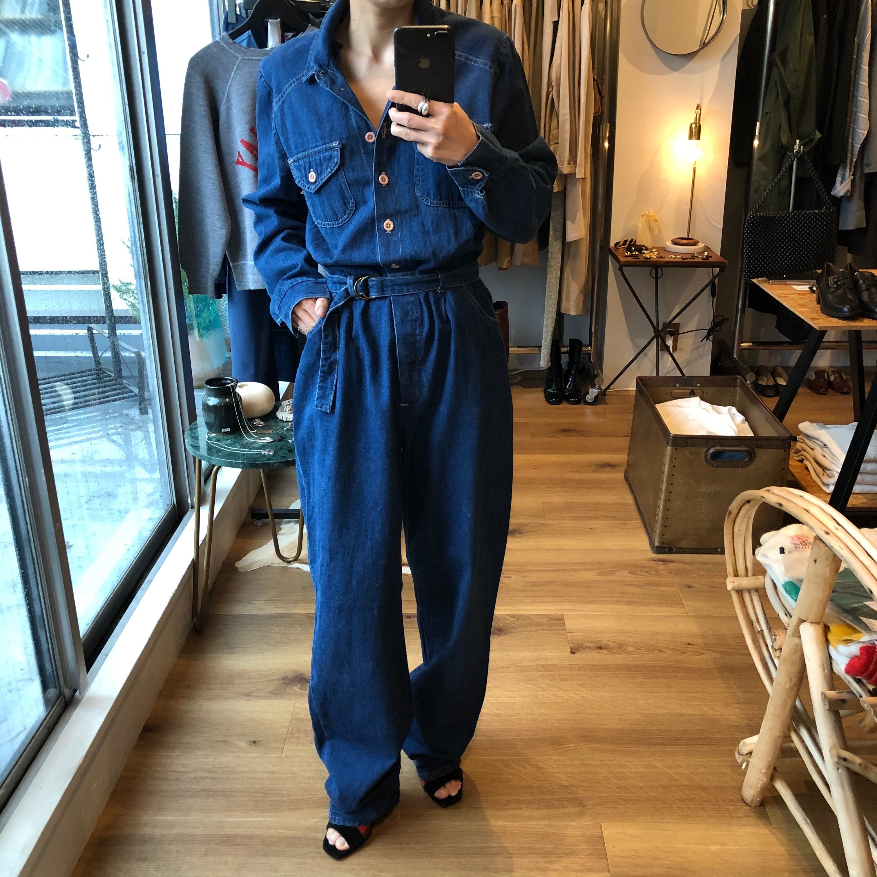 ウエストベルトが付いたワークなスタイルの70sデニムジャンプスーツ。