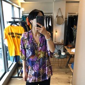 印象的なアートなプリントが美しいヴィンテージのオプンカラーシャツ。