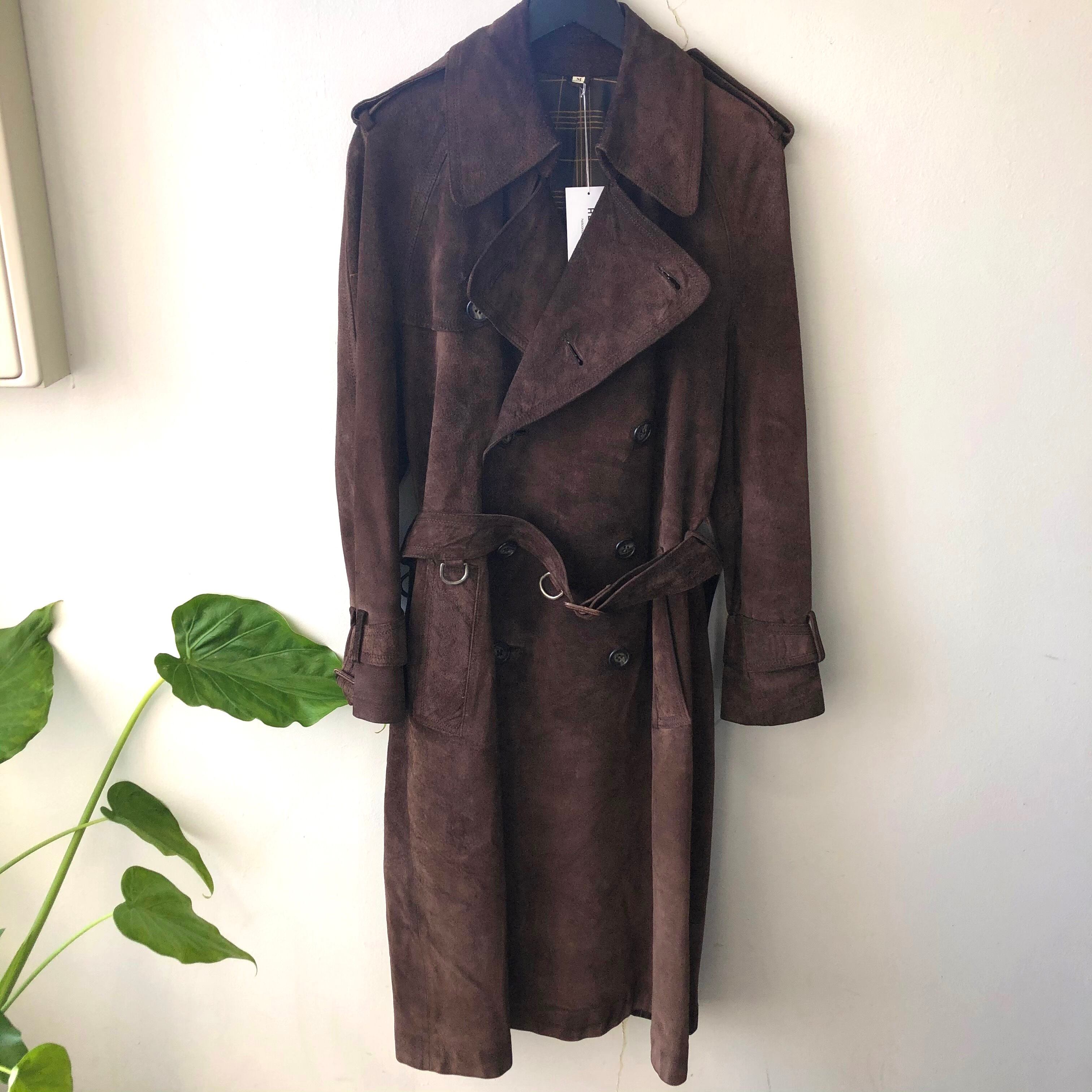 味の出たスエードレザー独特の風合いが魅力のスタンダードなトレンチコート。