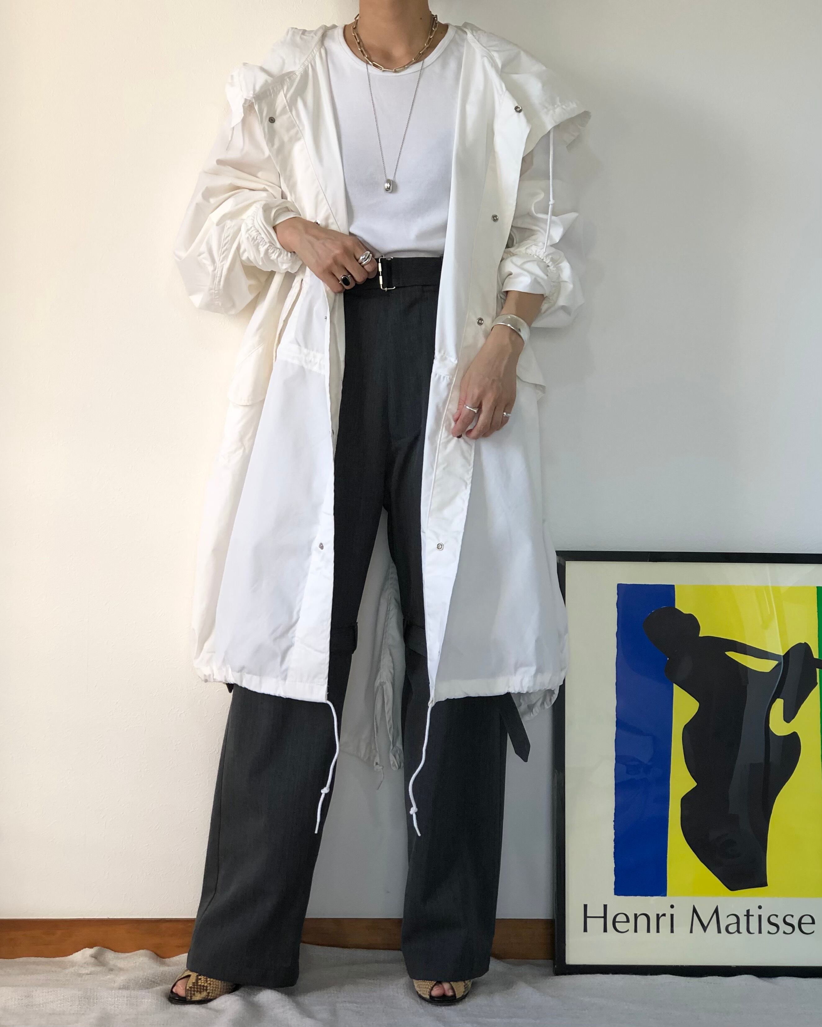 真っ白なロング丈の雰囲気がかっこいいスタイリングに。