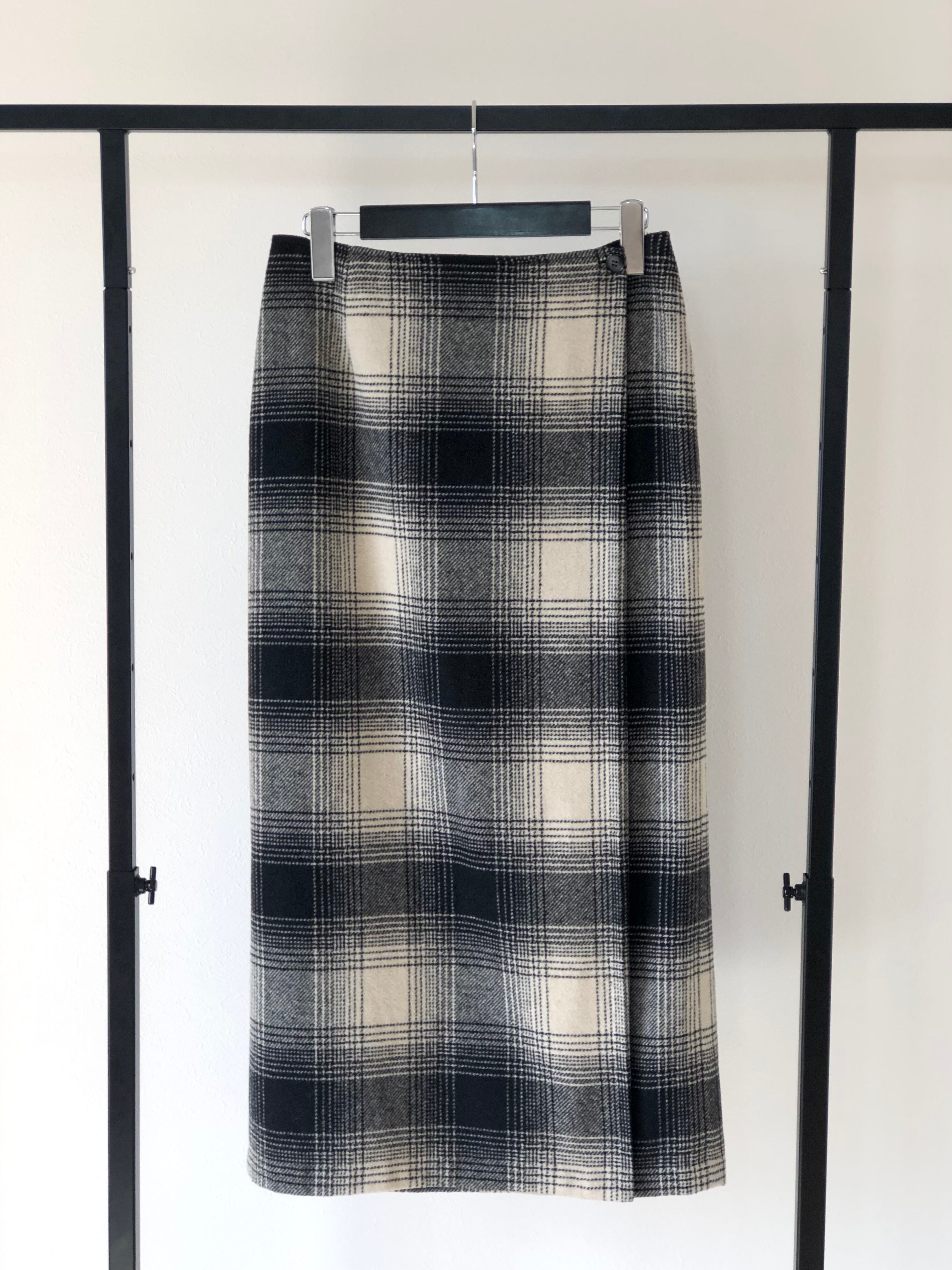 大柄なモノトーンのチェック柄でインパクトもありモノトーンで合わせやすいバランス。
