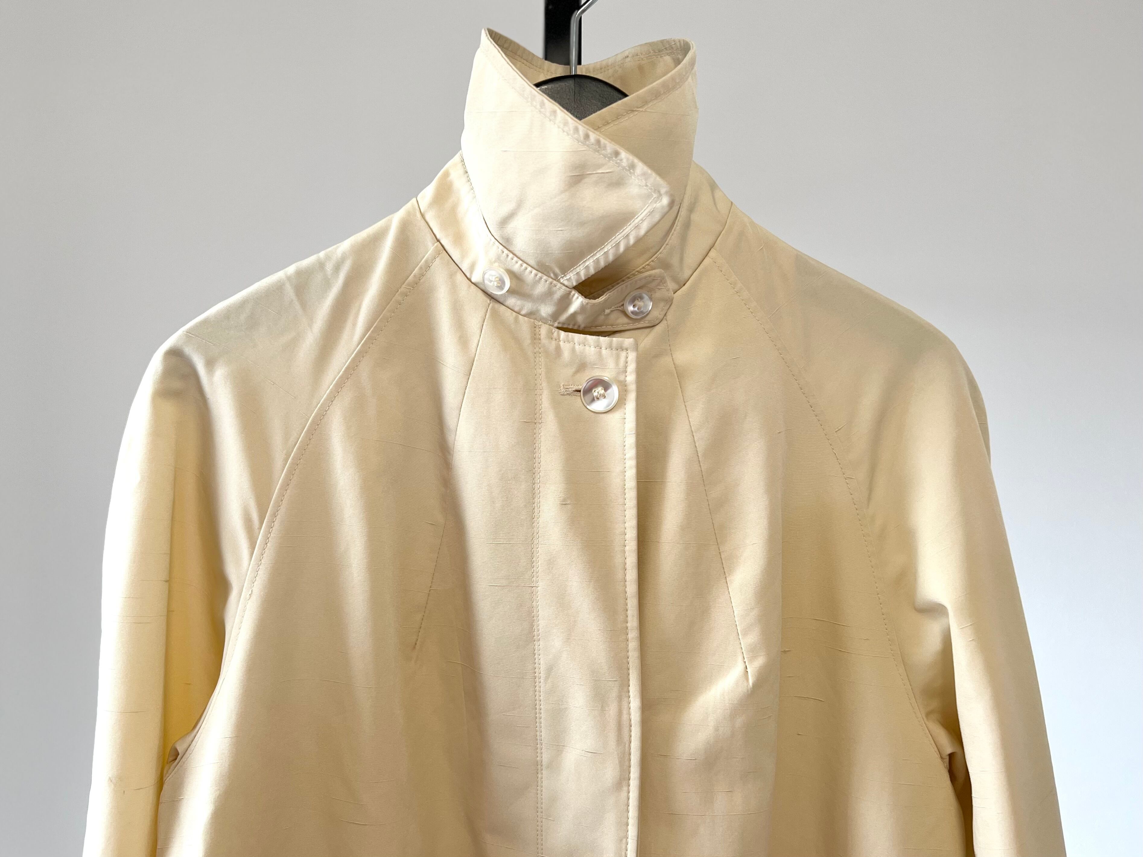 素材表記がありませんがコットンナイロンの肌触りで、ナイロンの多めな風合いなのでレインコートとしてもおすすめです。