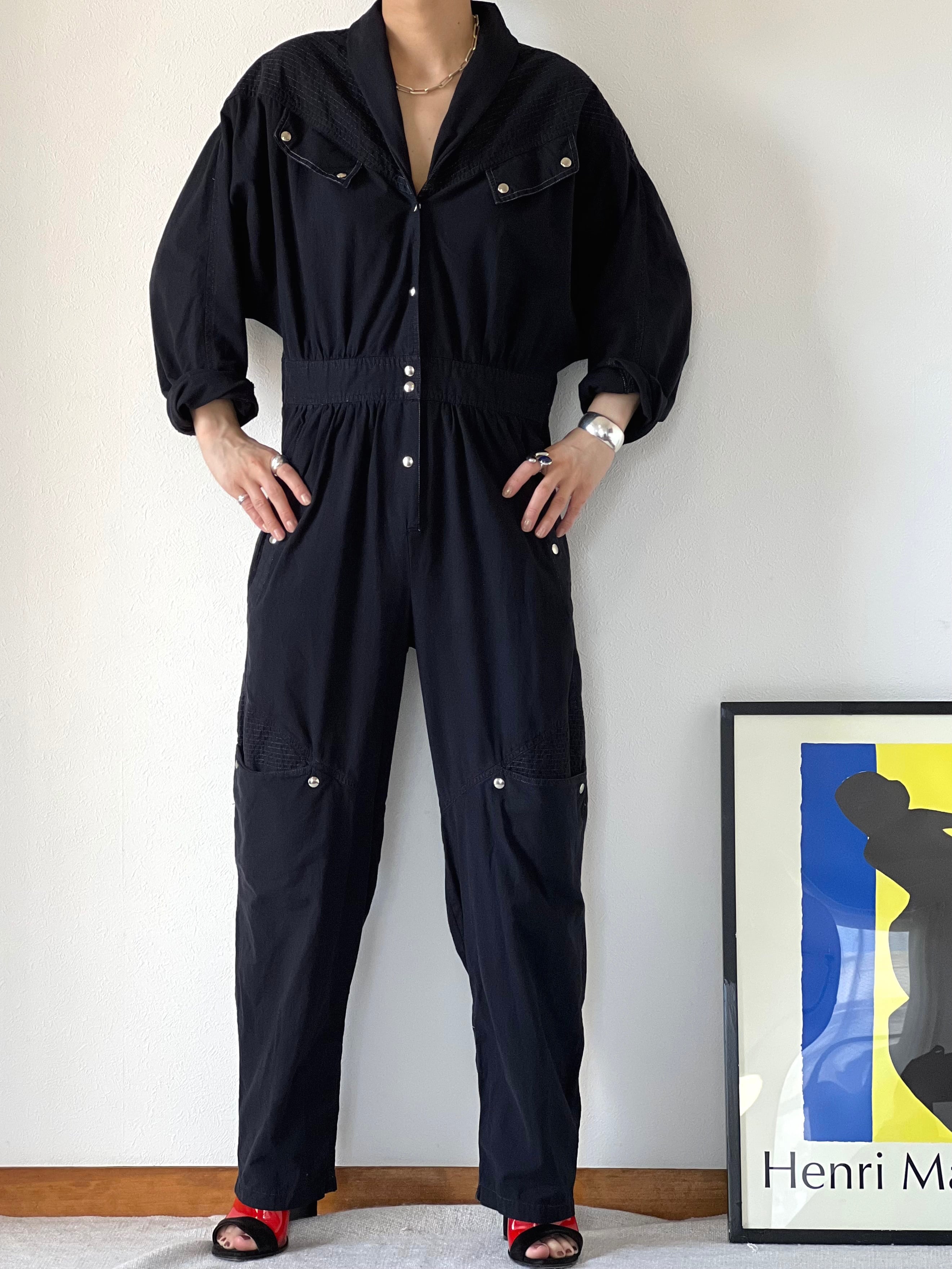 スナップボタンとステッチのデザインがアクセントになった80'sのコットンジャンプスーツ。