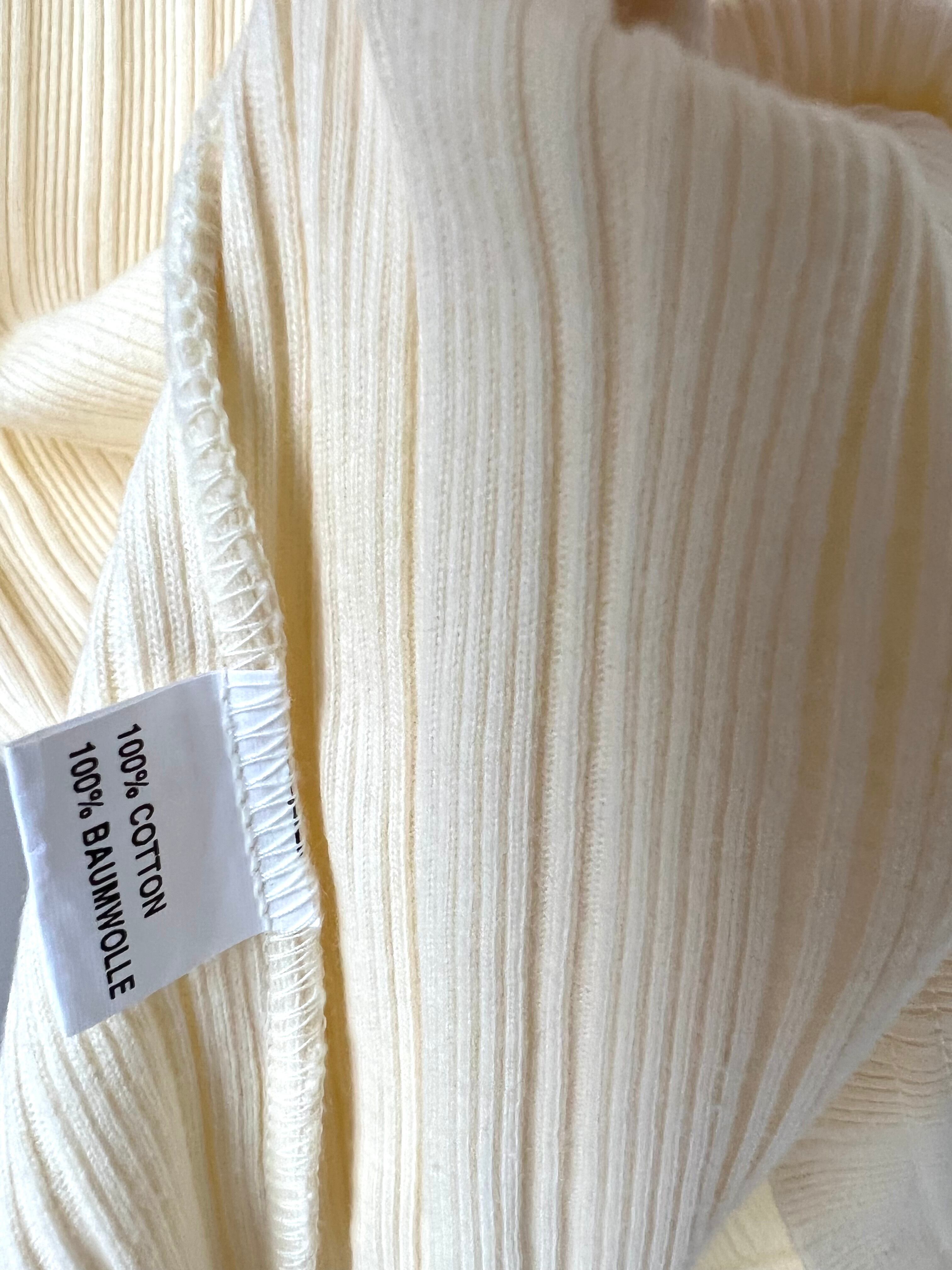 リブのピッチ具合が可愛いトーンの綺麗なクリームベージュのタンクトップドレス。