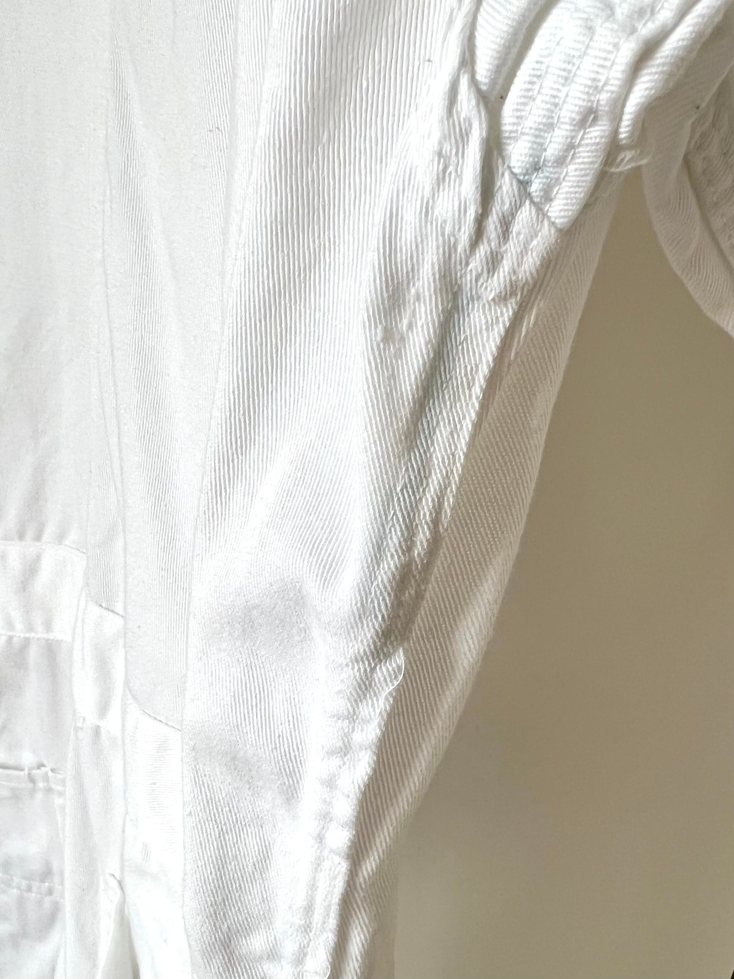 作業着でも真っ白なので雰囲気のあるスタイルを感じる着こなしに。