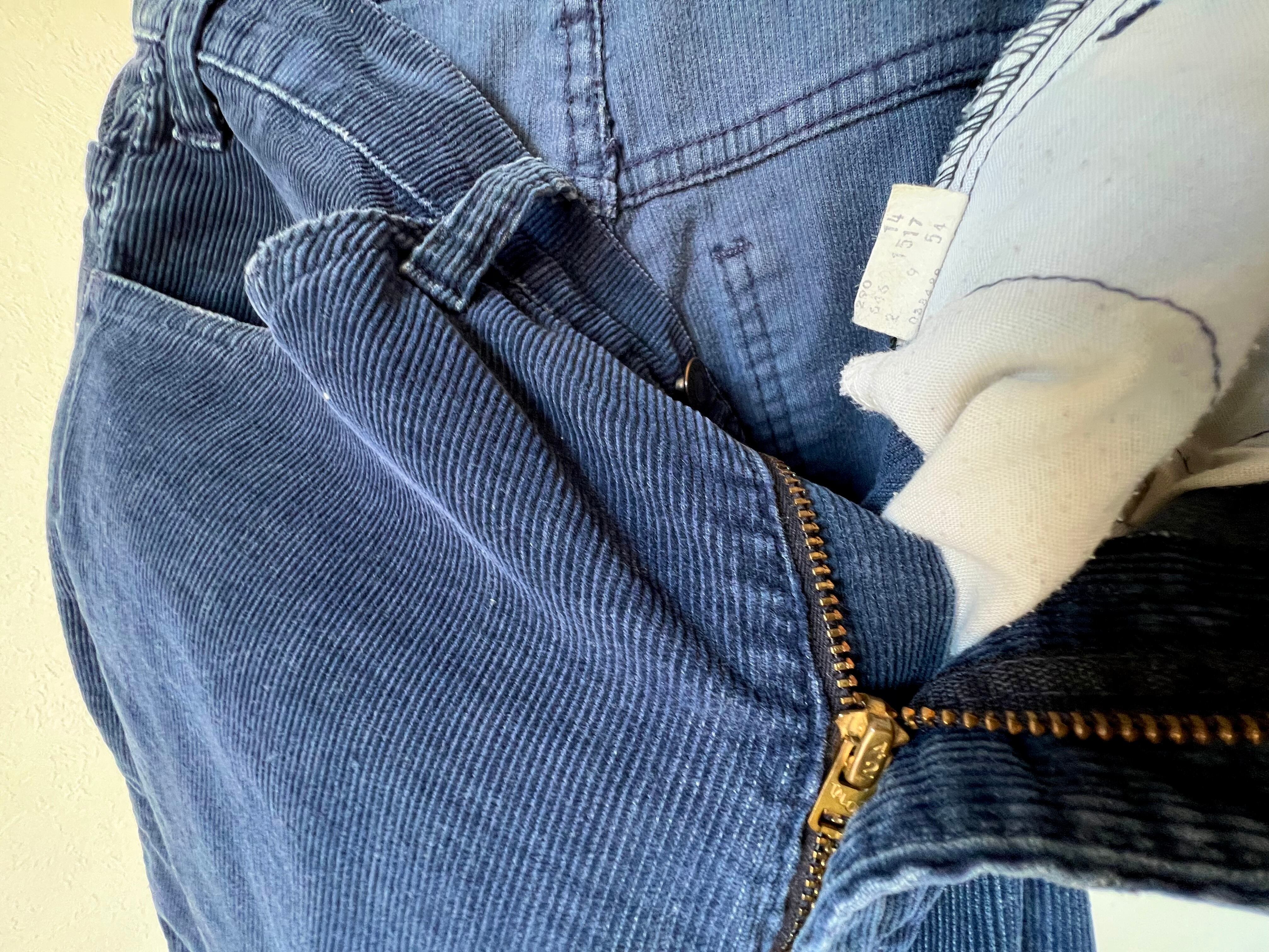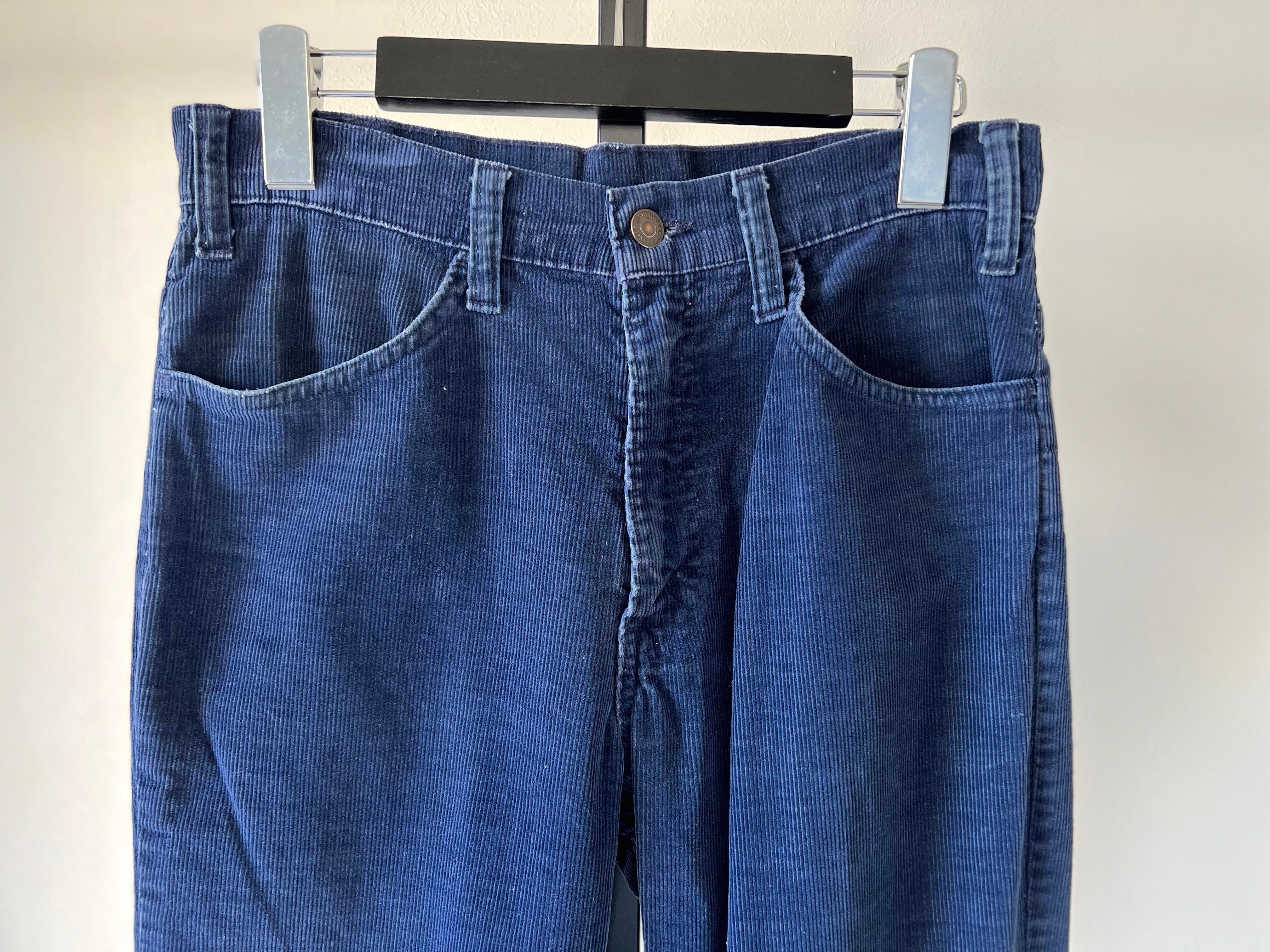 ブルーデニムのように楽しめるネイビーのコーデュロイ素材が魅力のヴィンテージLevi'sベルボトムパンツ。