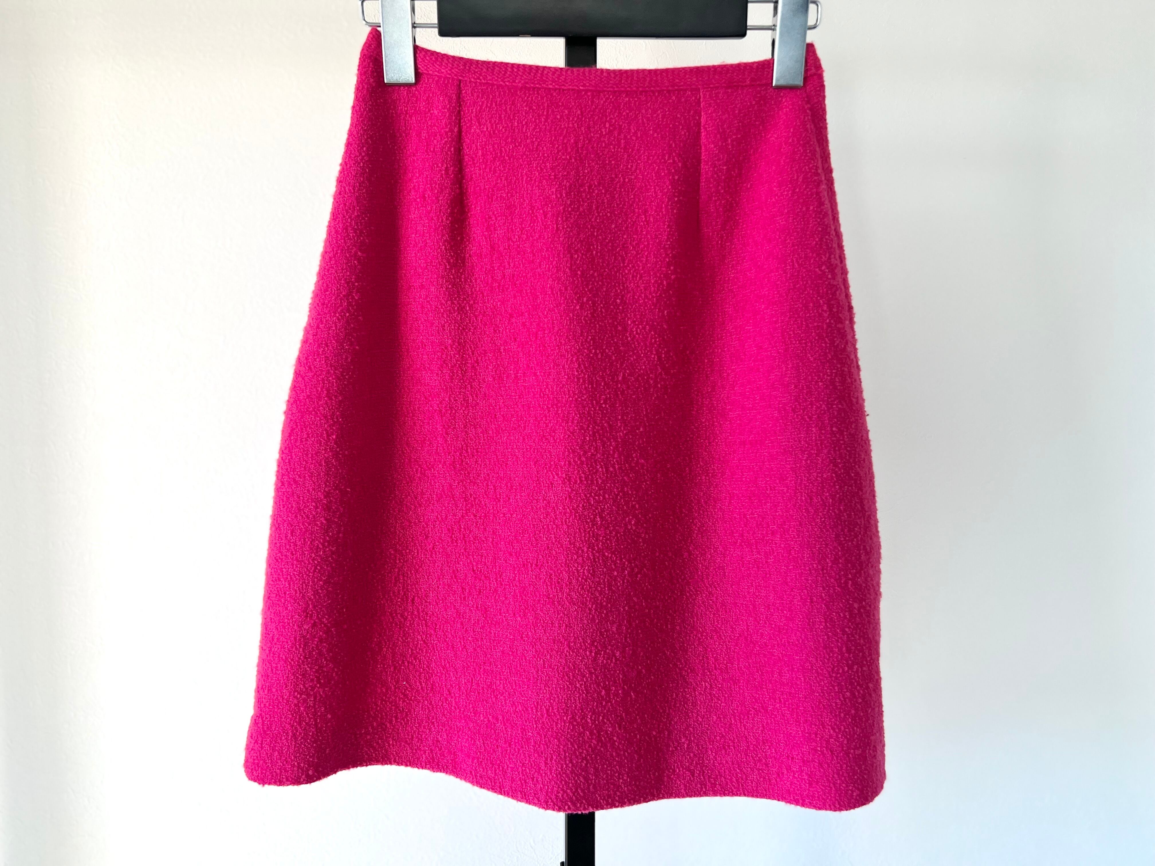 ヴィヴィッドなピンクのツイード素材が可愛いミニスカート。
