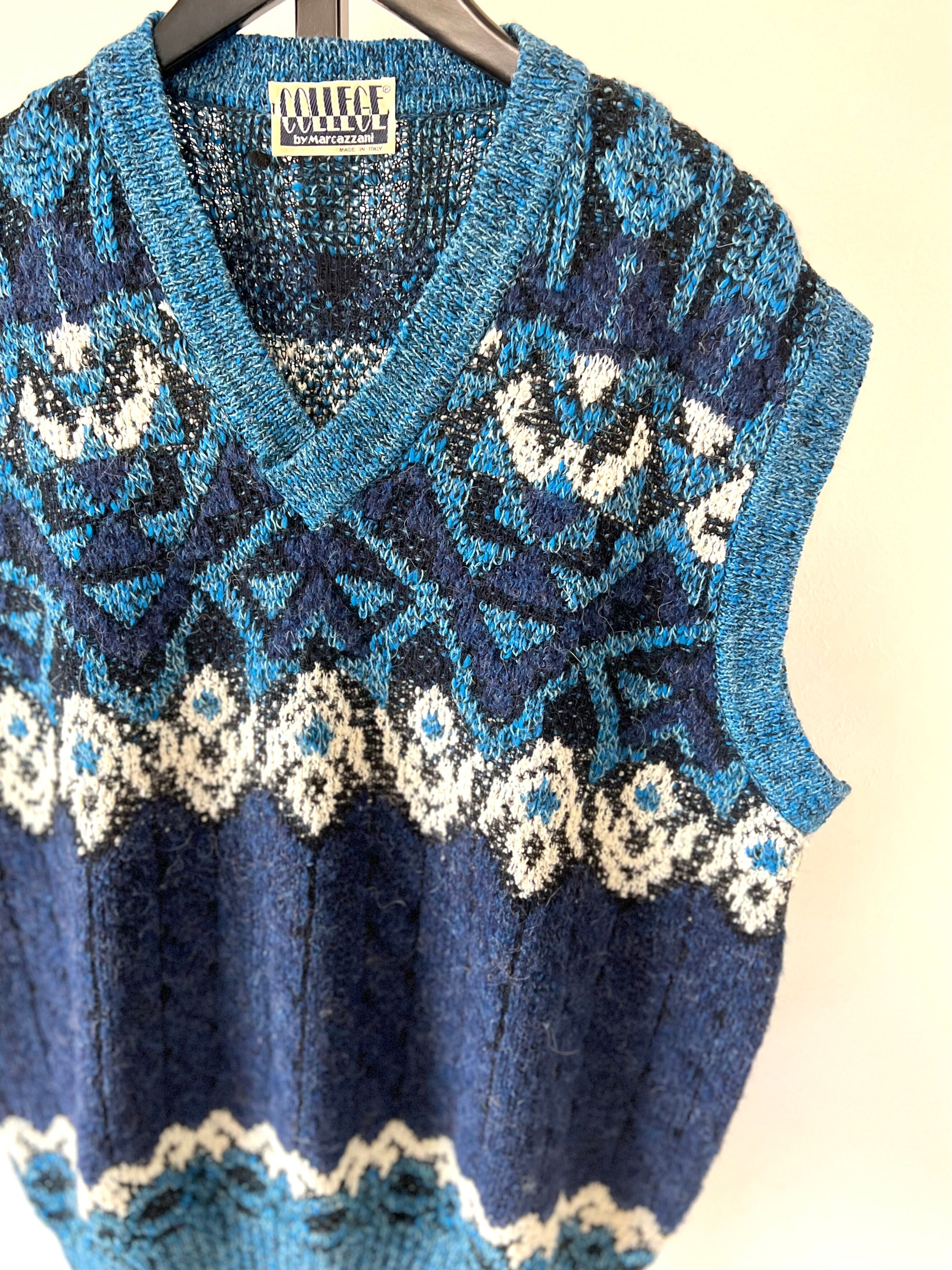 配色が可愛い80-90年代のイタリア製Vネックニットベスト。