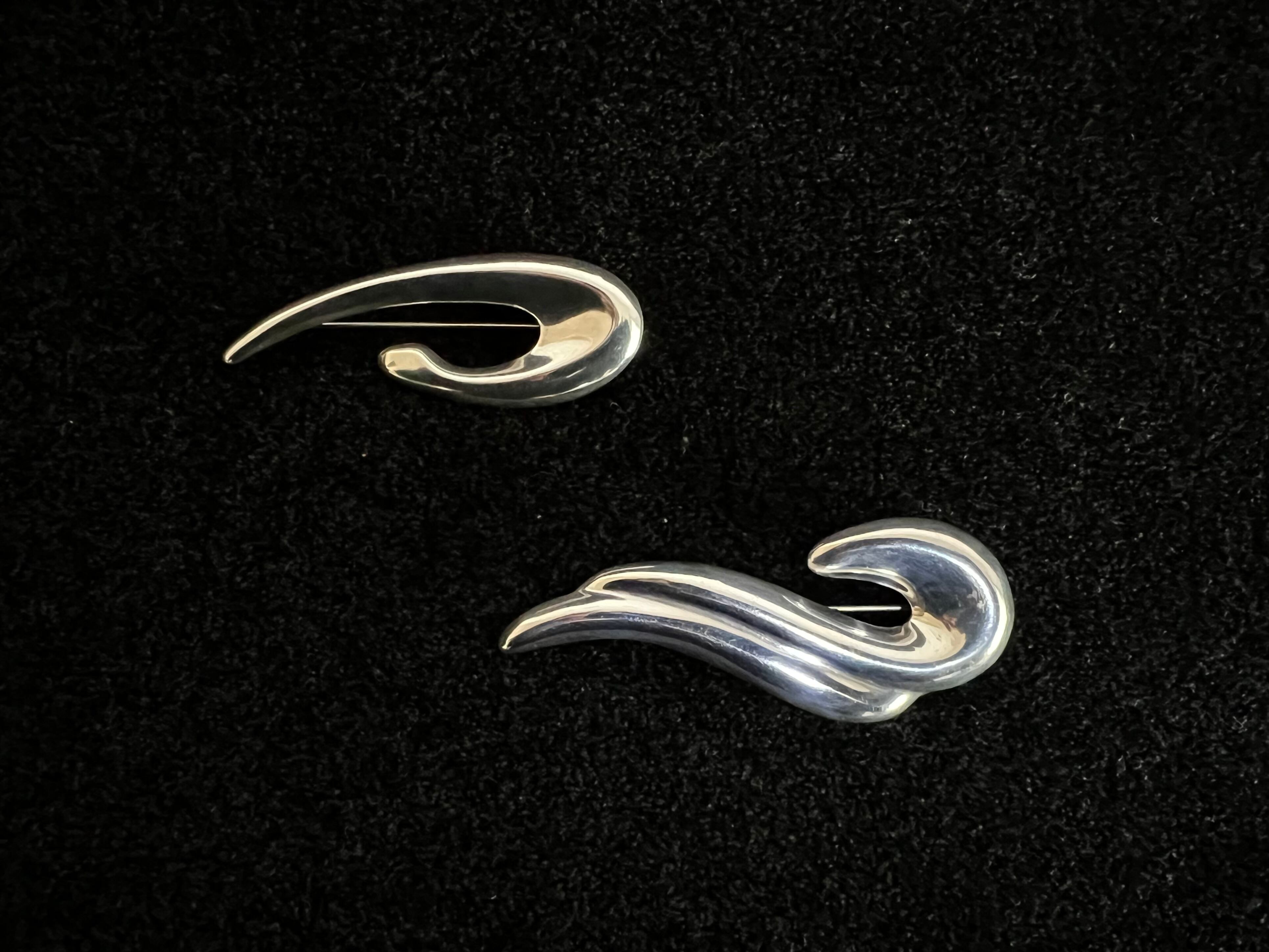 モダンなシルエットが美しいシルバーのスネークブローチ。