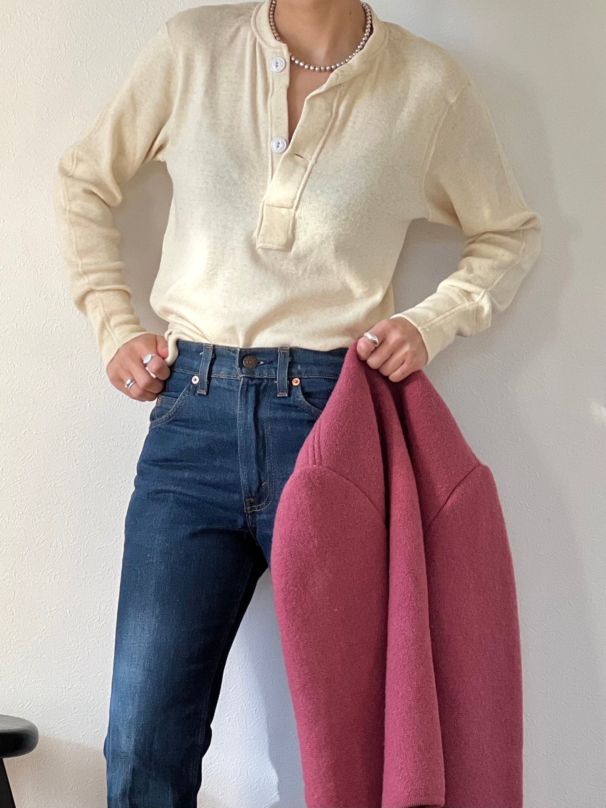 デットストックの80sヘンリーネックミリタリーサーマル。