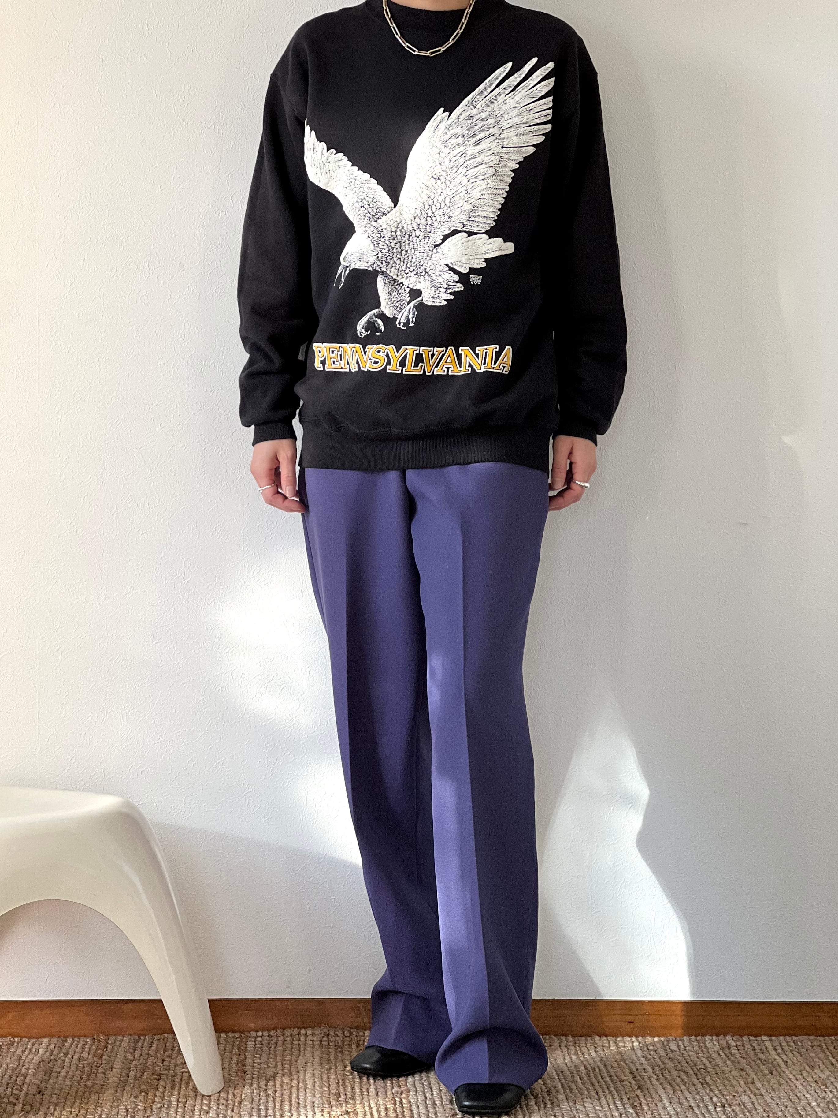 綺麗なラベンダー色がコーディネートに映えるヴィンテージJC Pennyのポリスラックス。