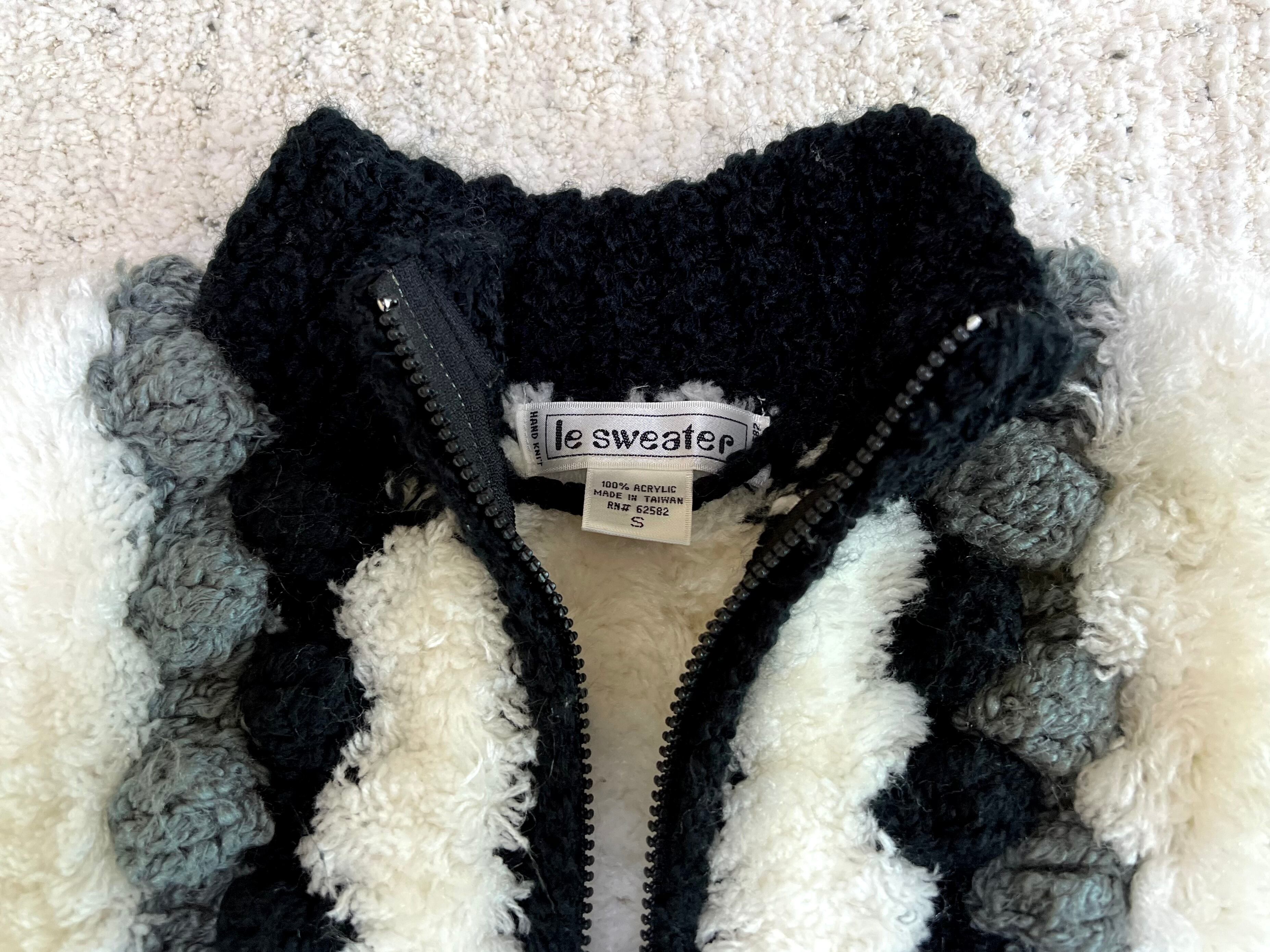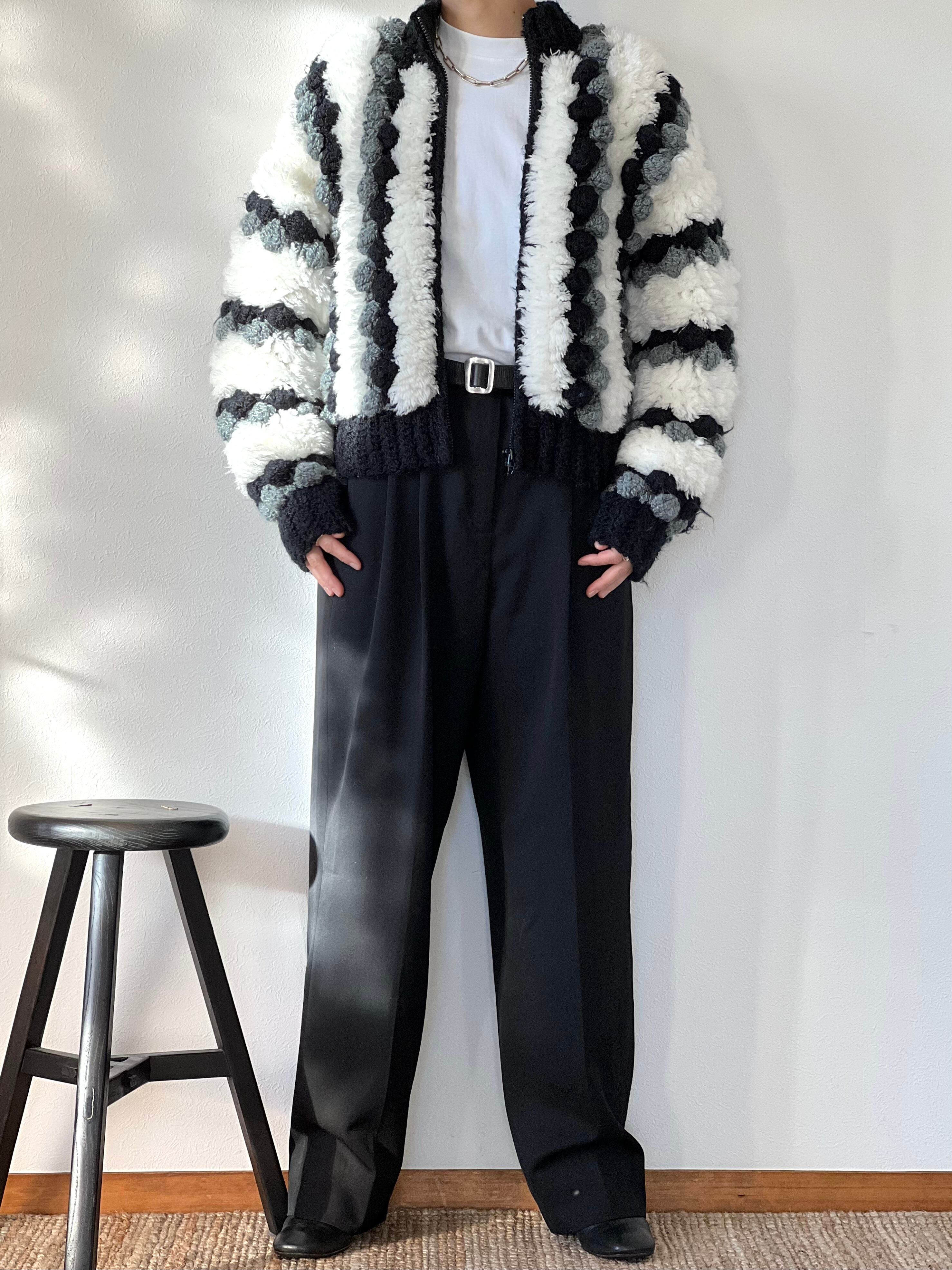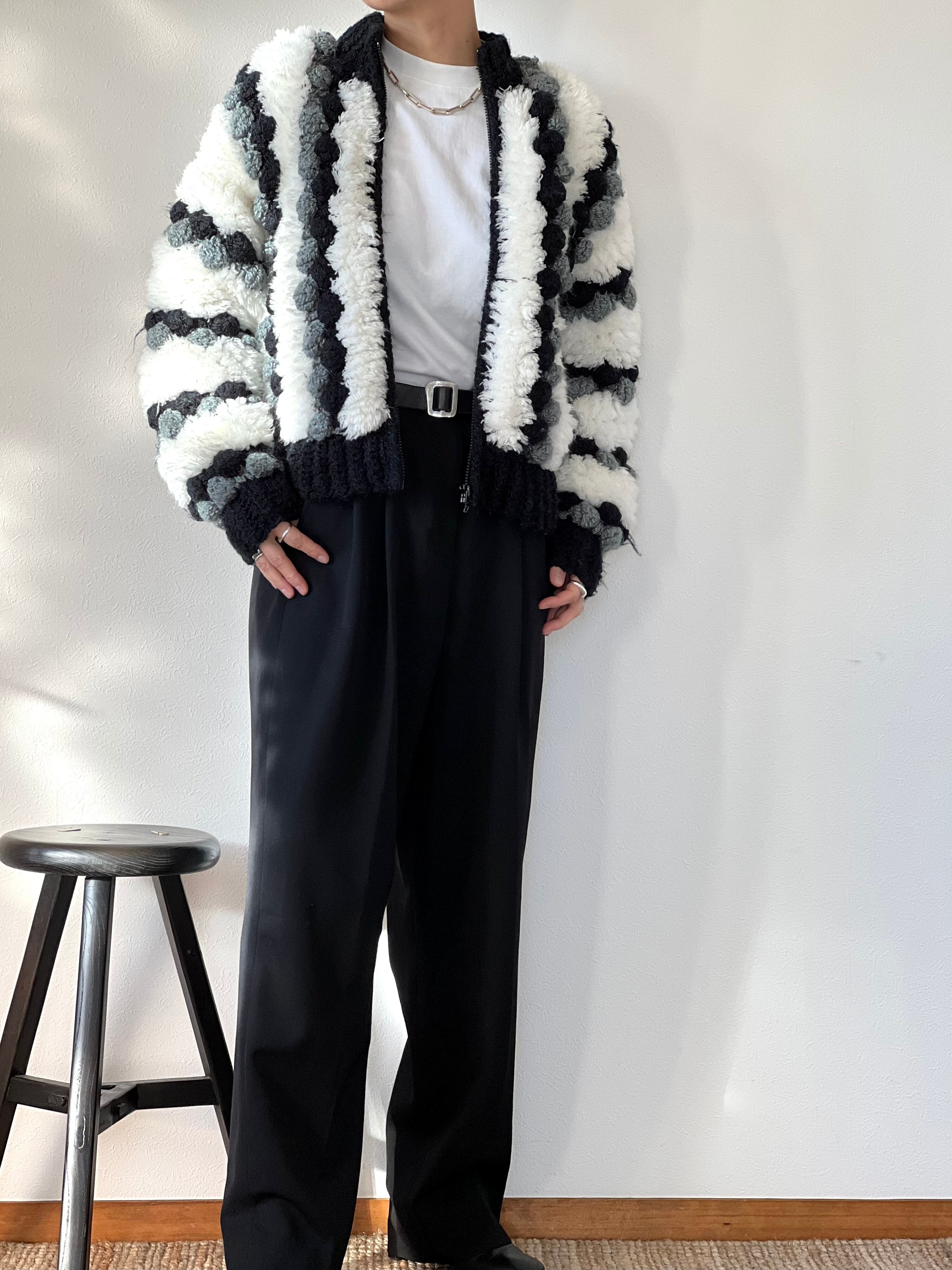 ボリュームのある毛足やボンボンが何とも可愛い70-80年代のハンドニットジャケット。