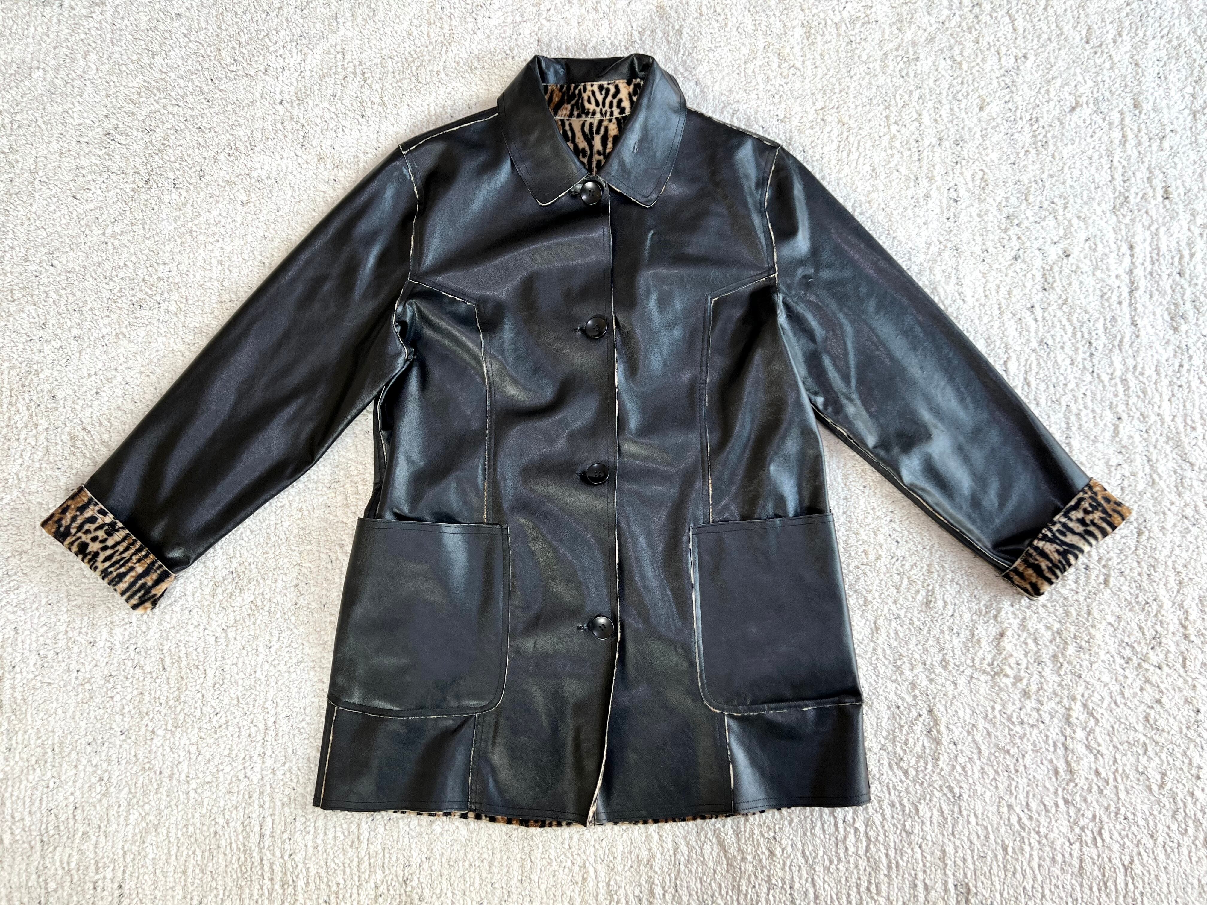 フェクレザーとレオパード柄のリバーシブルジャケット。
