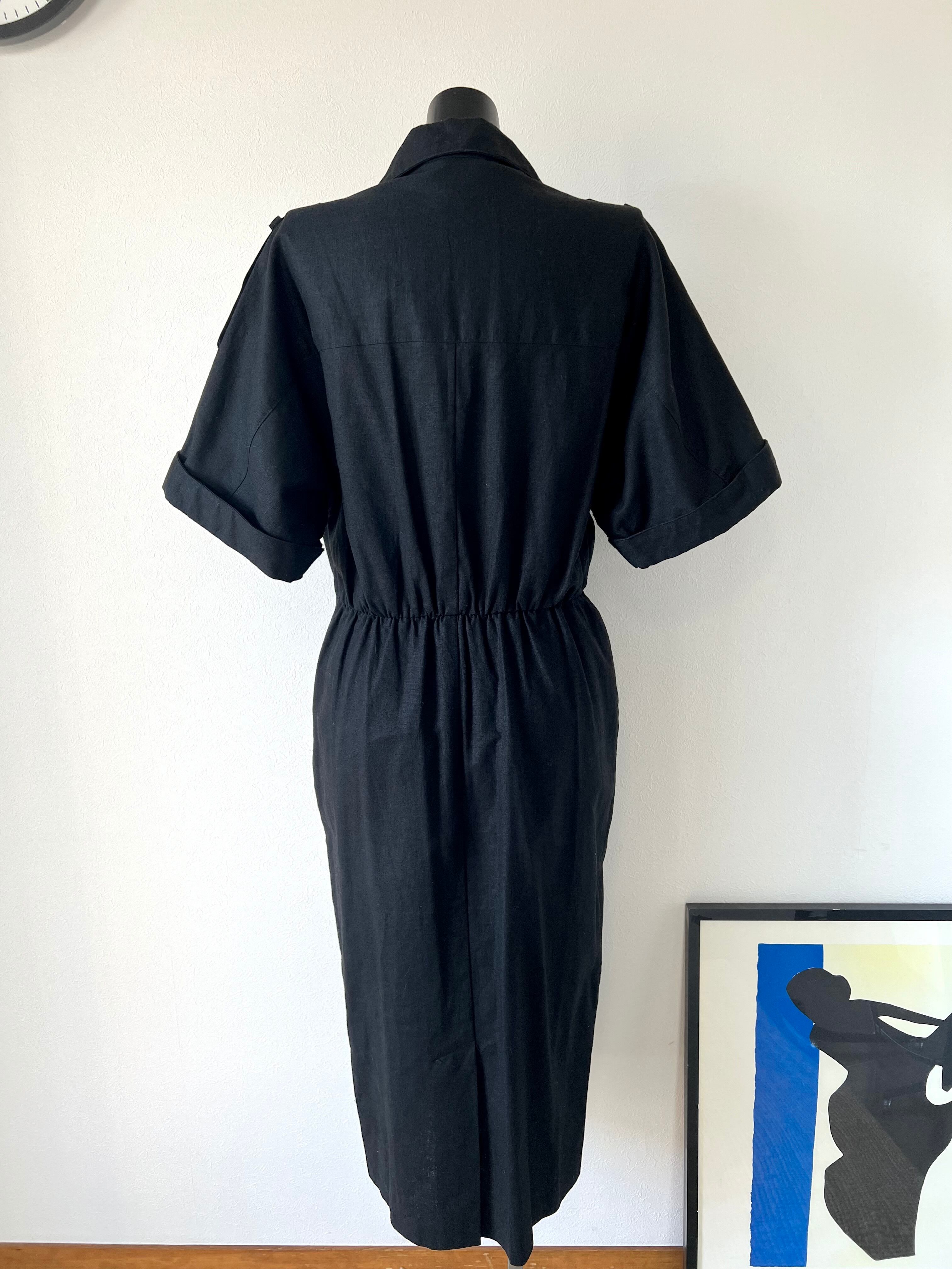 ポケットやエポーレットなどワークなスタイルがハンサムなオープンカラーのワンピース。
