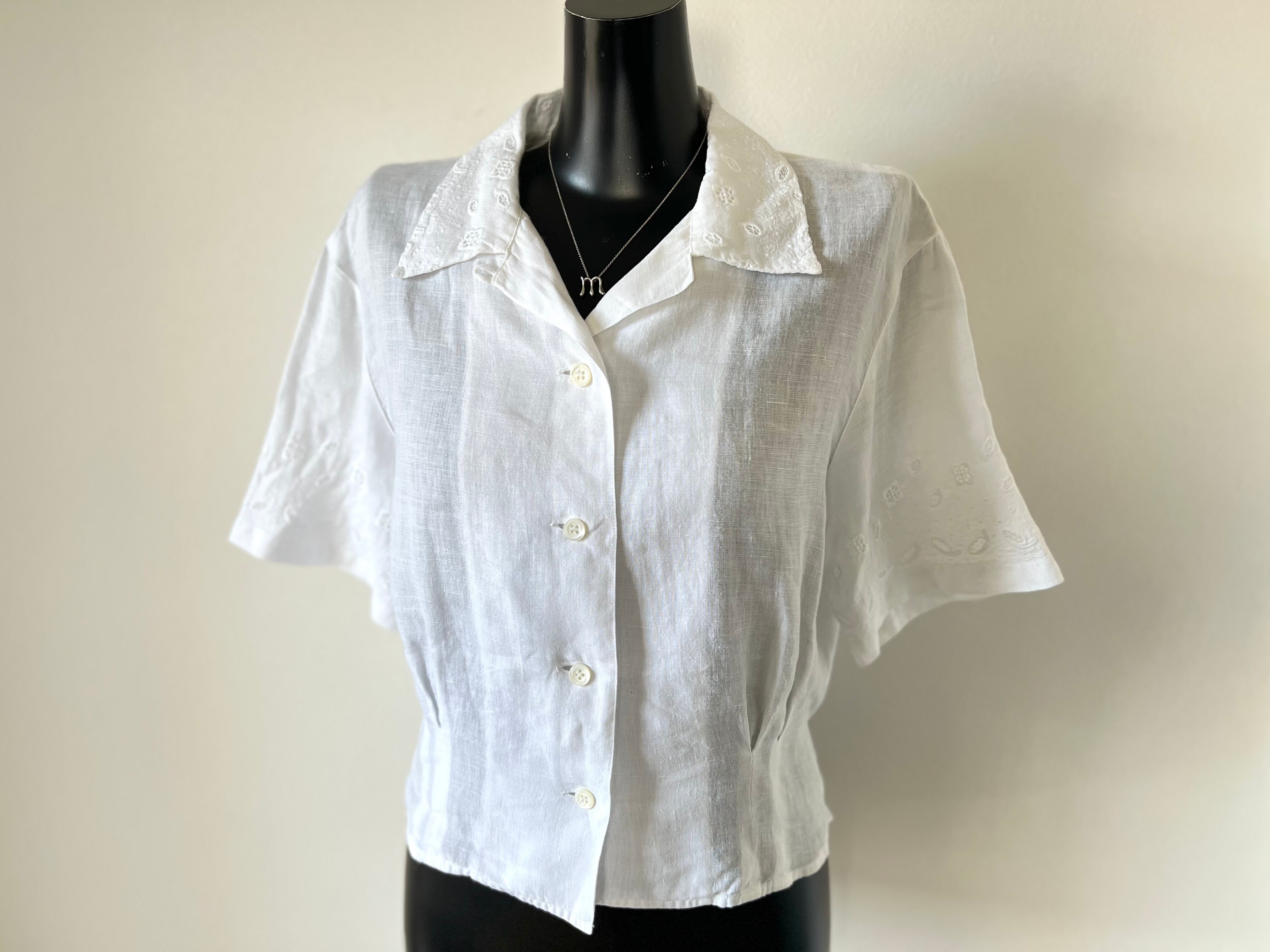 襟と袖のカットワークレースが綺麗なMax Maraのリネンシャツ。
