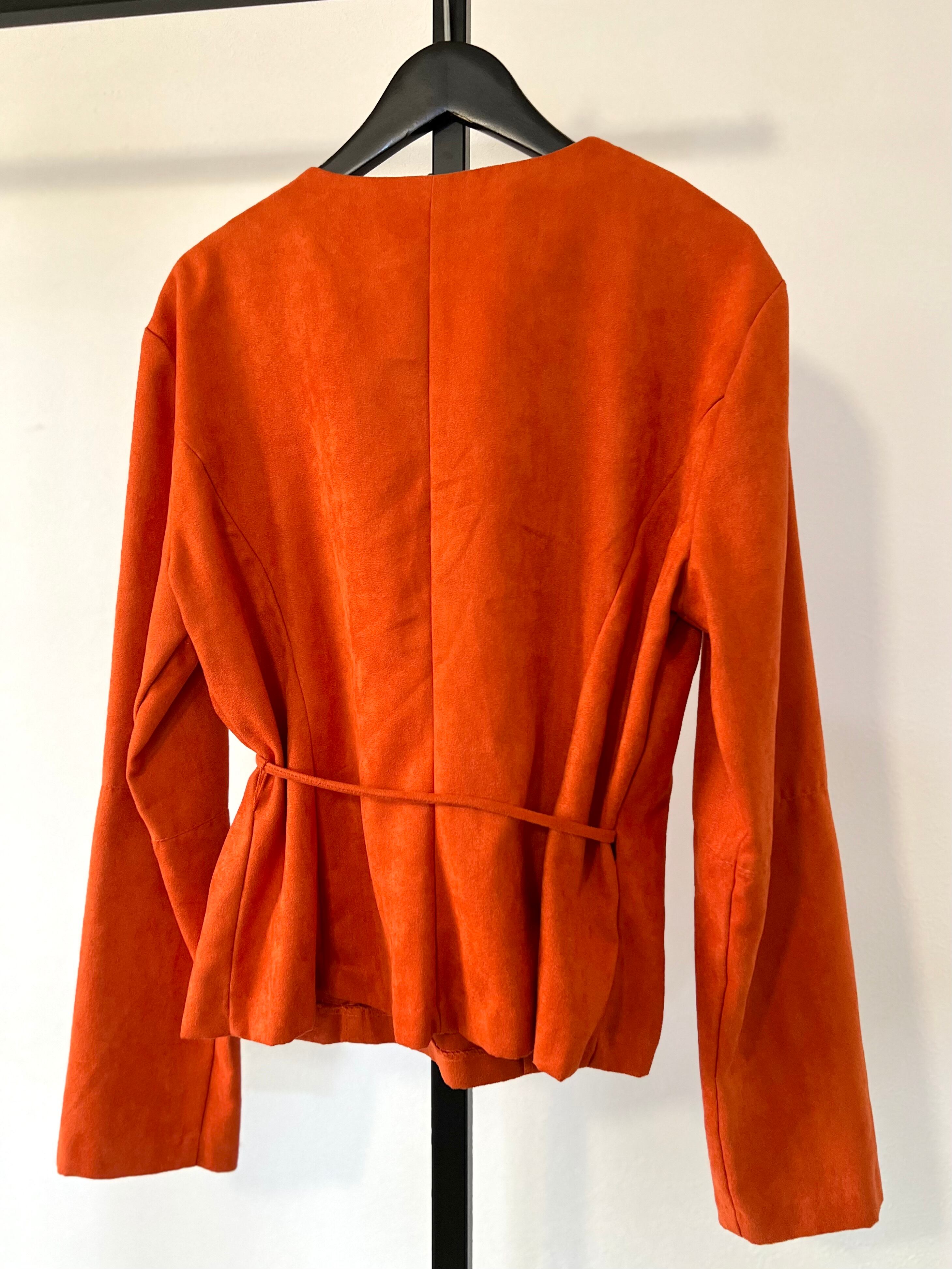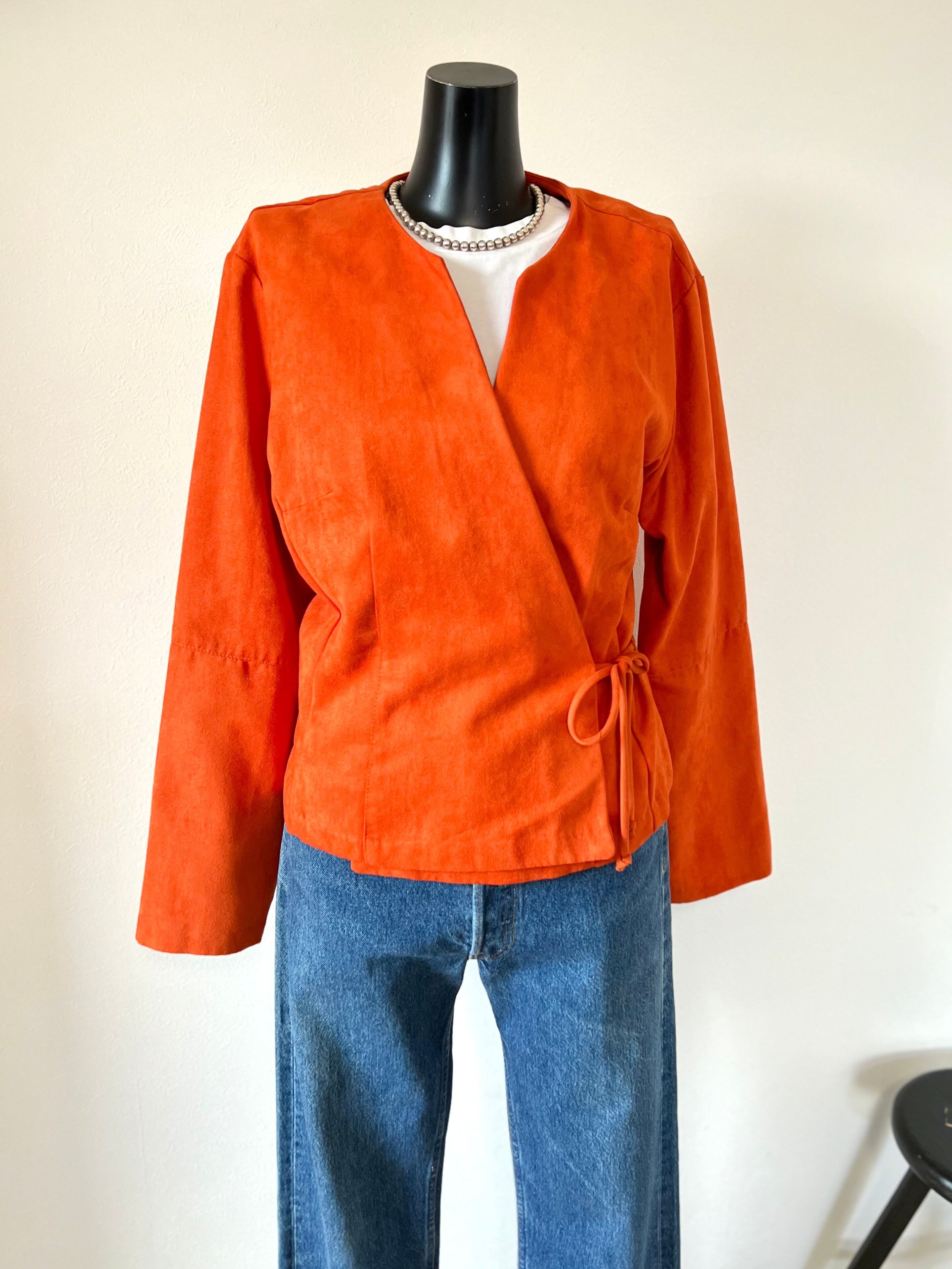 綺麗なオレンジカラーのフェイクスエードが可愛い80年代のカシュクールジャケット。