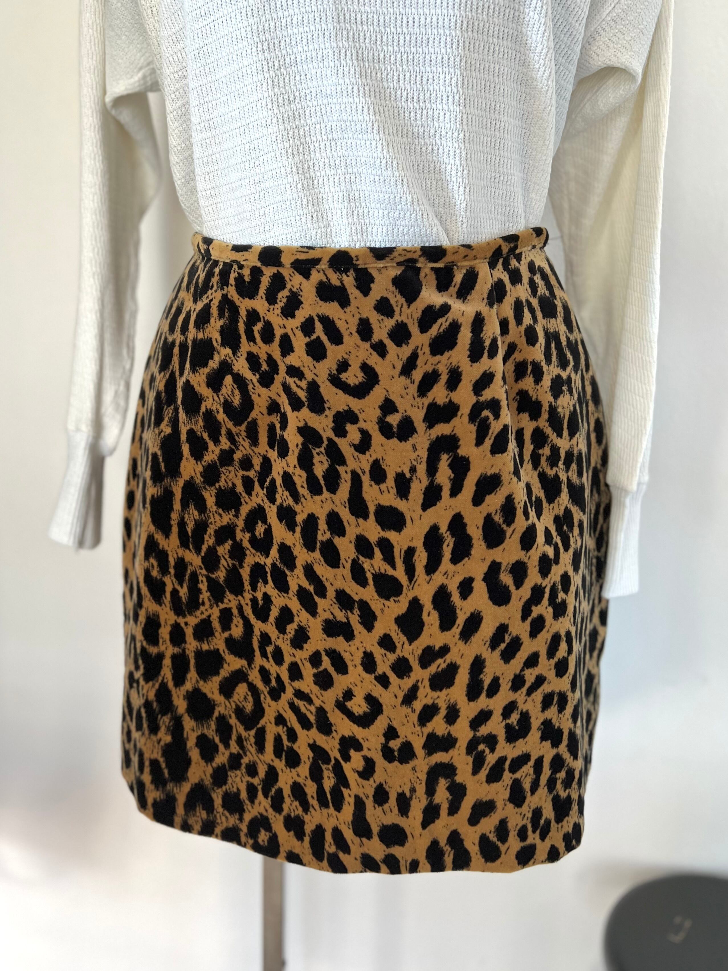 80's USA velvet leopard mini skirt