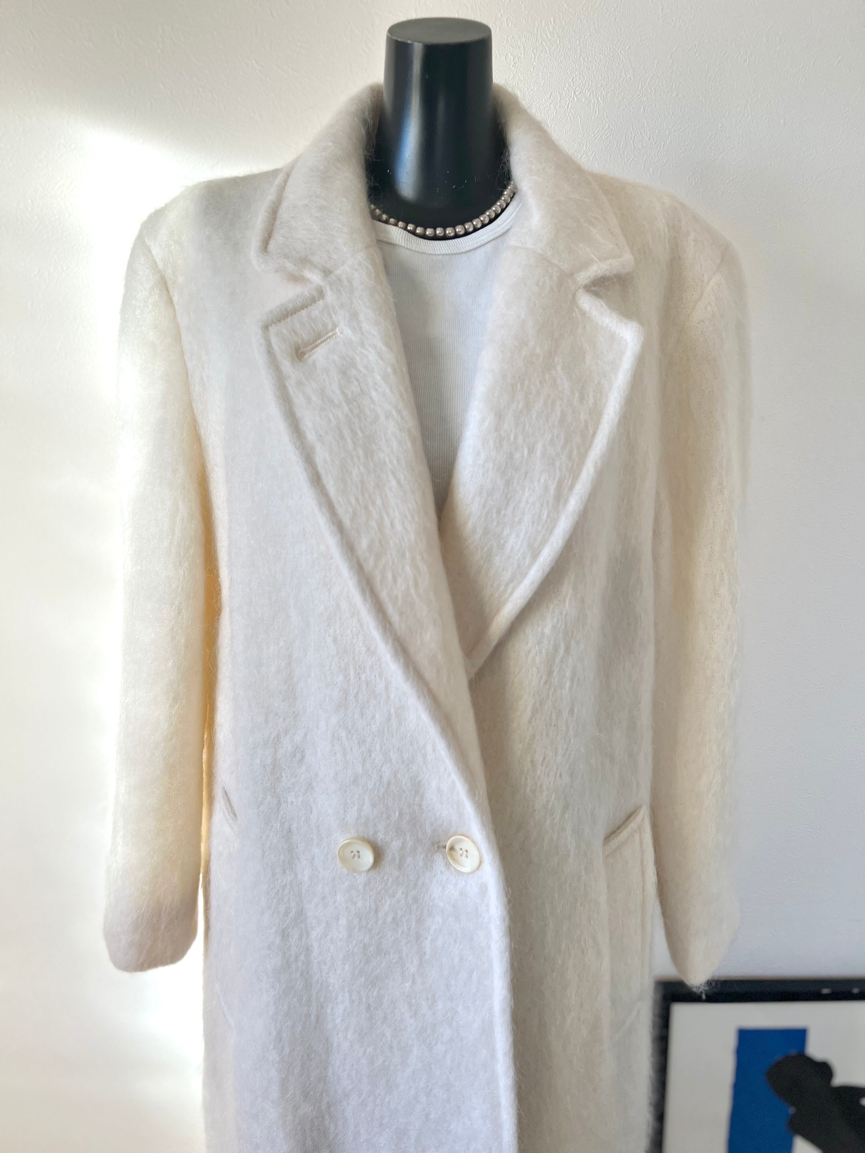 毛足のあるシャギーモヘアが可愛いUSA製ヴィンテージのチェスターロングコート。
