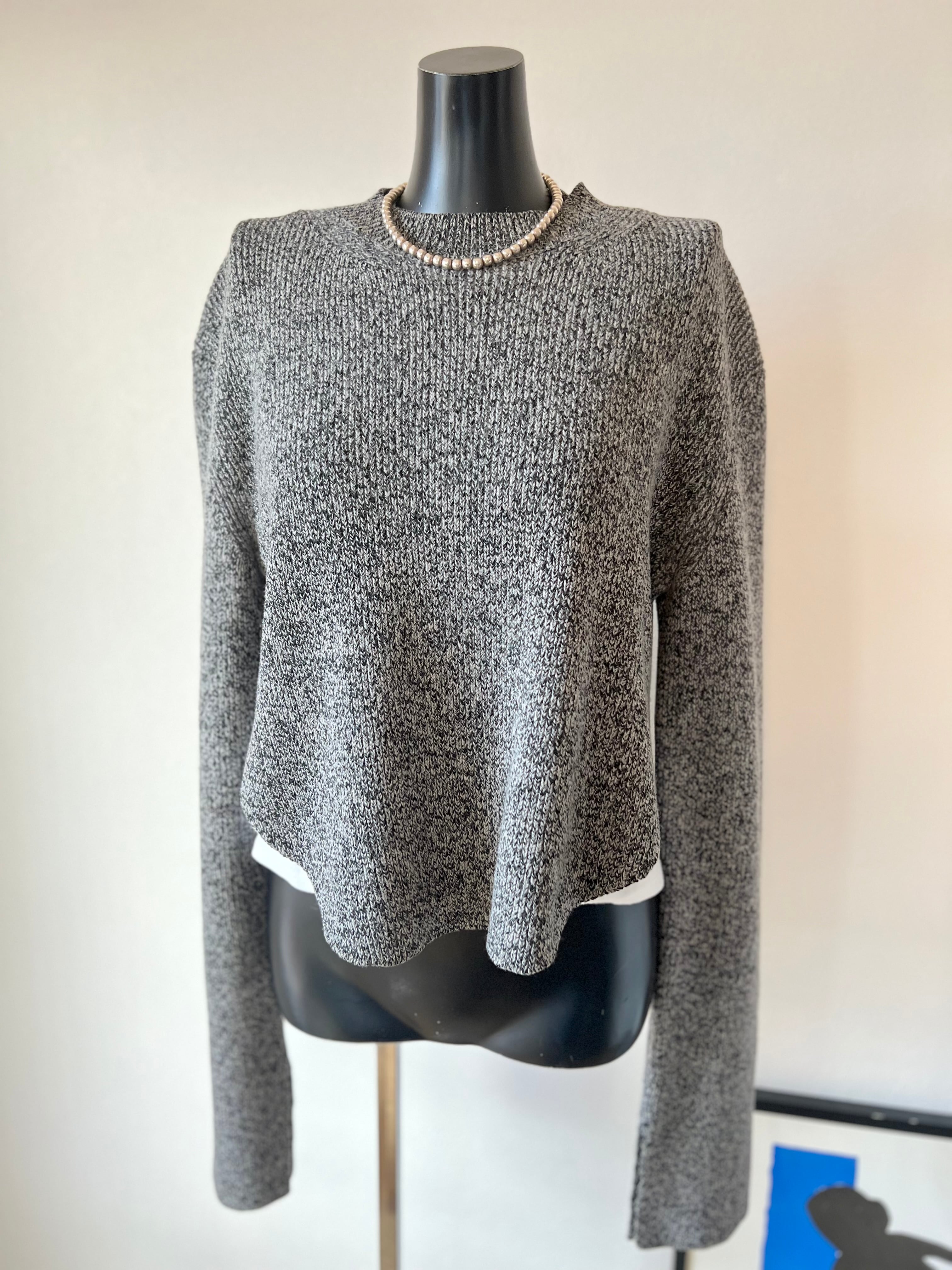 サイドと袖口のスリットや長めの袖にラウンドした前後長さの違うシルエットなど、シンプルさの中に美しいデザインが込められているフィービーデザインのクルーネックニット。