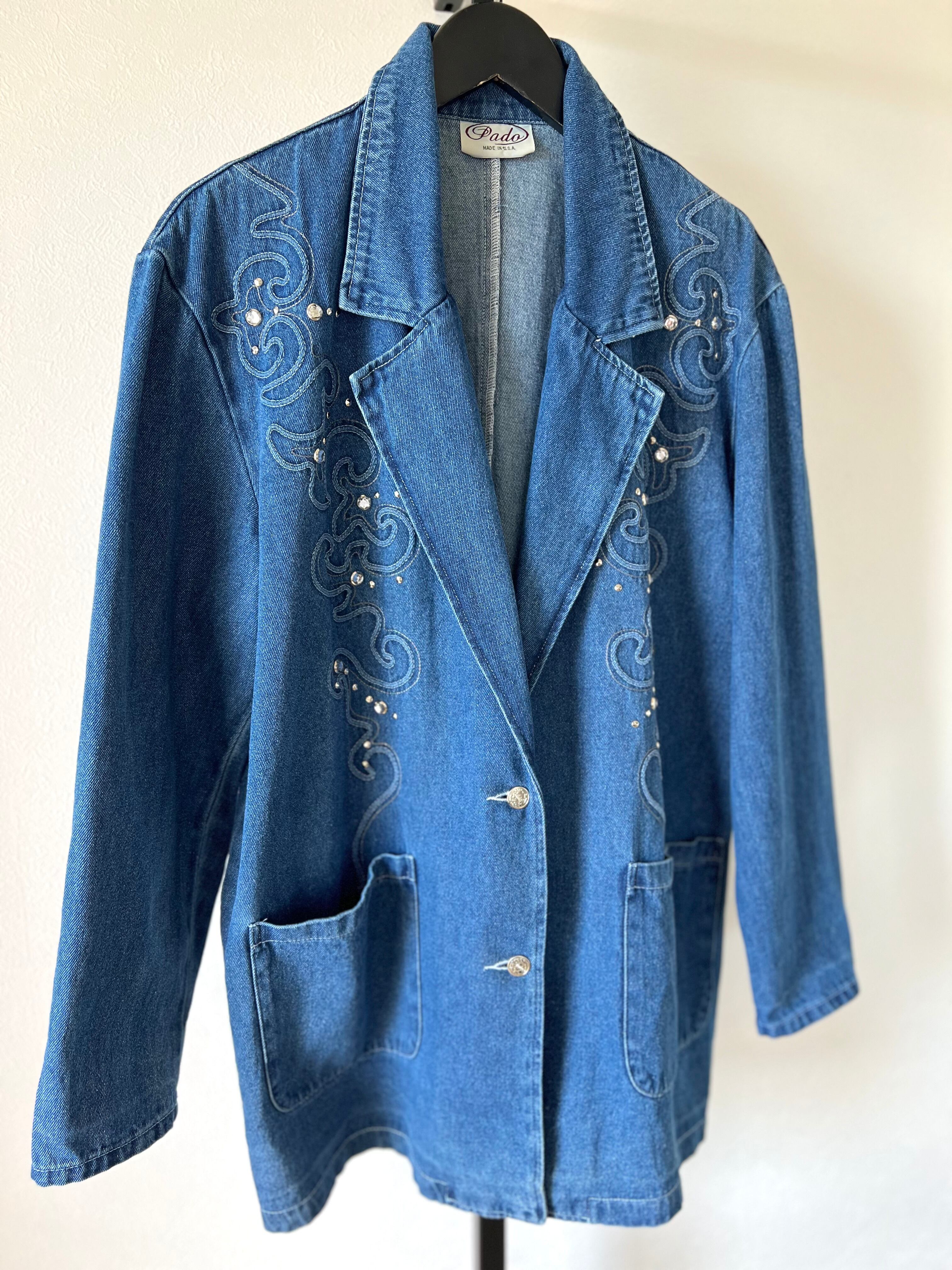 刺繍とラインストーンのスパンコールがあしらわれた80-90年代のUSA製デニムジャケット。