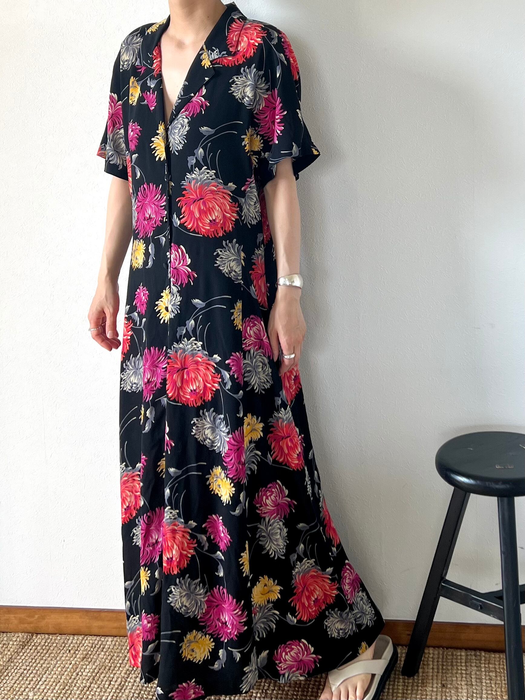 90's rayon floral front open dress