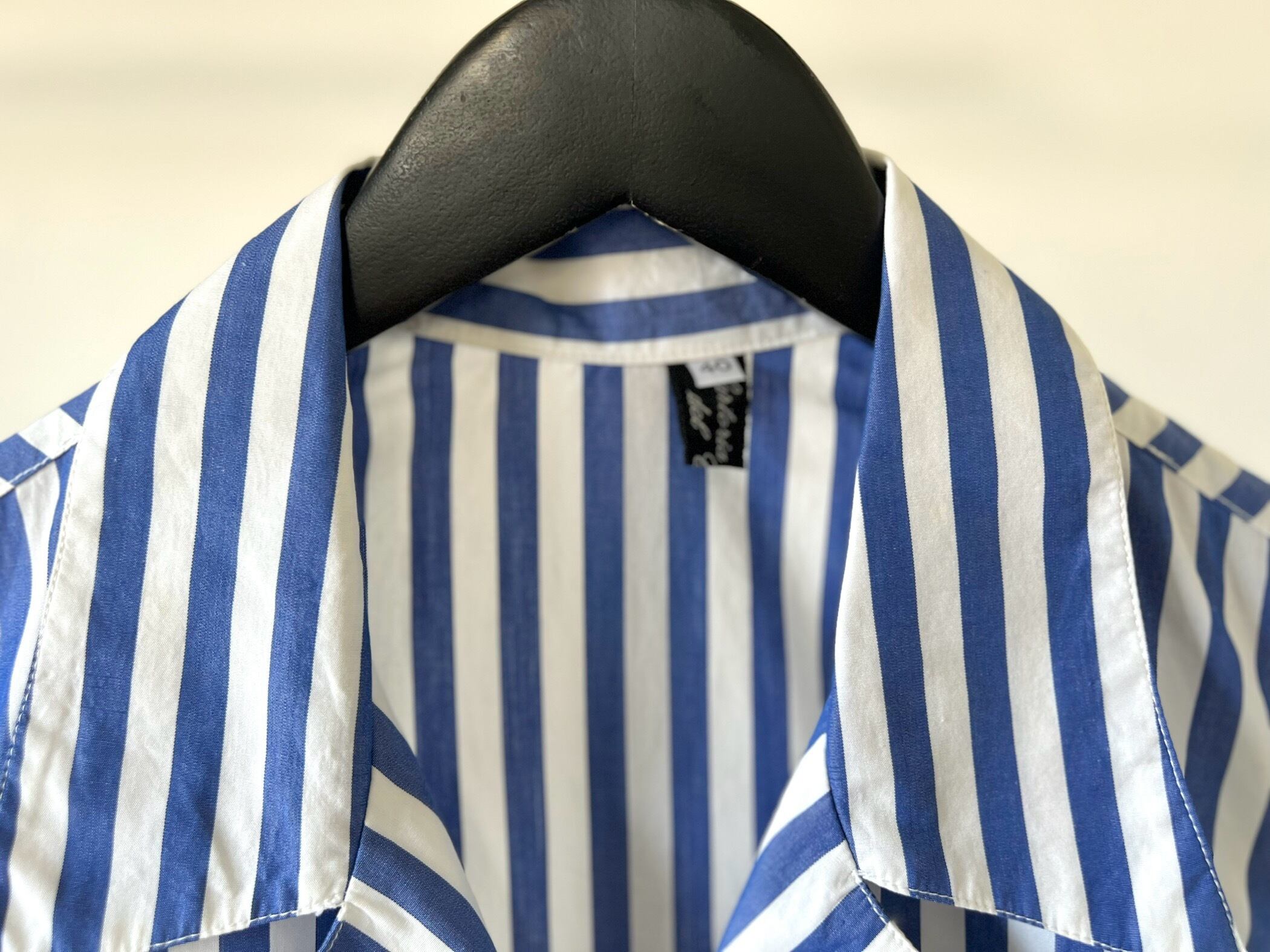 コントレストの綺麗な太めピッチのストライプ柄が可愛いユーロヴィンテージのスリーブレスシャツ。