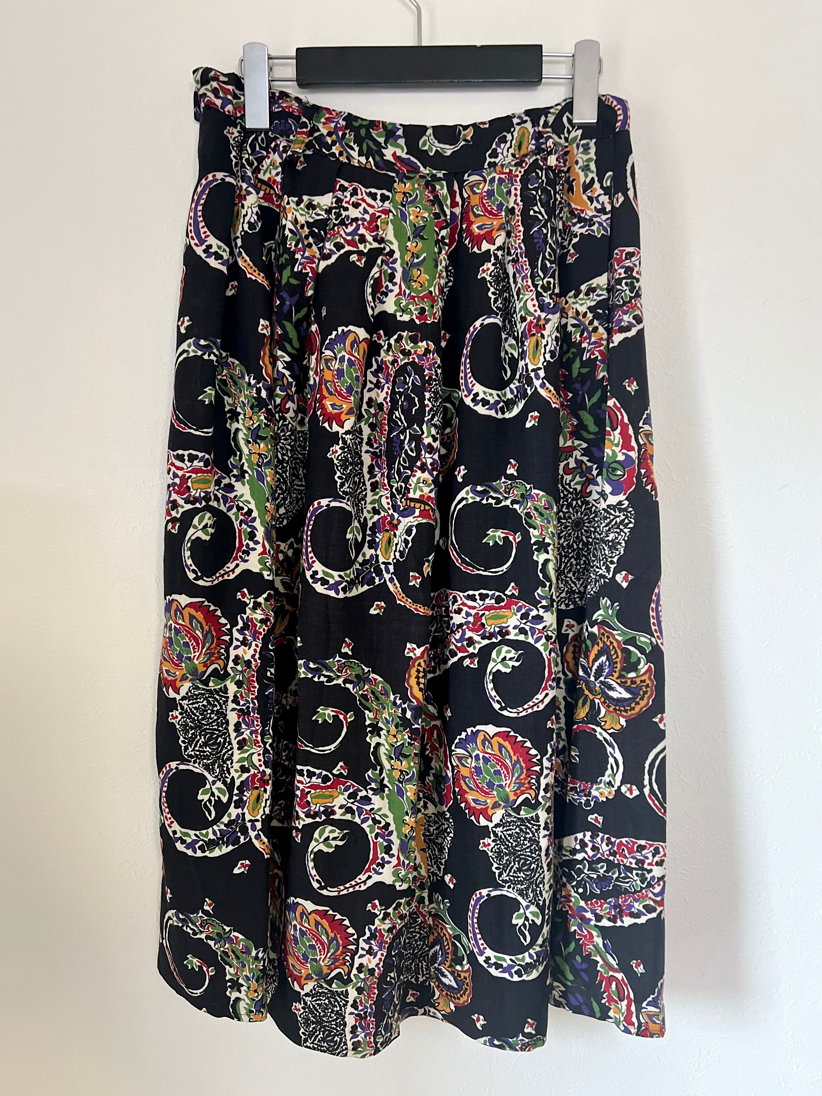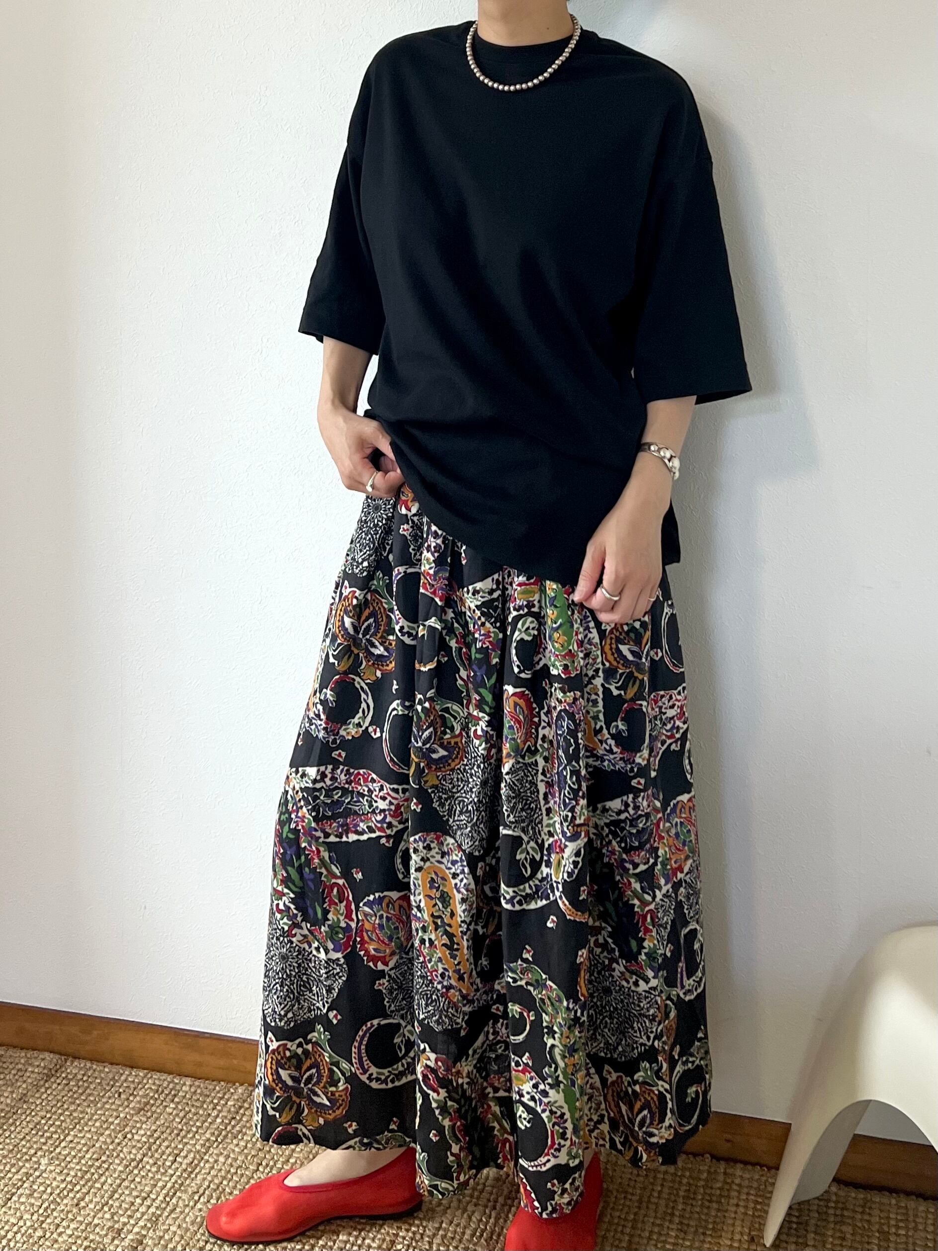 鮮やかで目を引く配色が綺麗な大判なペイズリー柄のロングスカート。