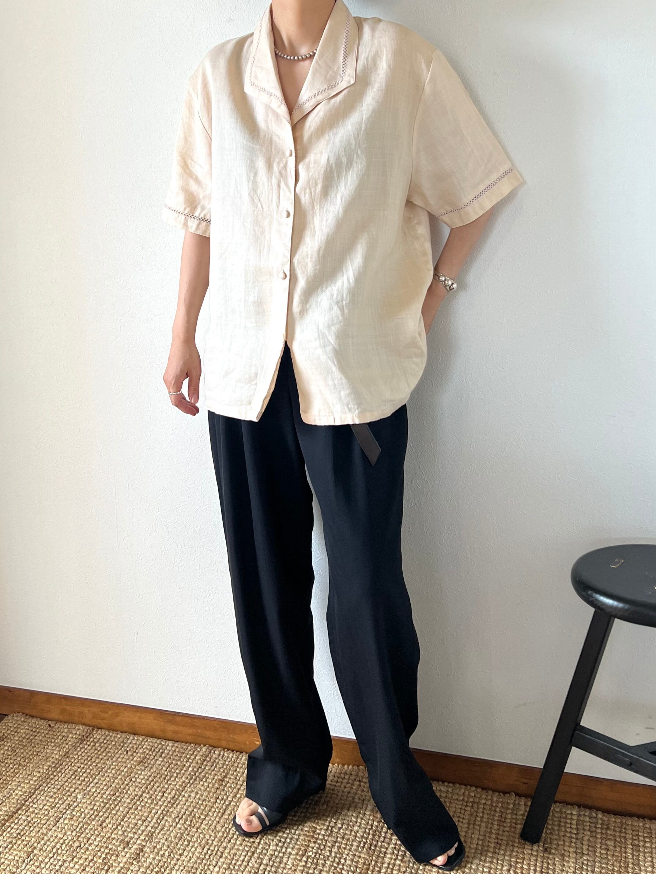 90's linen embroidery lace shirt