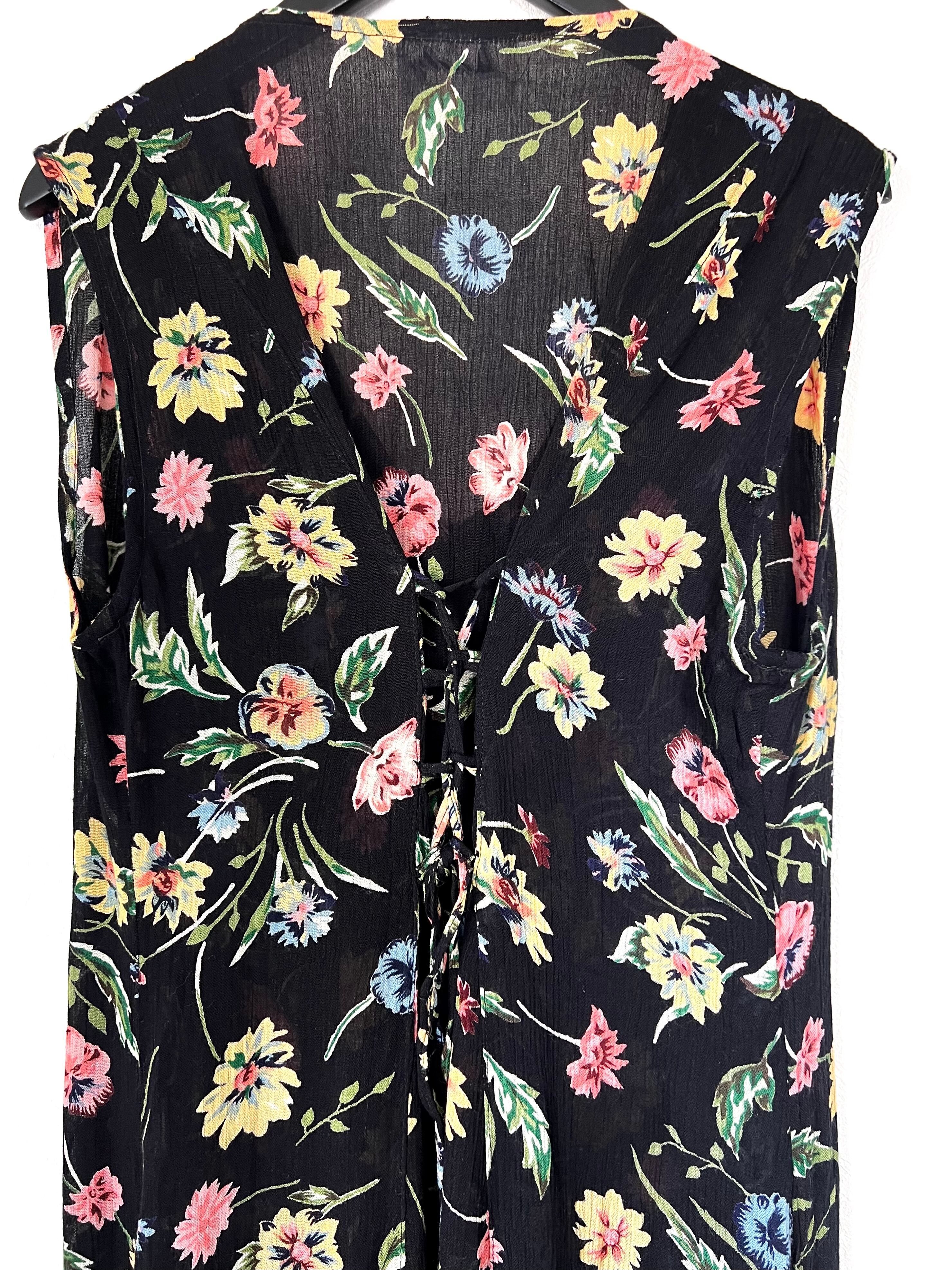 コントラストの綺麗な配色が目を惹く80年代のUSA製ロングドレス。
