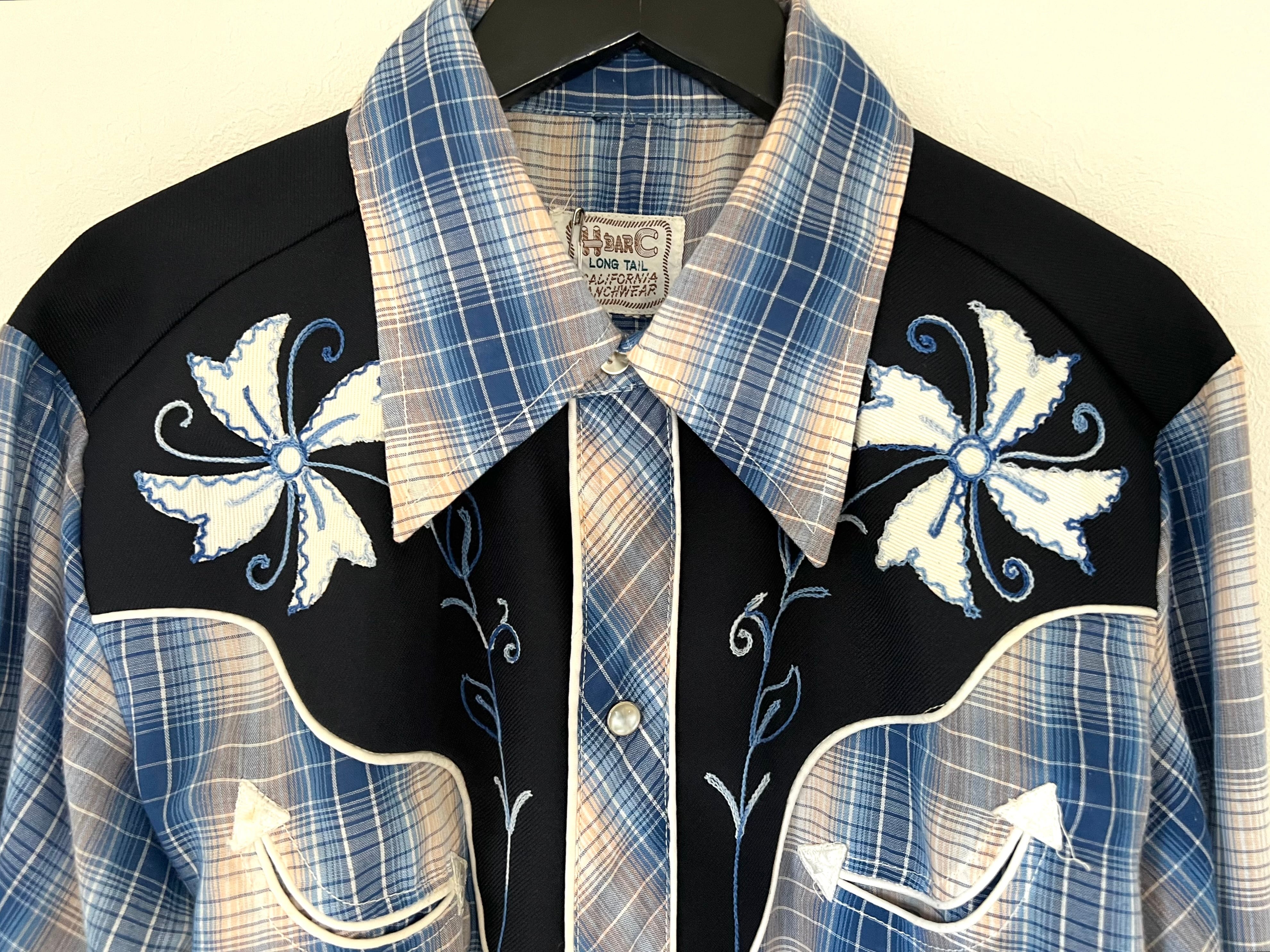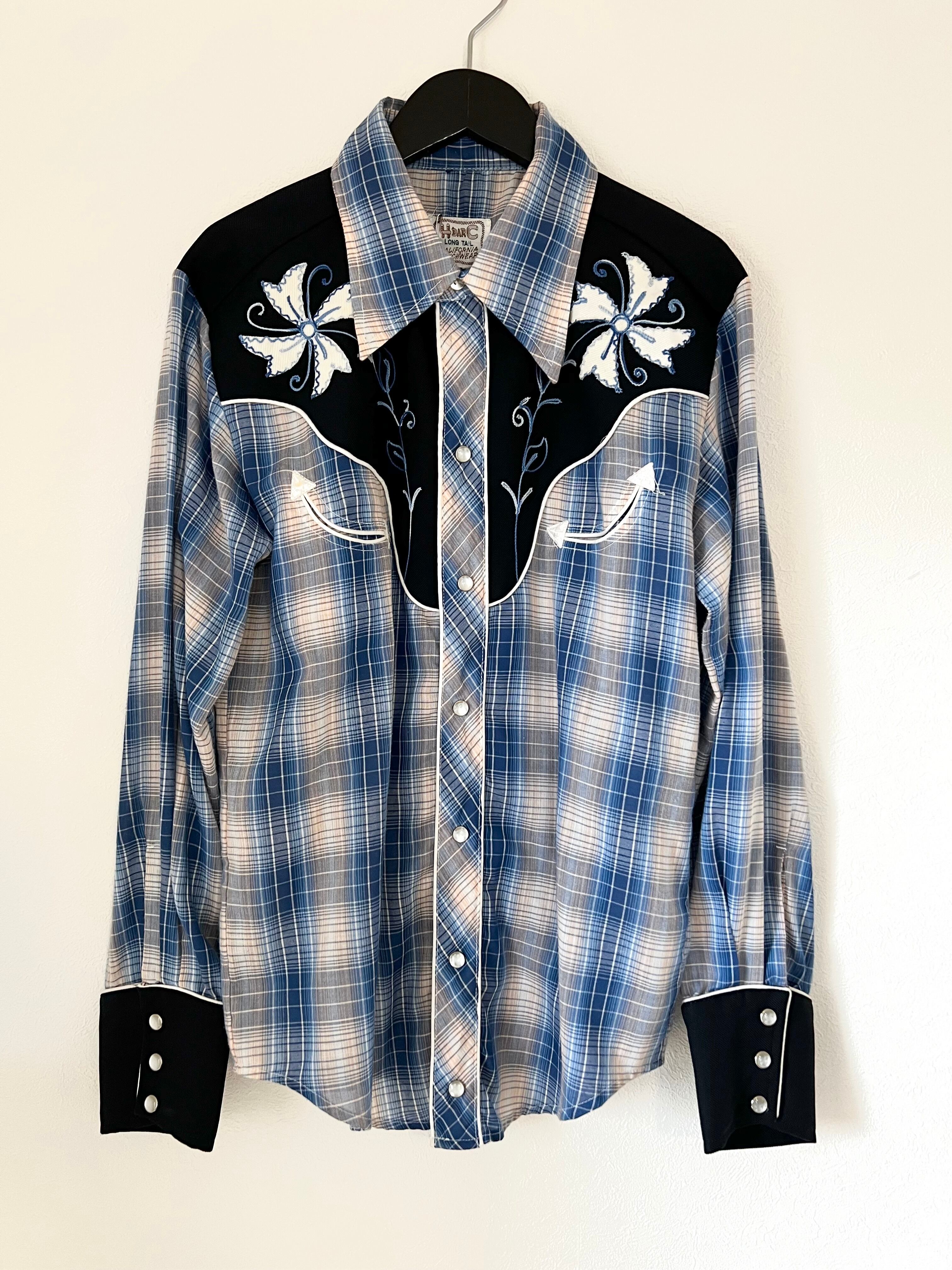 レイヤードしても映えるような綺麗んブルーのチェックが可愛いH BAR Cウエスタンシャツ。