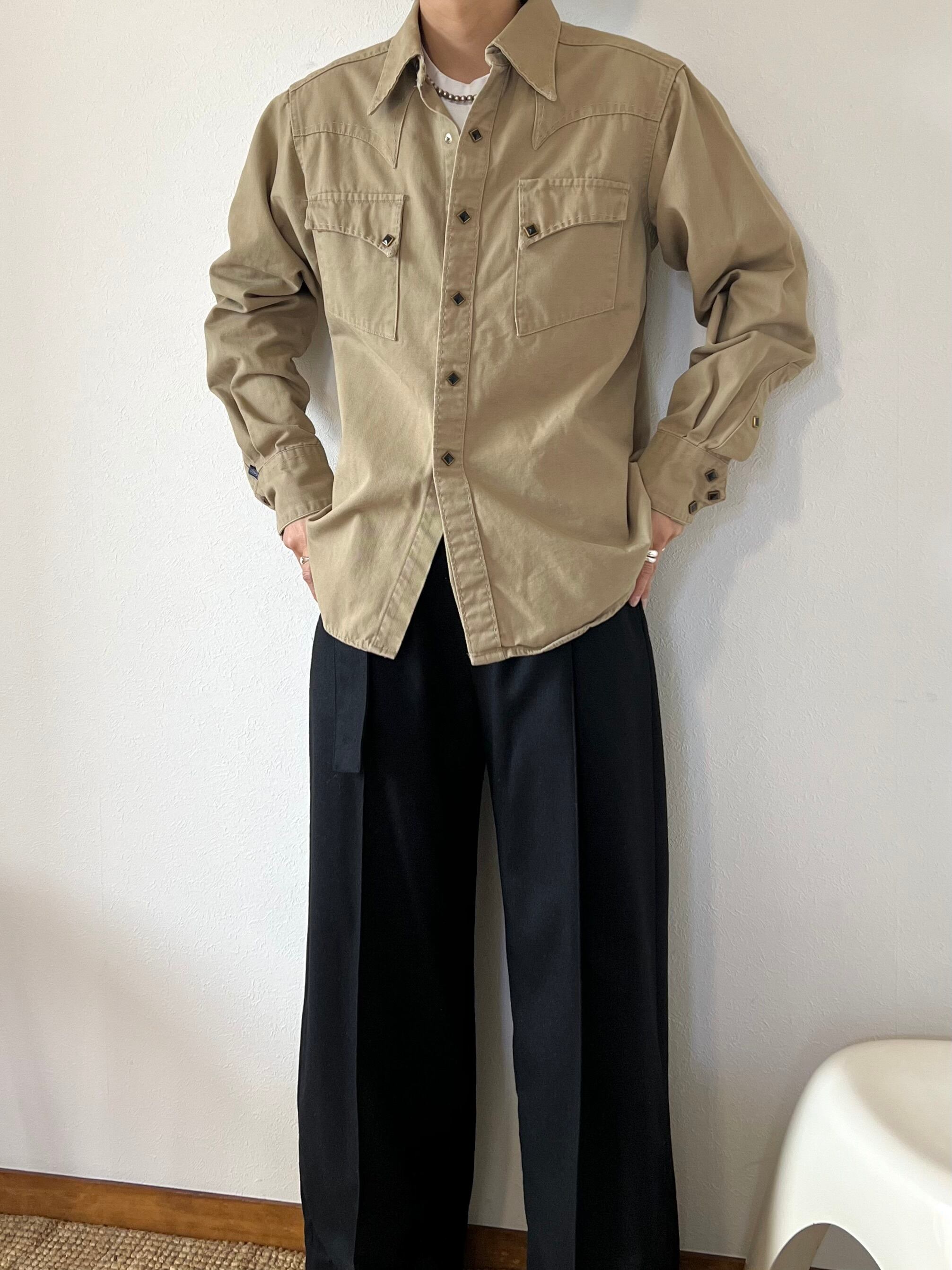 タフなベージュのデニム素材が可愛い80年のUSA製Rock Mountウエスタンシャツ。
