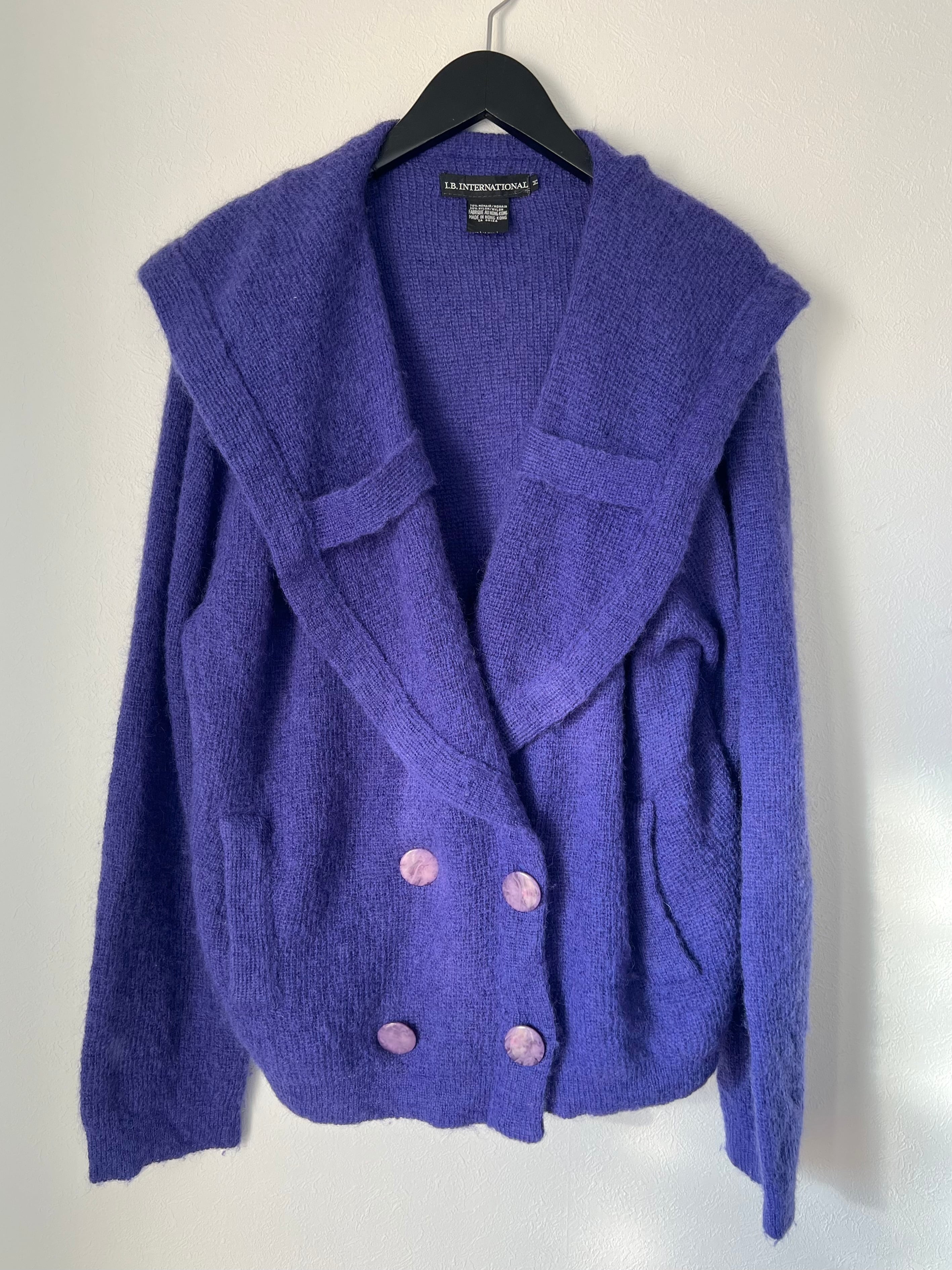 存在感のあるビックカラーがポイントのモヘアニットカーディガン。