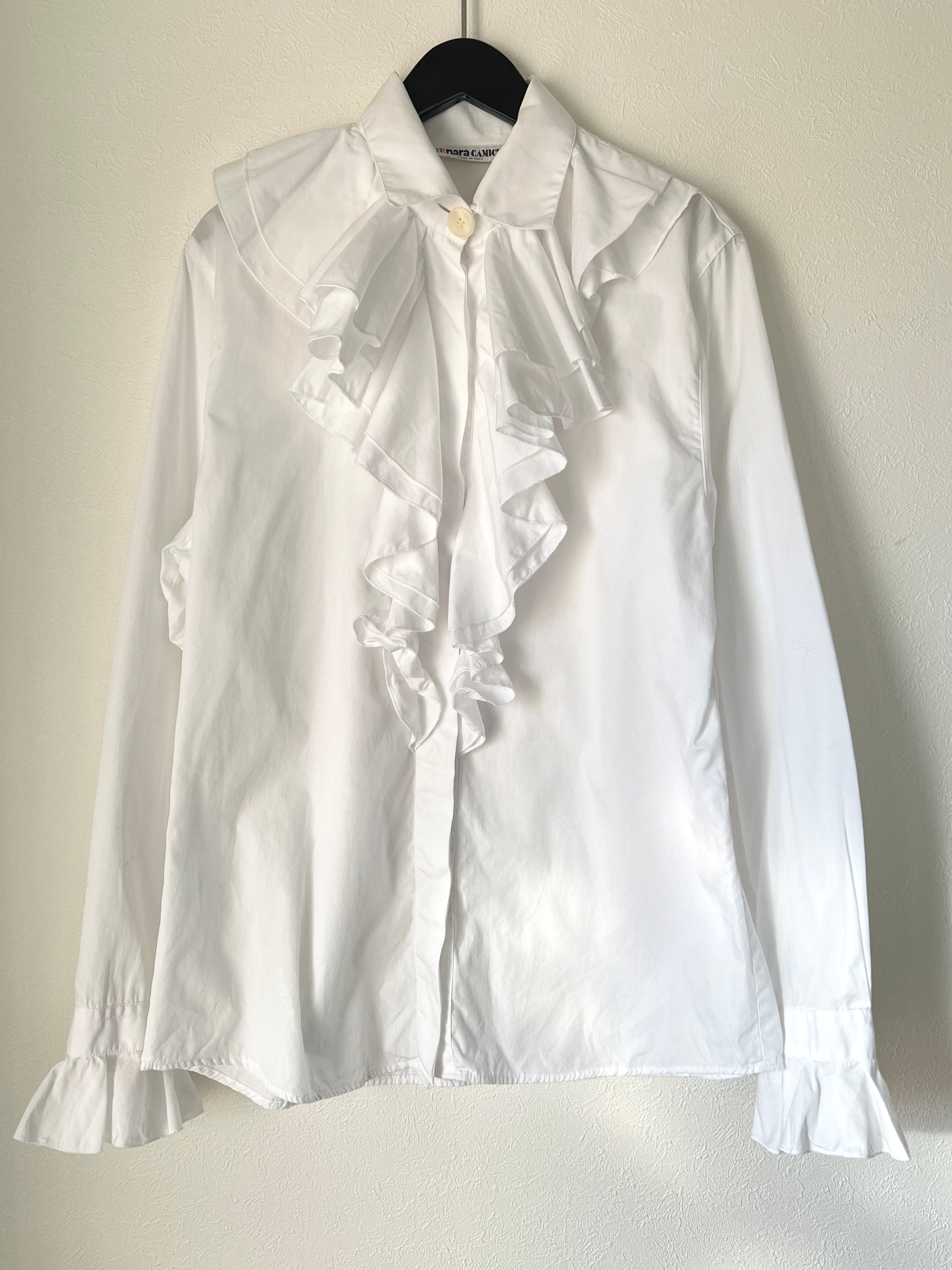 ボリュームのあるラッフルが可愛いイタリア製のコットンブラウス。