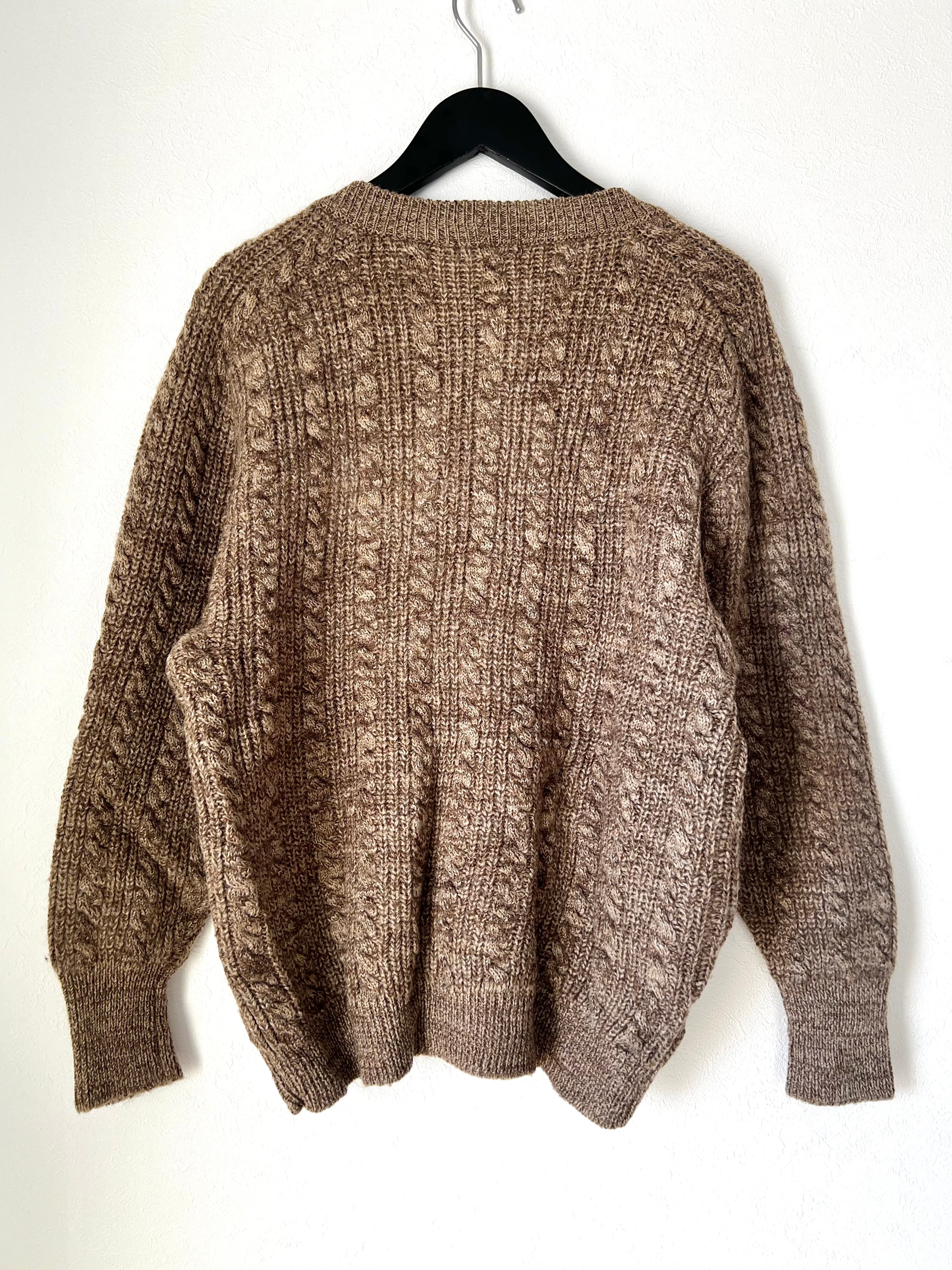 優しいブラウンの色合いが素敵な80年代のウールケーブルニットカーディガン。